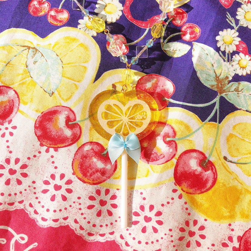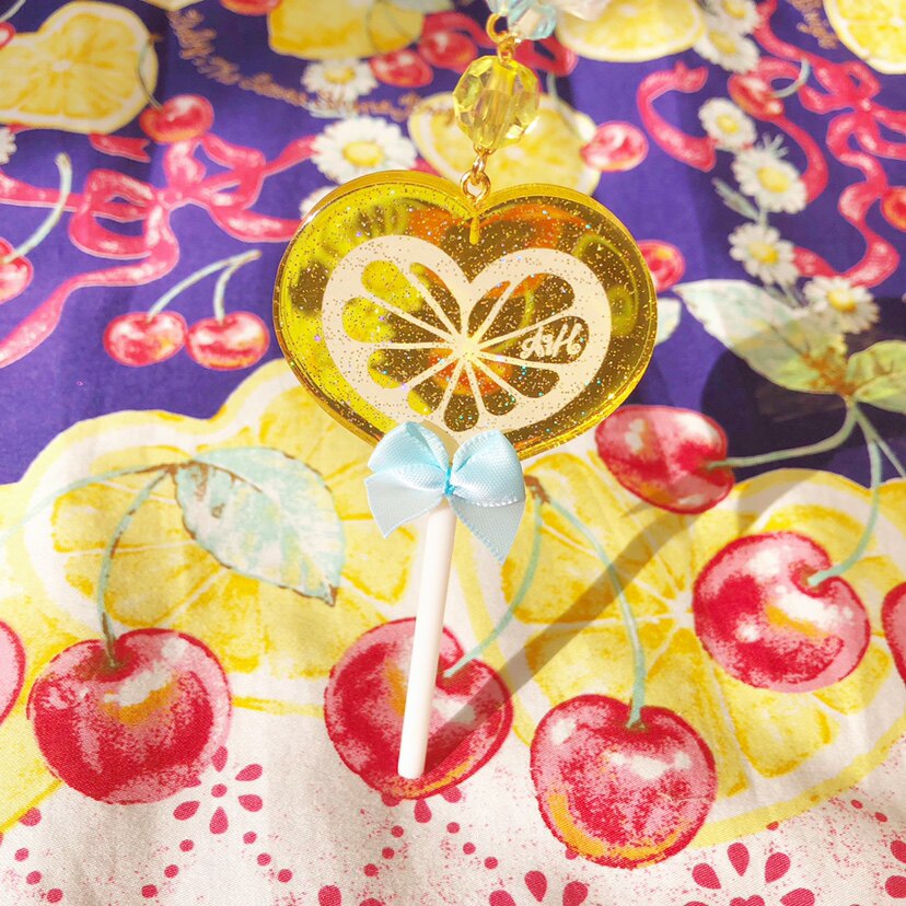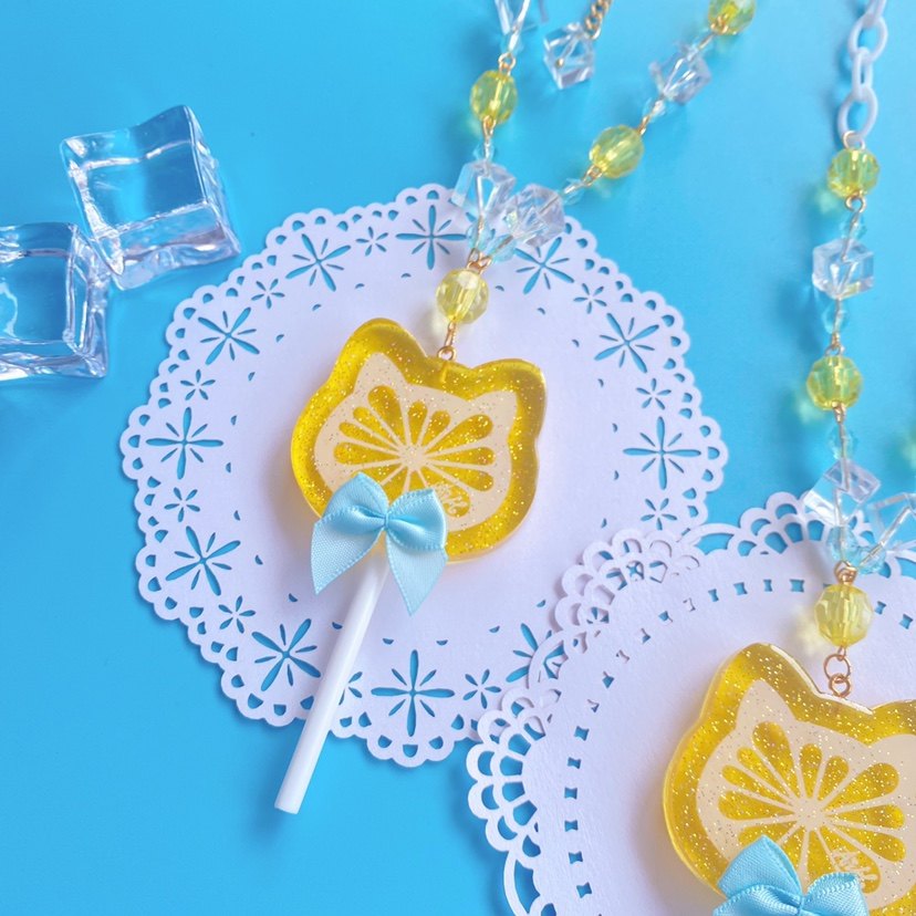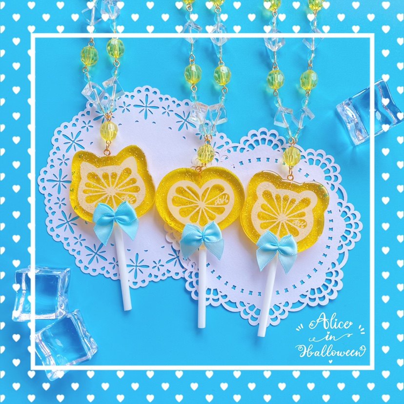 原创设计【柠檬棒棒糖】lolita塑料片项炼爱心猫头熊头棒棒糖饰品 [Original Page Link]