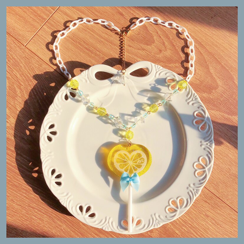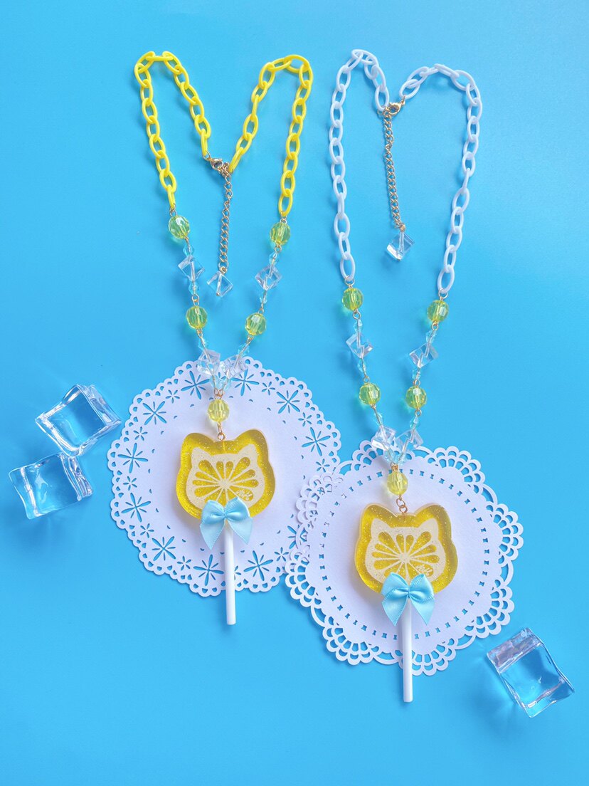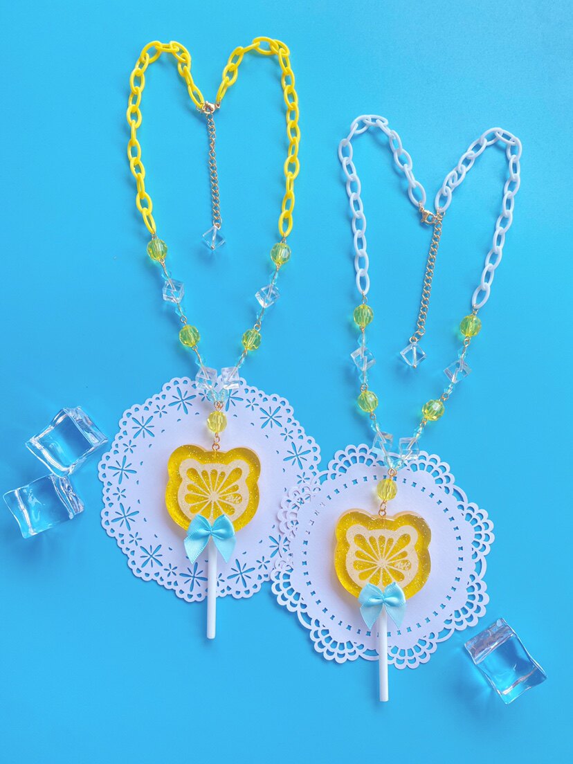 Original design [lemon lollipop] lolita plastic necklace with heart cat head and bear head lollipop ornaments
