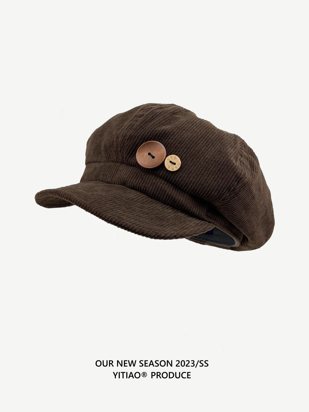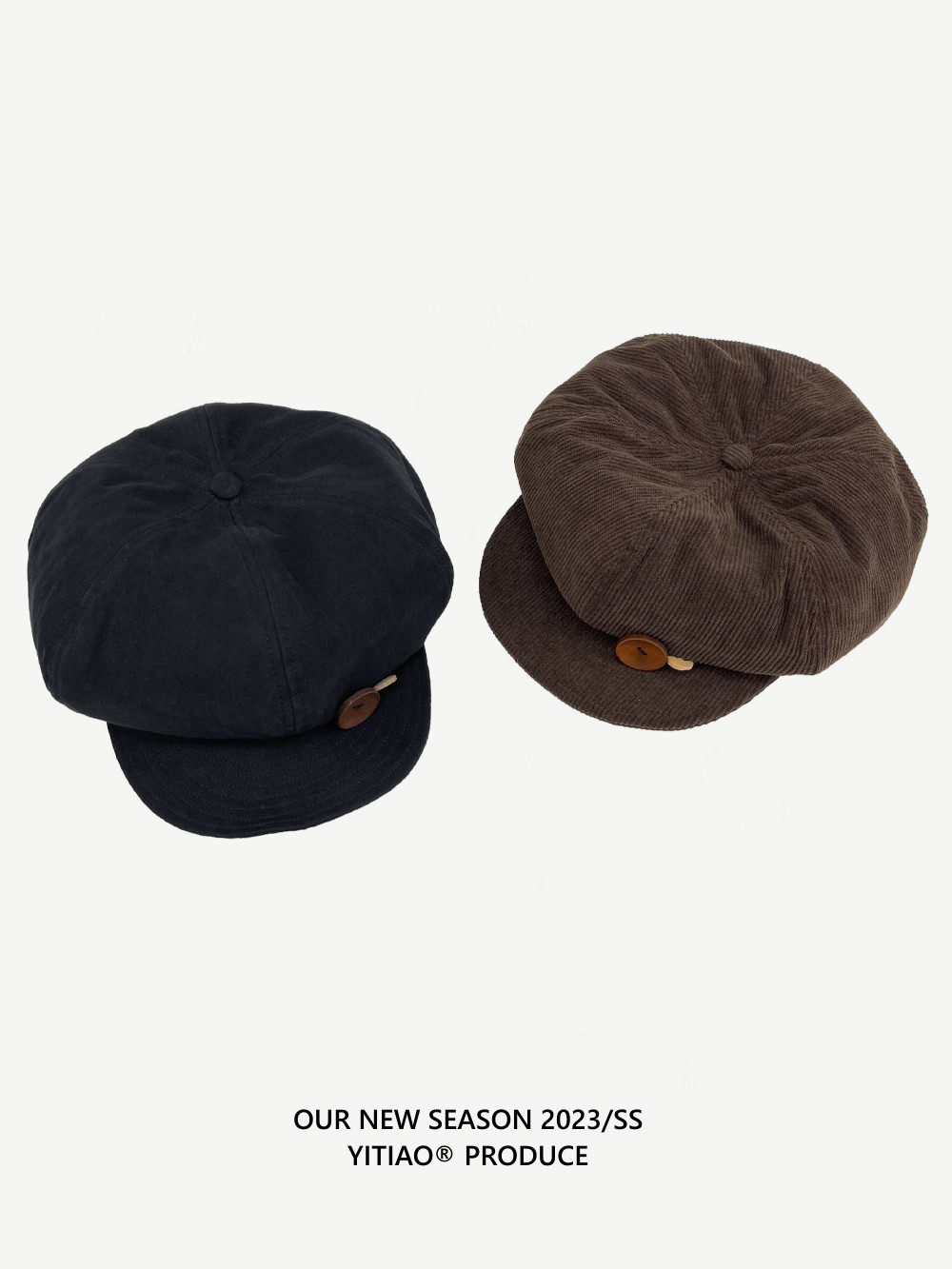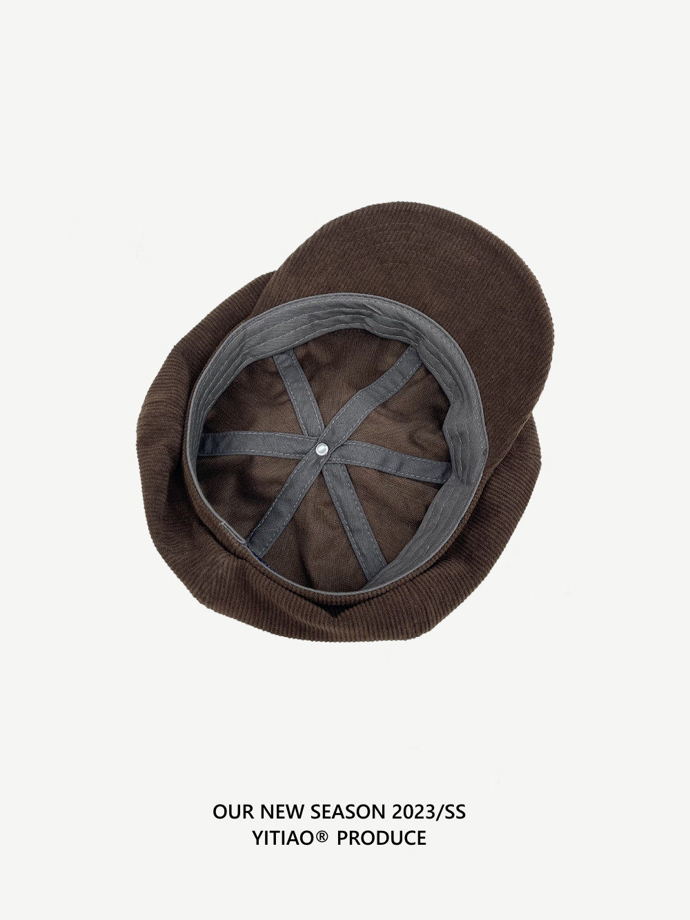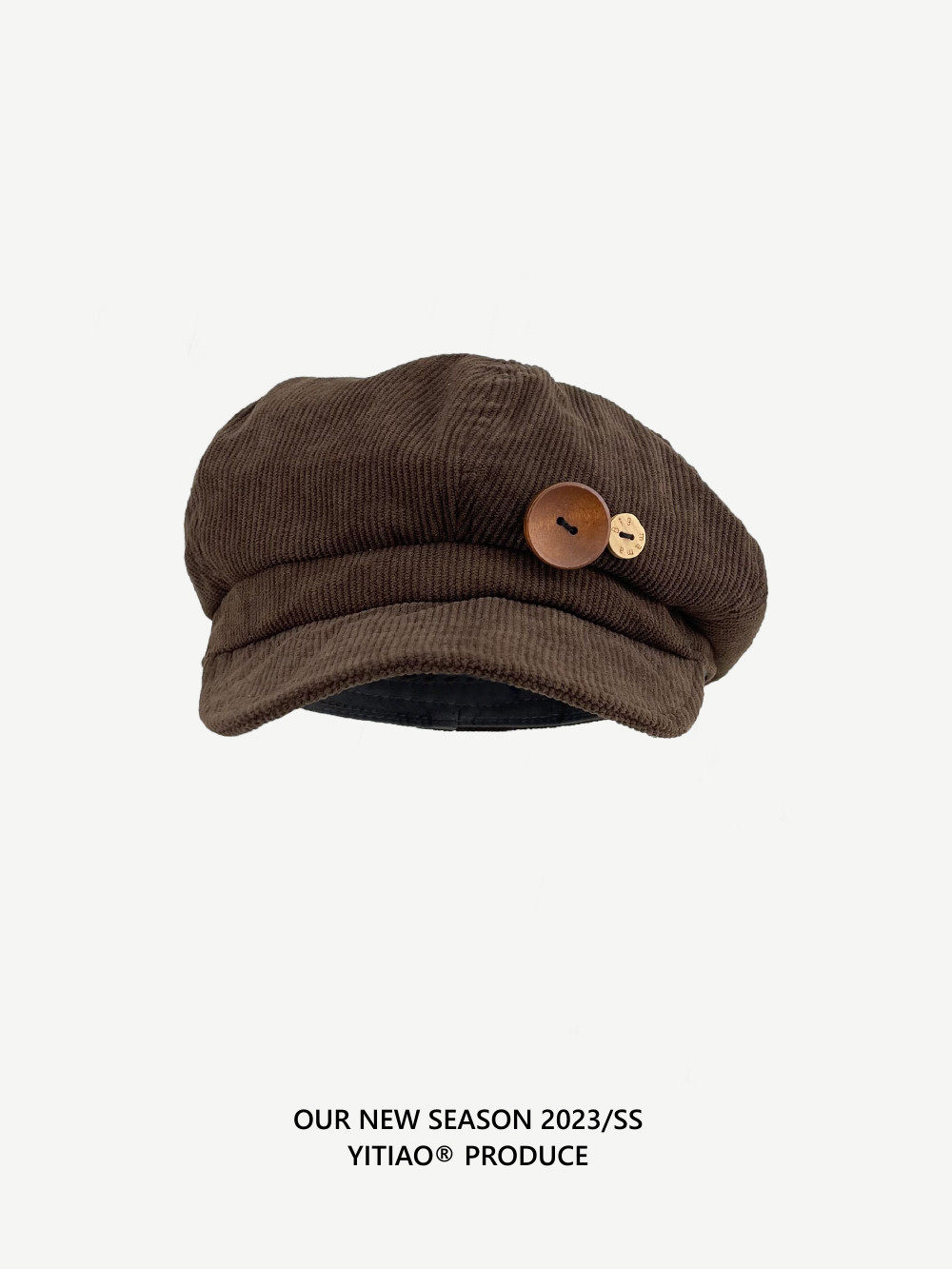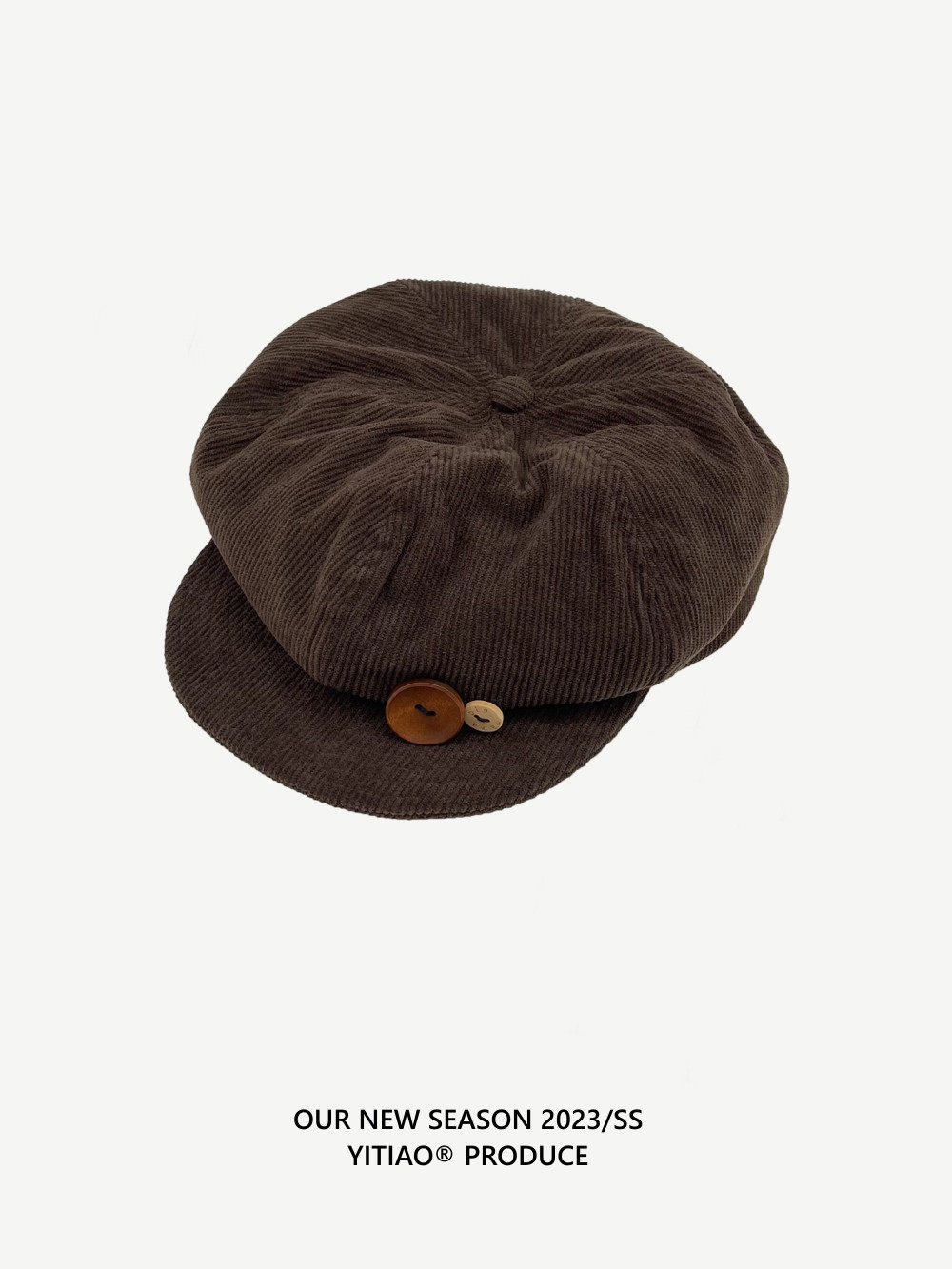 Japanese vintage style women's brown beret, autumn and winter casual versatile retro octagonal hat, painter hat, newsboy hat, trendy.
