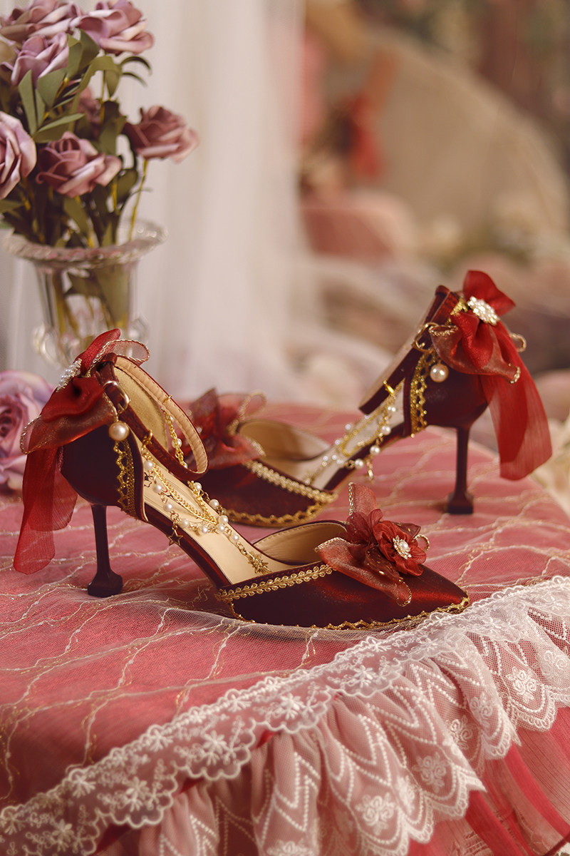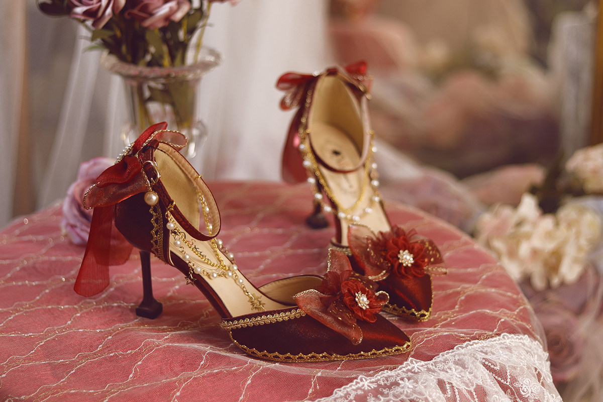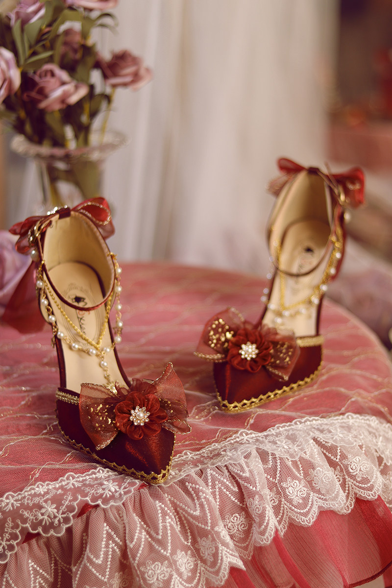 原创一夜物语正品Lolita鞋红色花嫁尖头细跟新娘结婚高跟洛丽塔鞋 [Original Page Link]