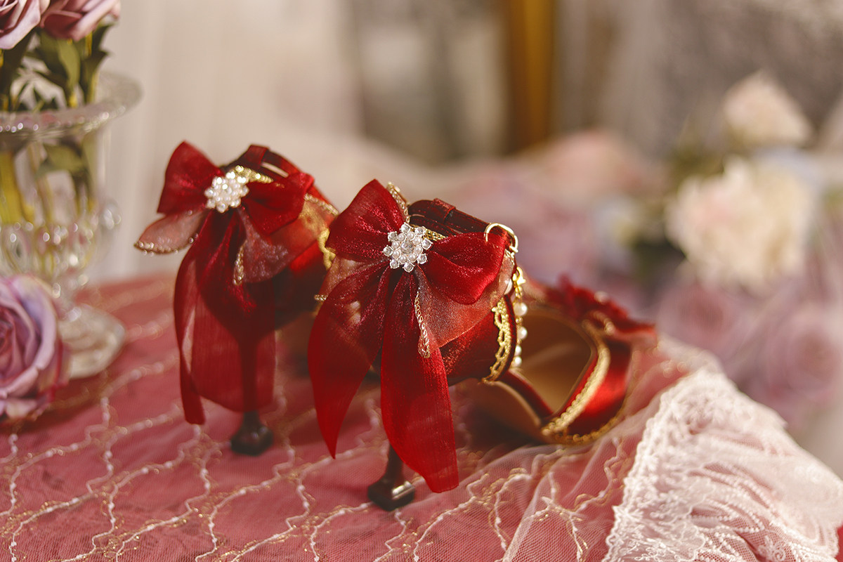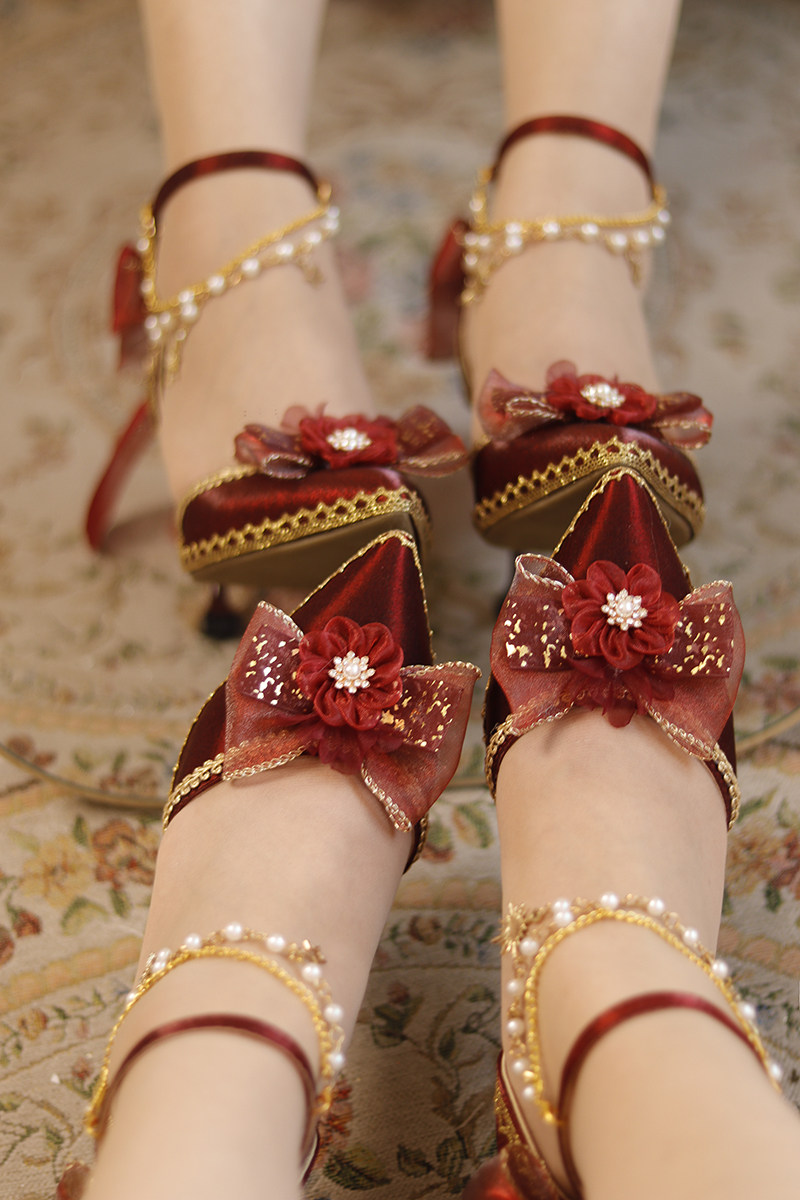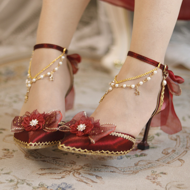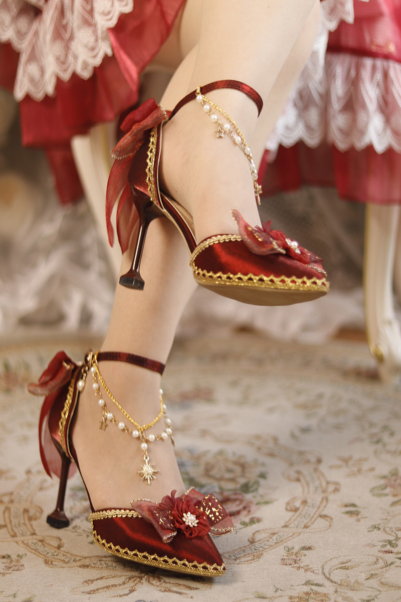 原创一夜物语正品Lolita鞋红色花嫁尖头细跟新娘结婚高跟洛丽塔鞋 [Original Page Link]