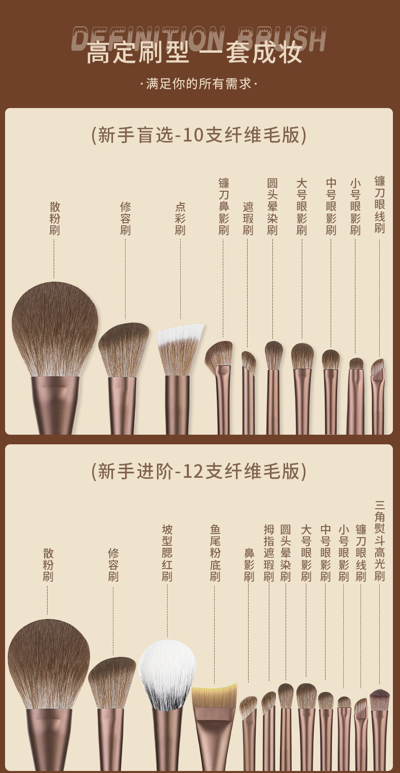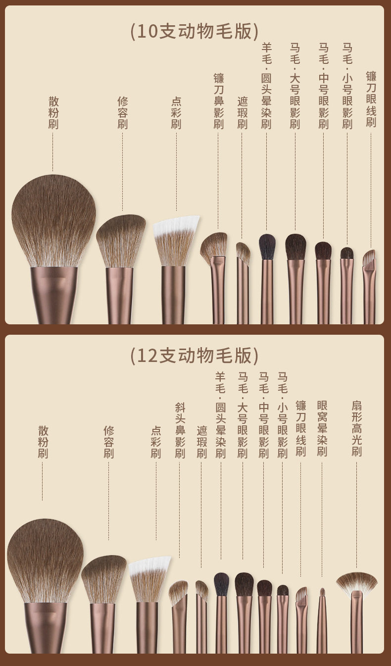 MSQ/魅丝蔻10支摩卡化妆刷套组全套刷子动物毛散粉腮红鼻影眼影刷 [Original Page Link]