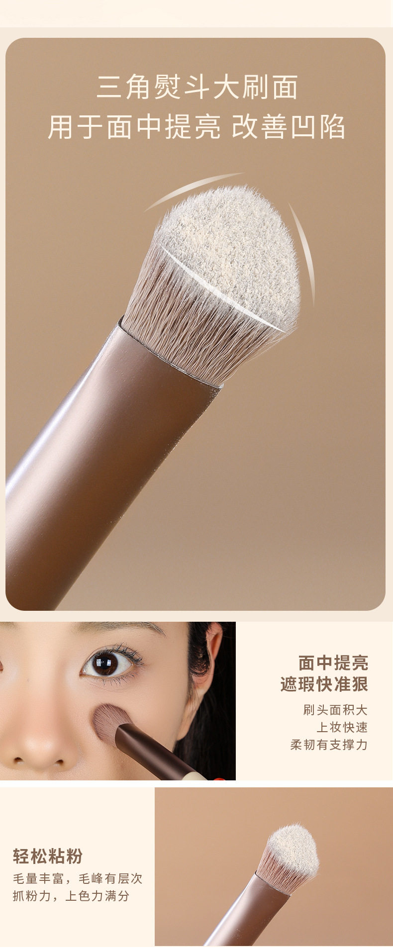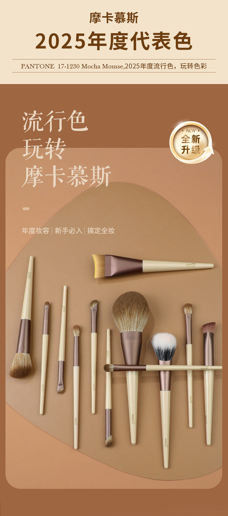 MSQ/Meisikou 10-Piece Mocha Makeup Brush Set (Complete Set of Brushes, Animal Hair Brushes for Loose Powder, Blush, Nose Shadow, and Eyeshadow)