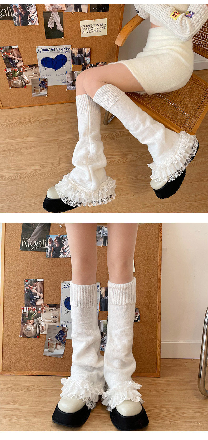 千禧年y2k辣妹 多层蕾丝花边喇叭袜套洛丽塔可爱少女软妹学生袜套 [Original Page Link]