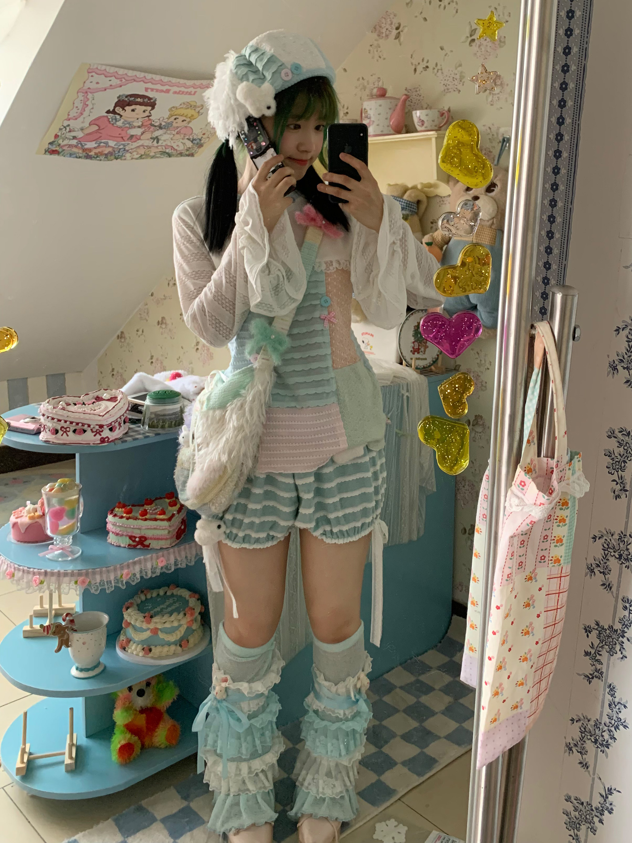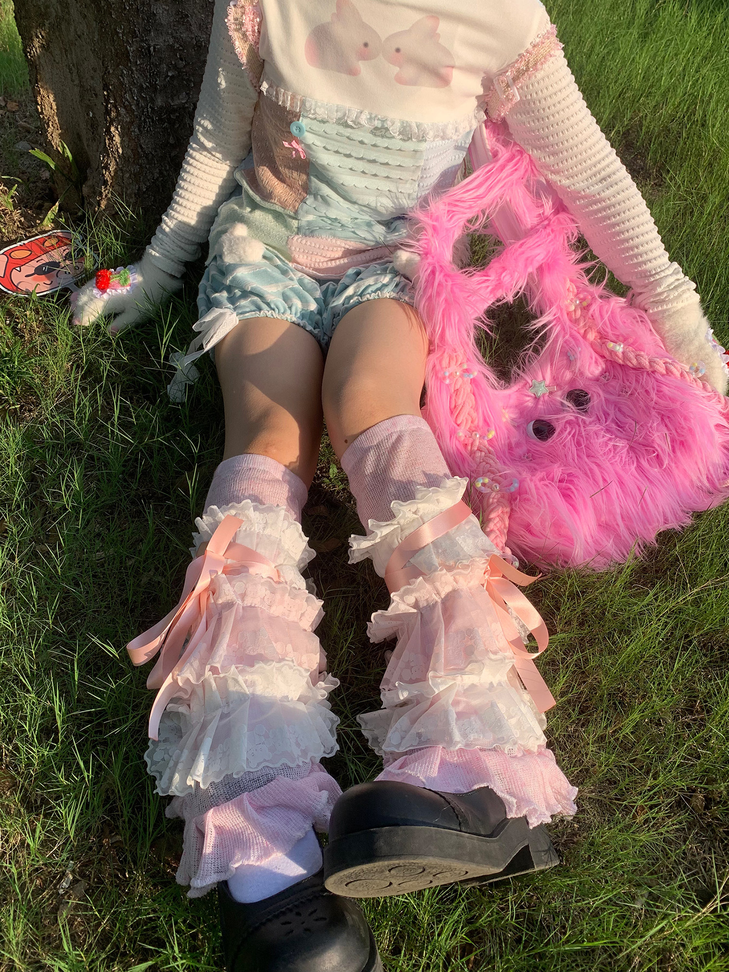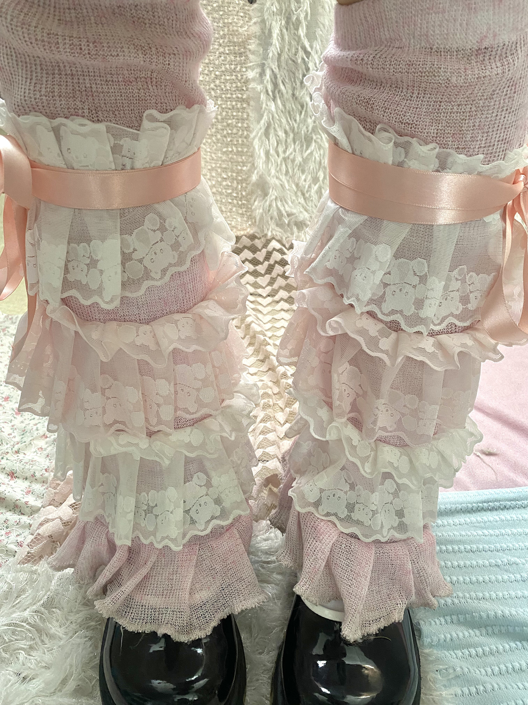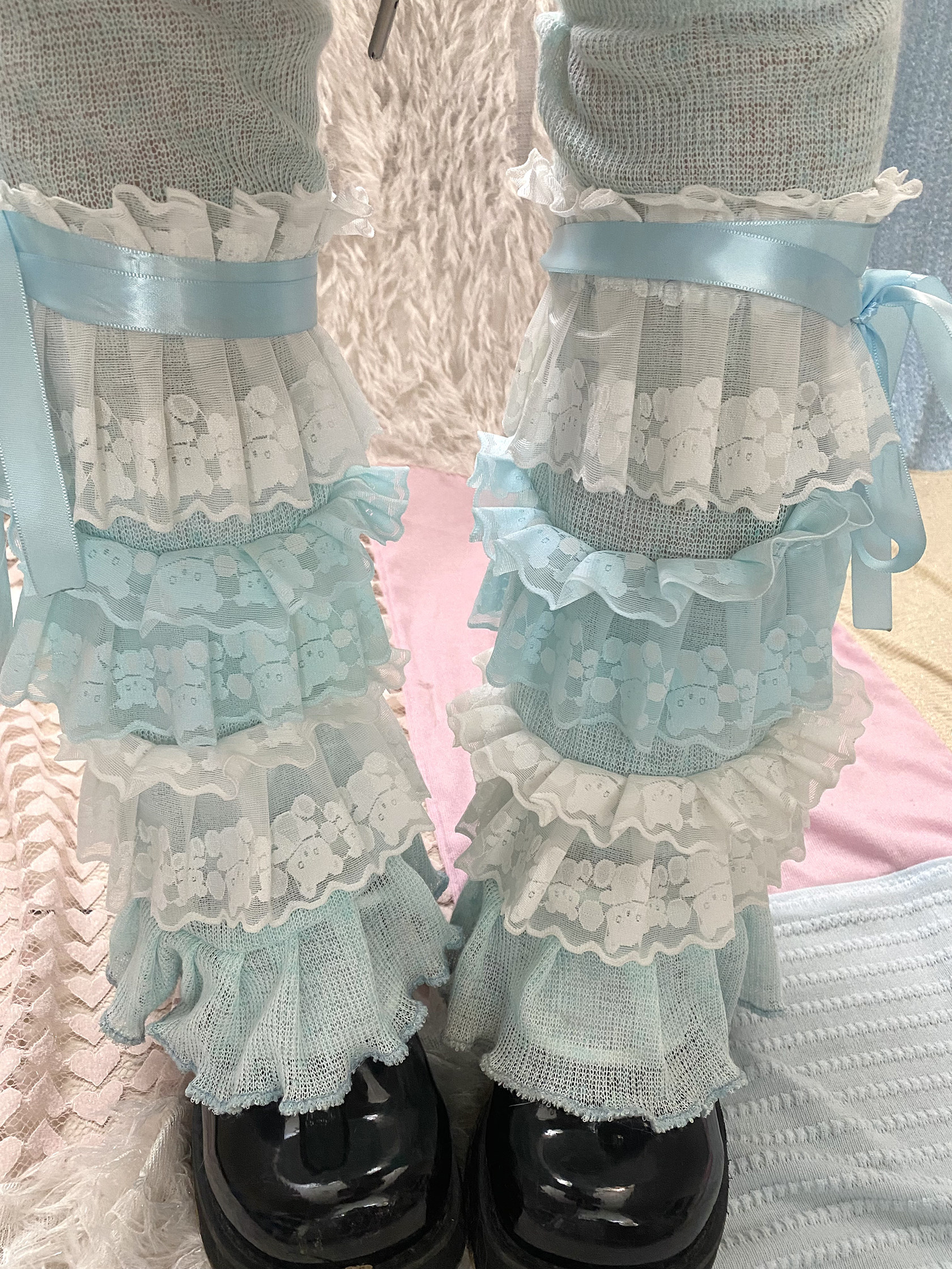 cuteoou限量 梦幻渐层可爱双色进口小熊蕾丝蛋糕腿套 显瘦 [Original Page Link]