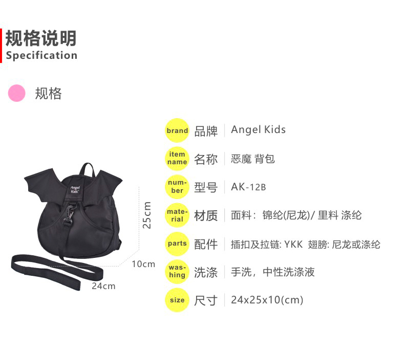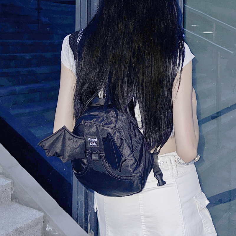 Angel kids原创小恶魔黑翅膀男女双肩牵引绳炸街时尚达人网红背包 [Original Page Link]