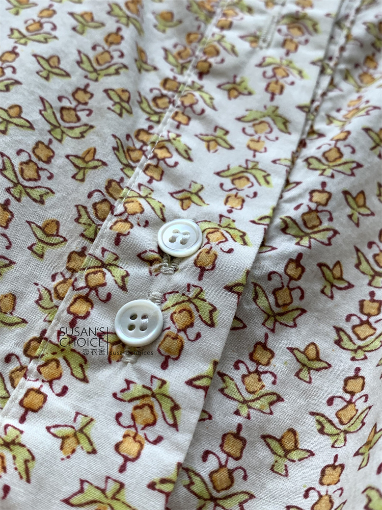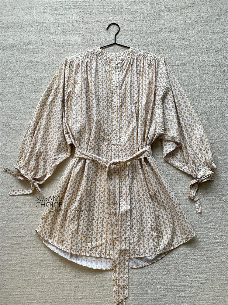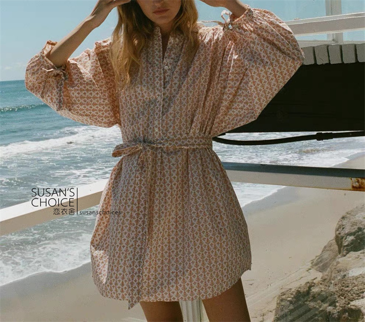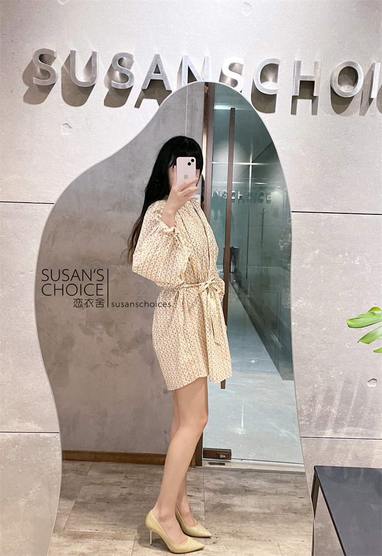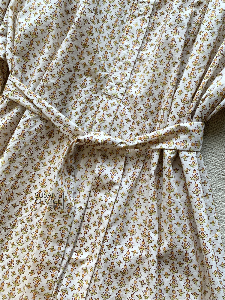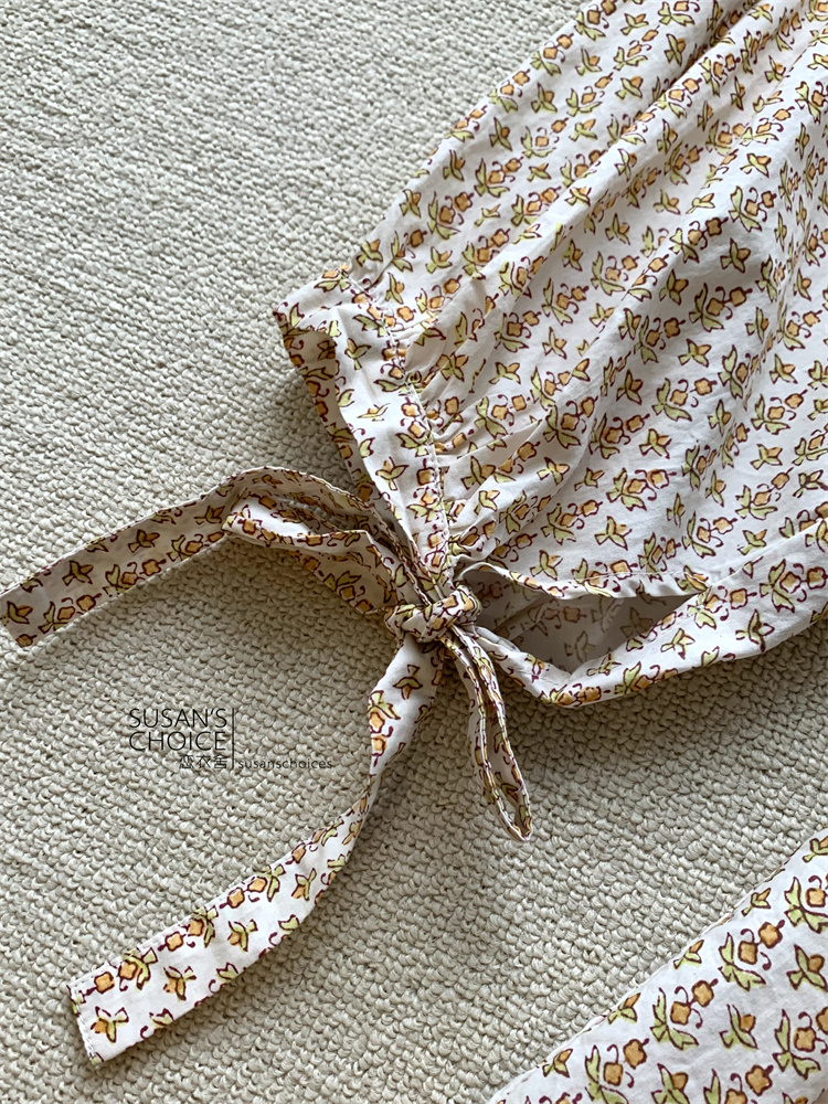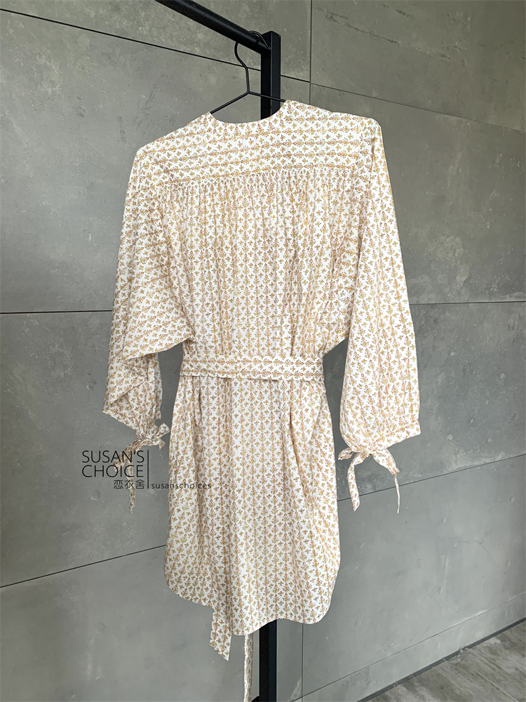 恋衣舍SUSAN 法式小众气质初秋复古橘色小碎花系带短款衬衫连衣裙 [Original Page Link]
