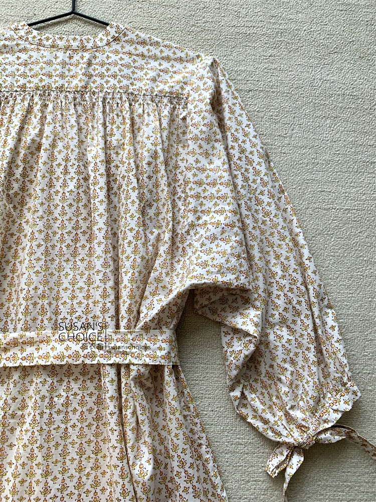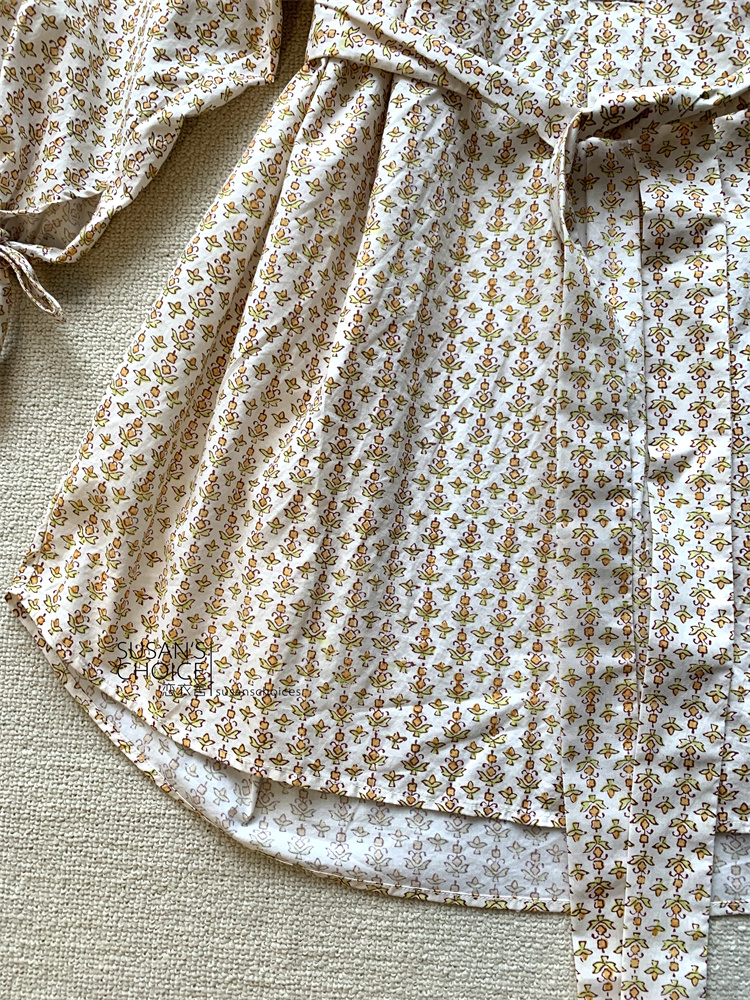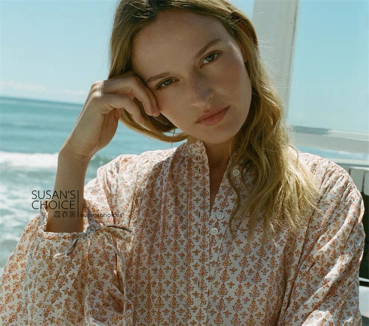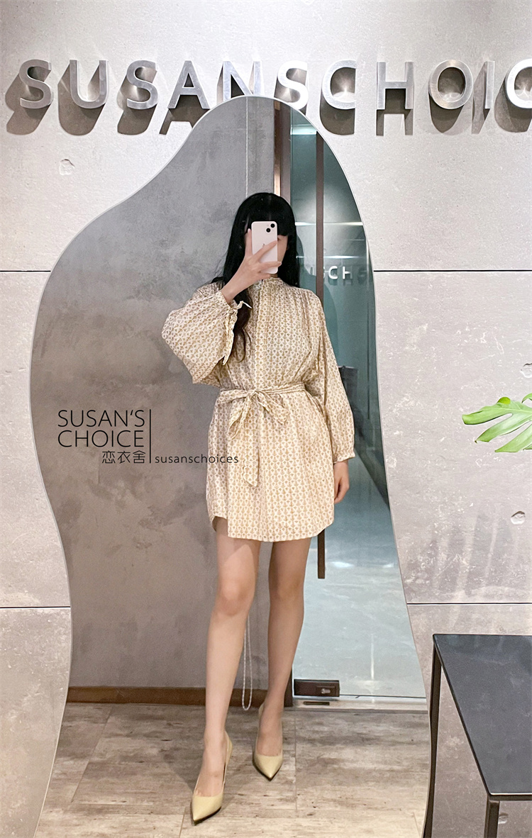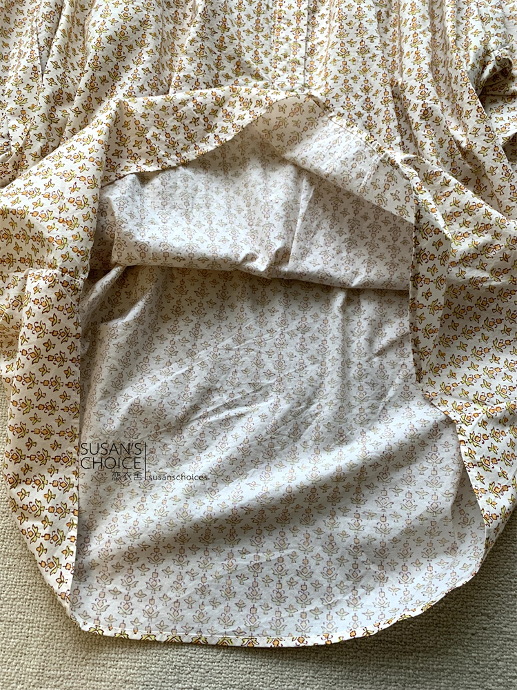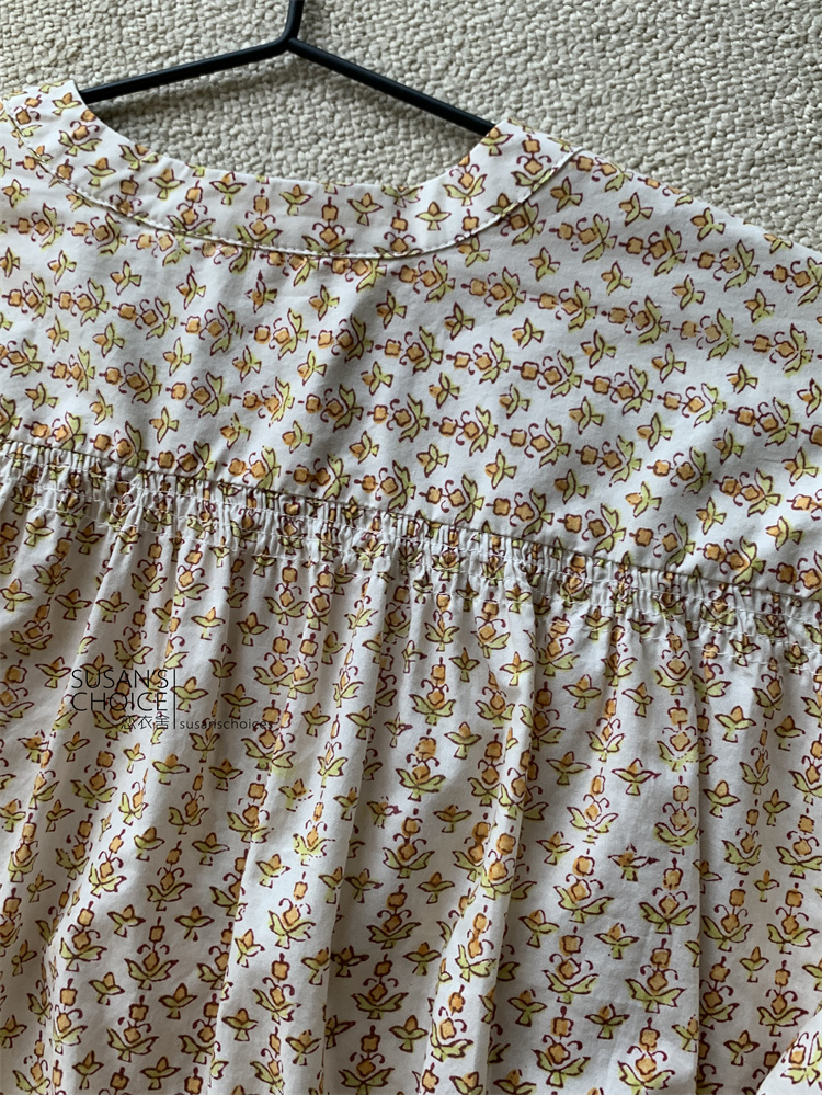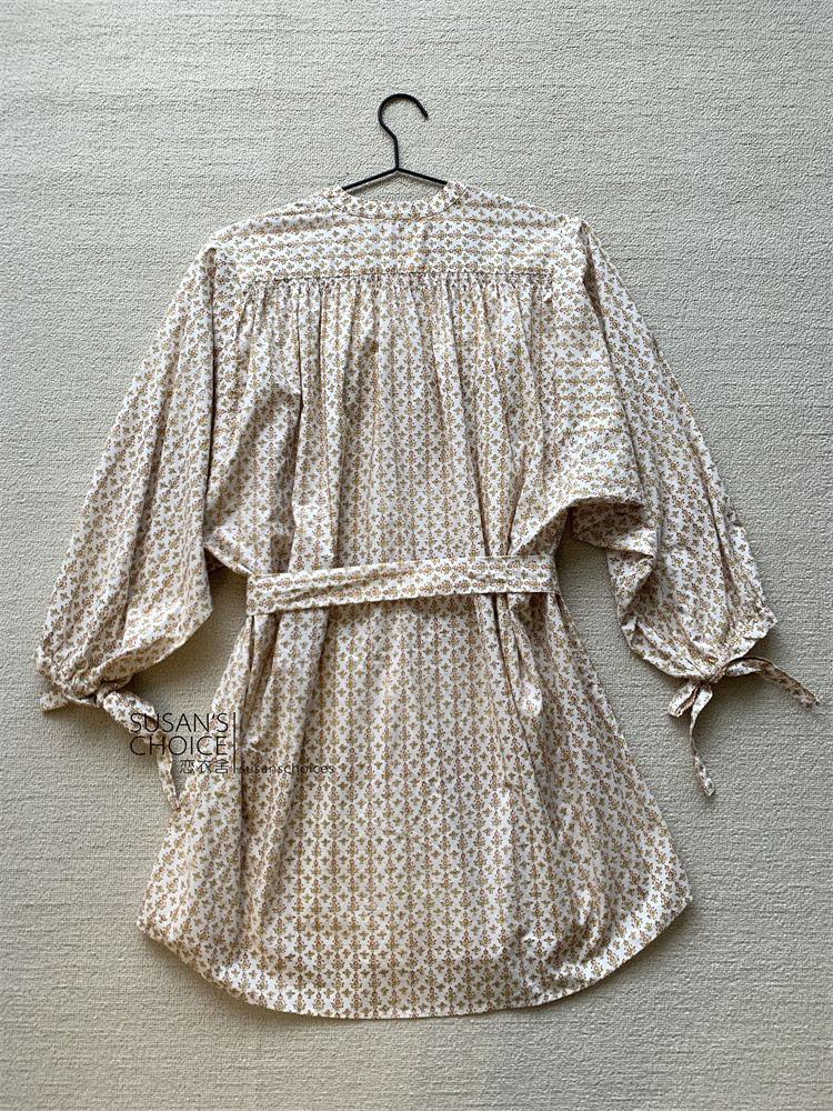 恋衣舍SUSAN 法式小众气质初秋复古橘色小碎花系带短款衬衫连衣裙 [Original Page Link]