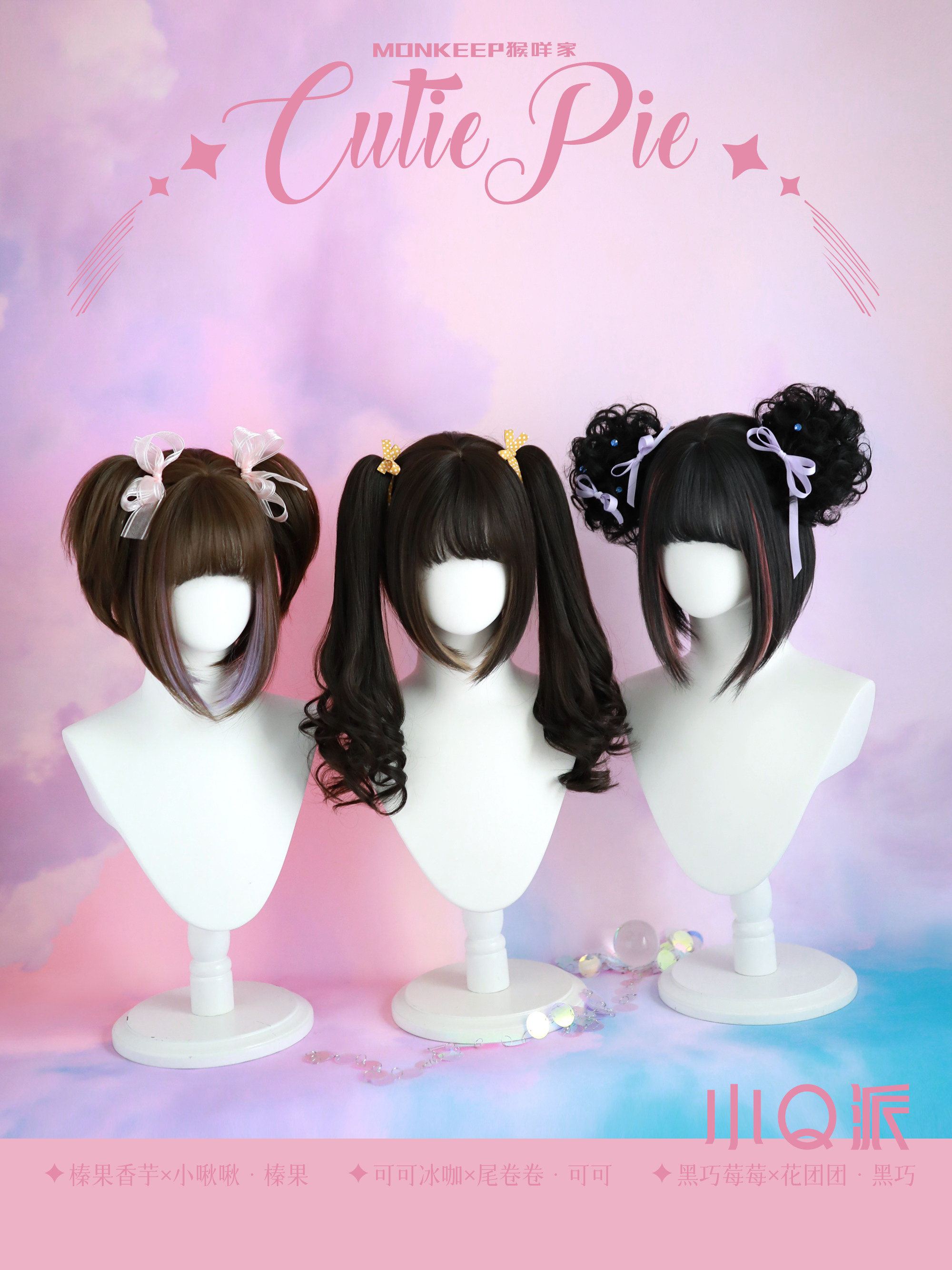 Monkey's double ponytail wig with highlights, hair extensions, tiger clips, and high-temperature silk material.