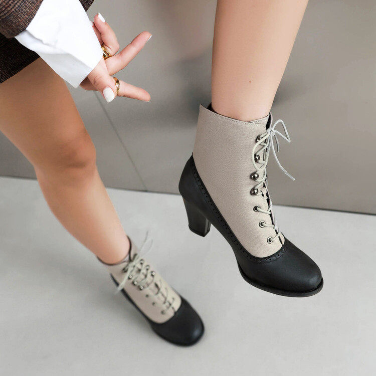 覆古英伦风格44高跟鞋锥形跟3靴子对比色汉代Cosplay布洛克2皮靴短靴5 [Original Page Link]