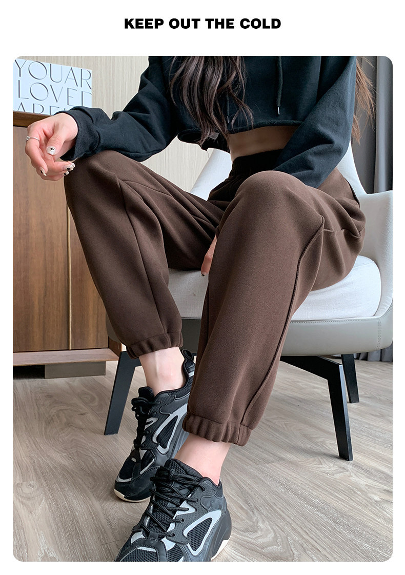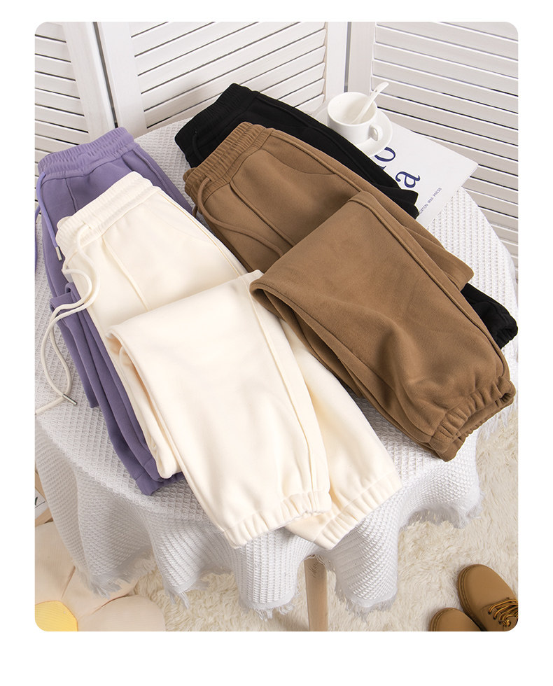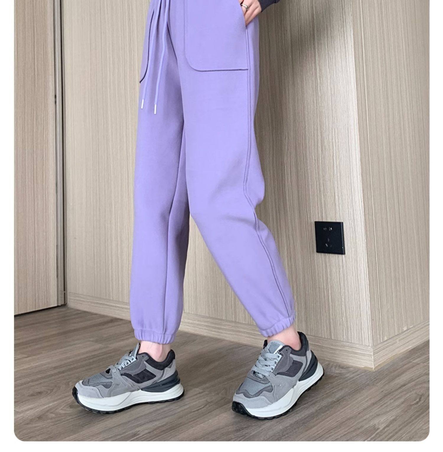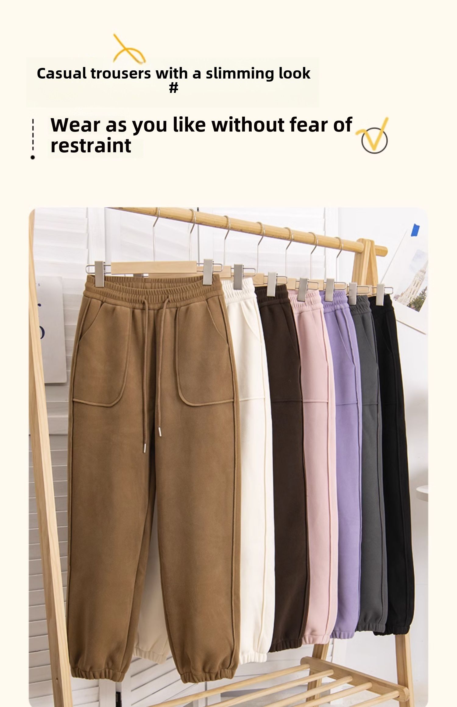 Pink women's winter velvet thickened autumn/winter 2025 new style thick casual versatile sports pants