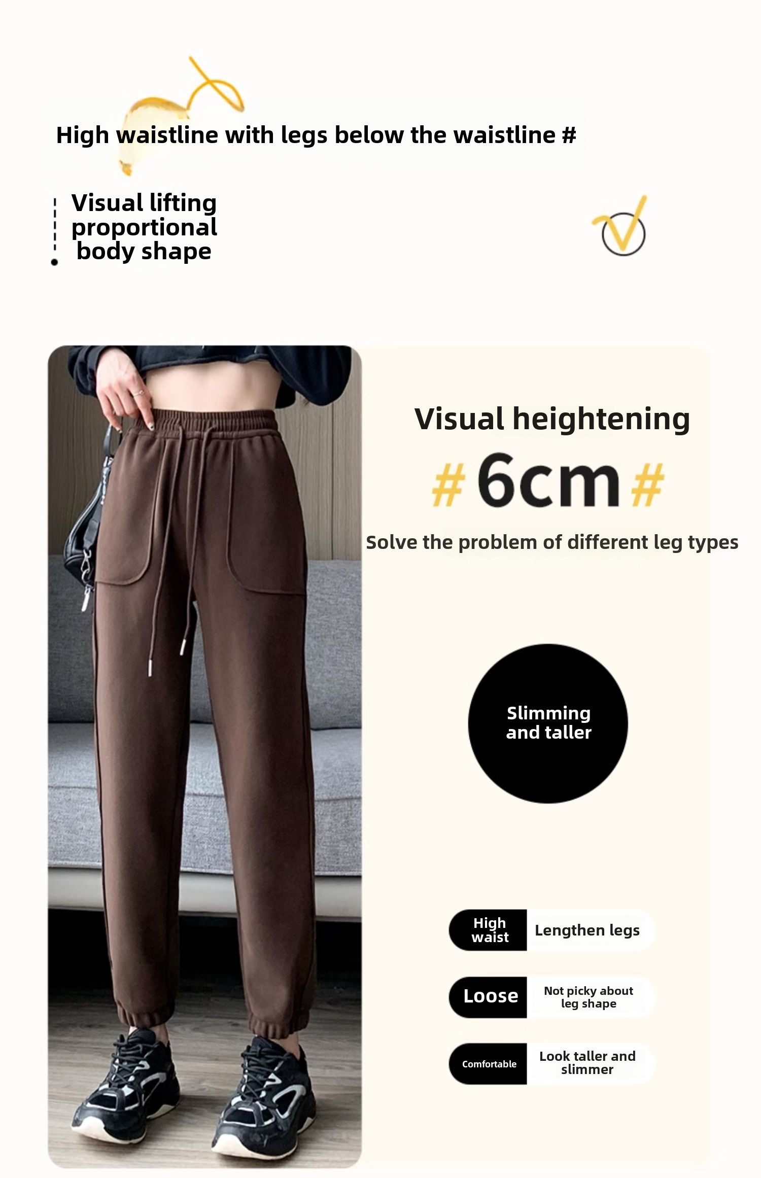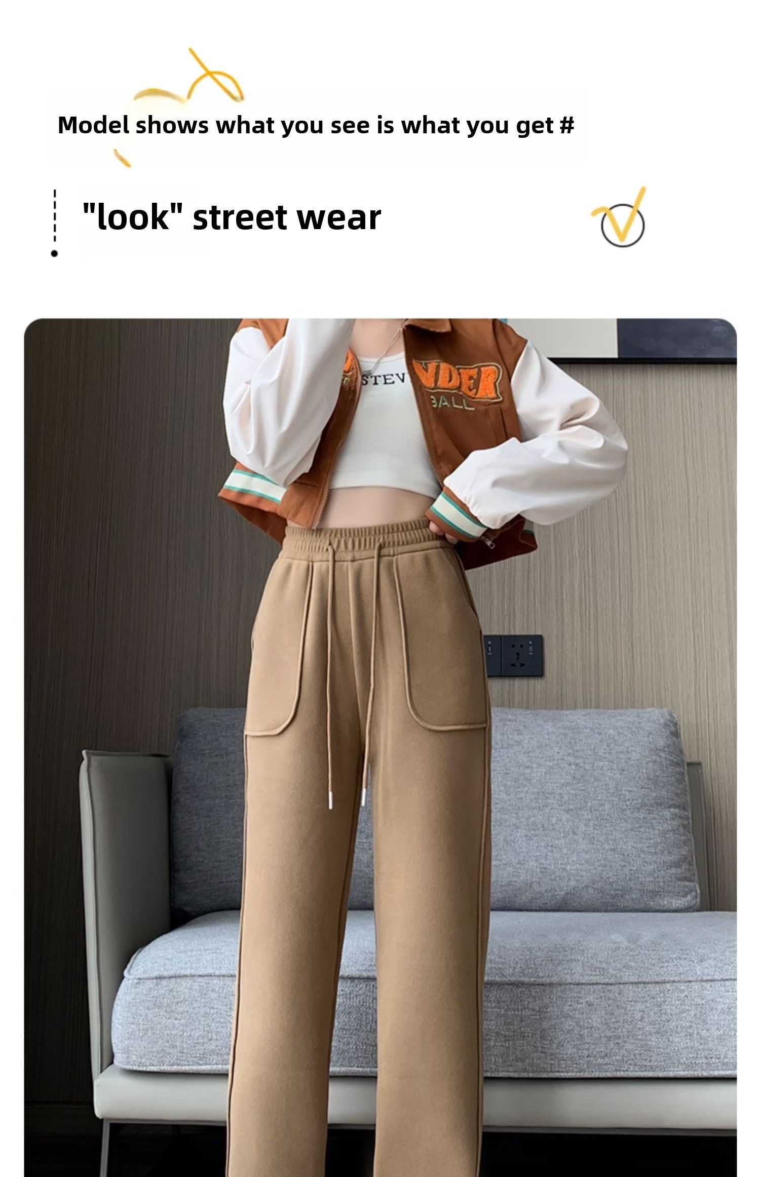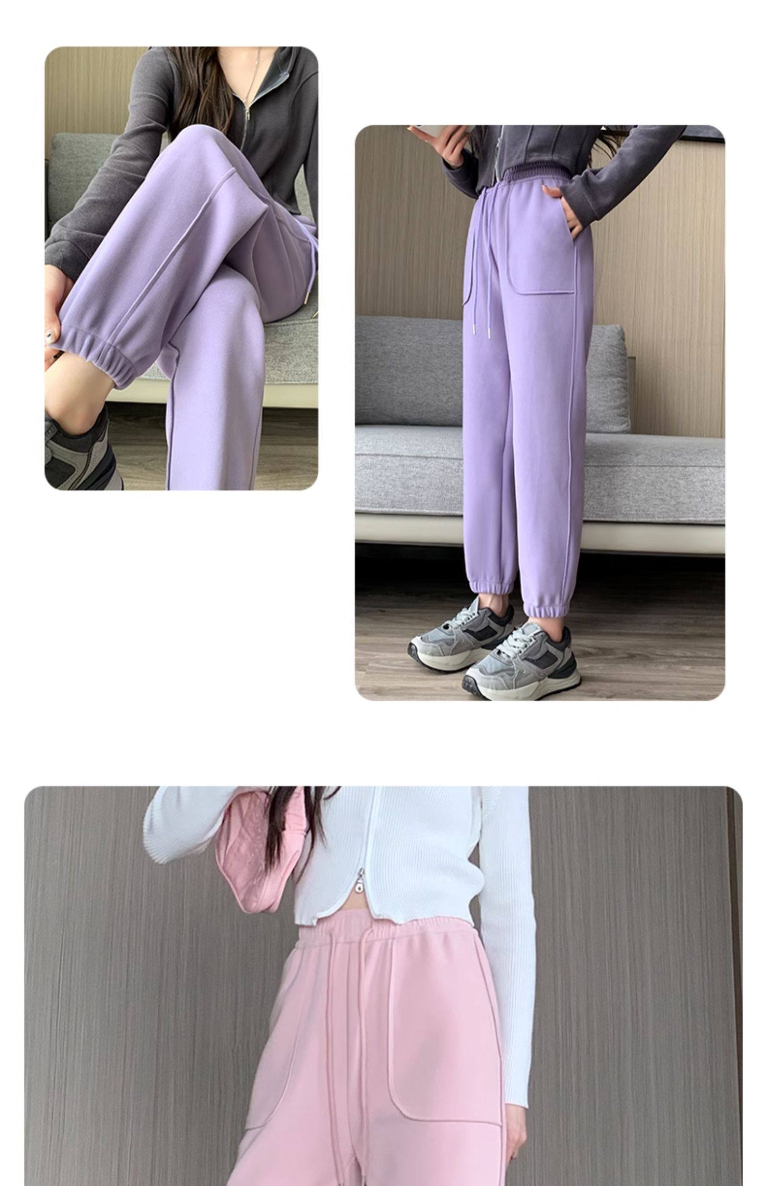 Pink women's winter velvet thickened autumn/winter 2025 new style thick casual versatile sports pants