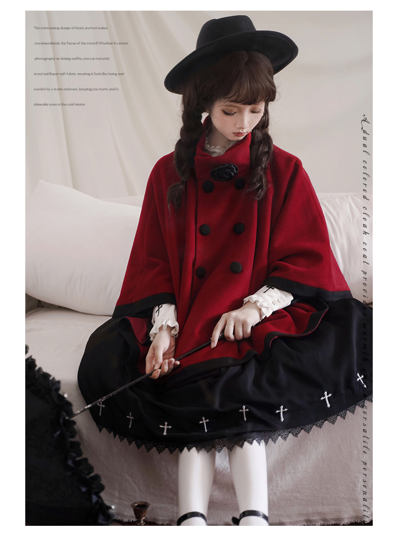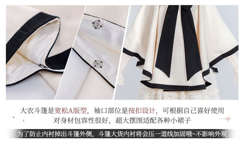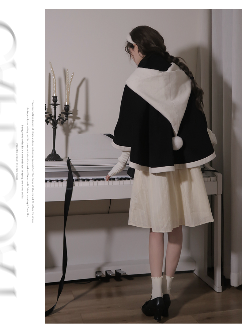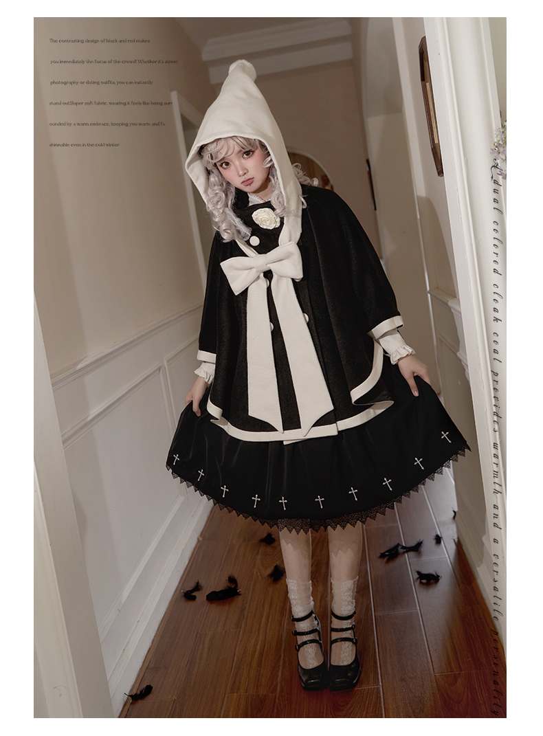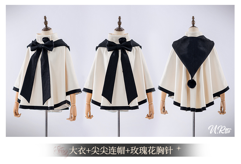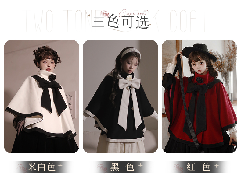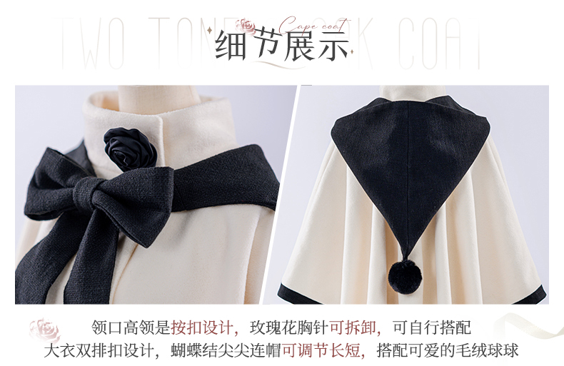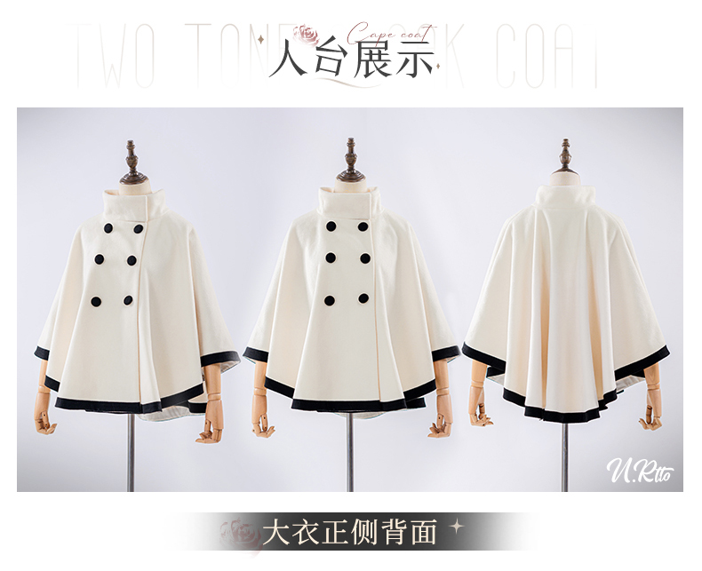 urtto原创斗篷大衣lolita洛丽塔毛呢外套秋冬优雅黑白山茶花大衣 [Original Page Link]