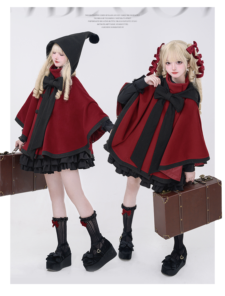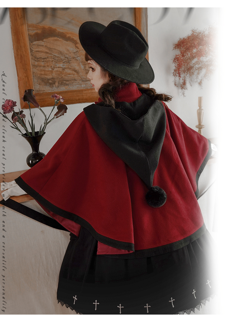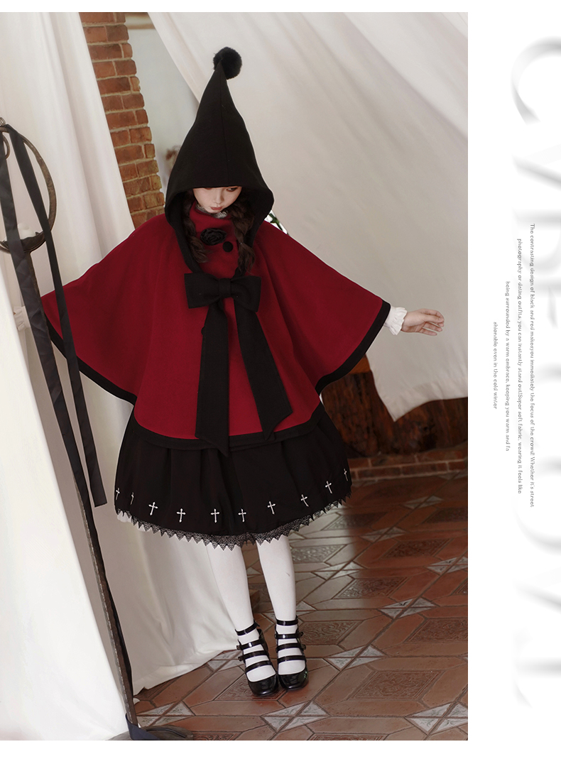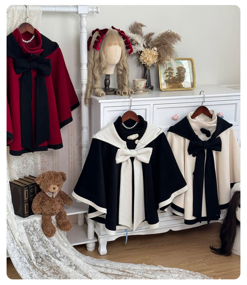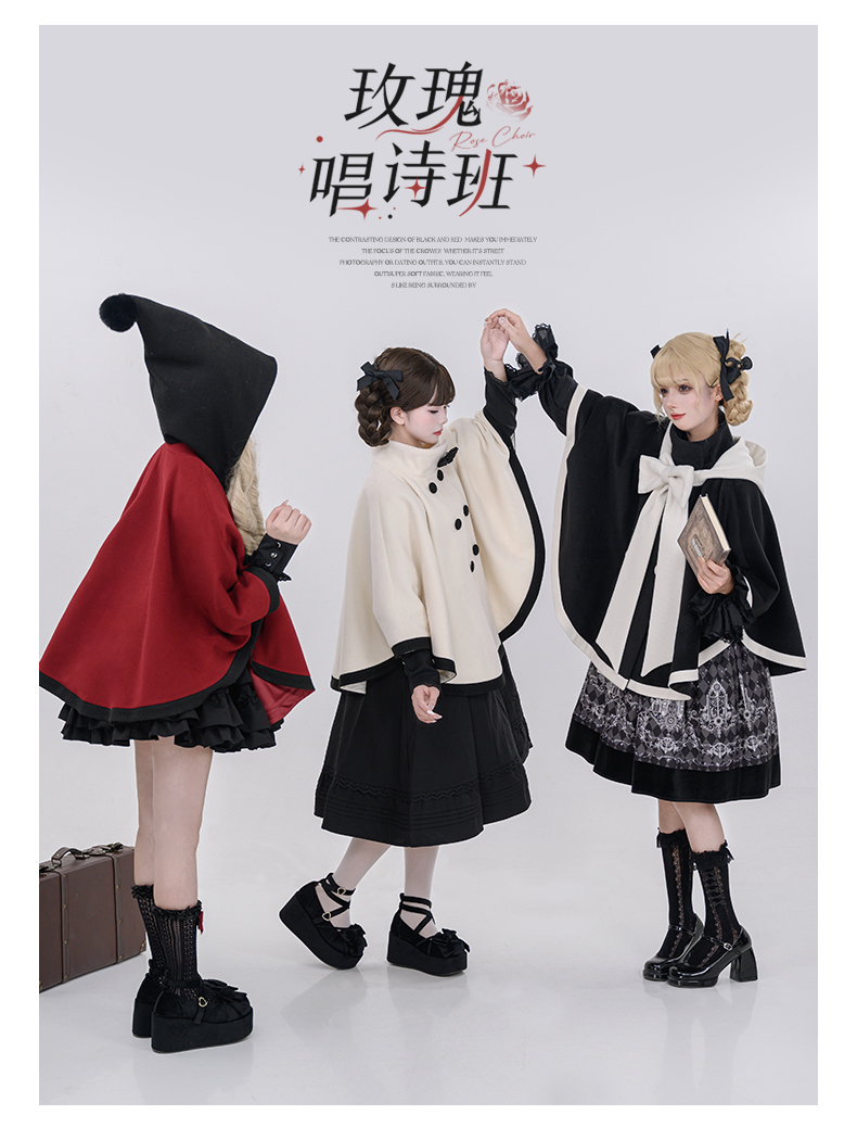 urtto原创斗篷大衣lolita洛丽塔毛呢外套秋冬优雅黑白山茶花大衣 [Original Page Link]