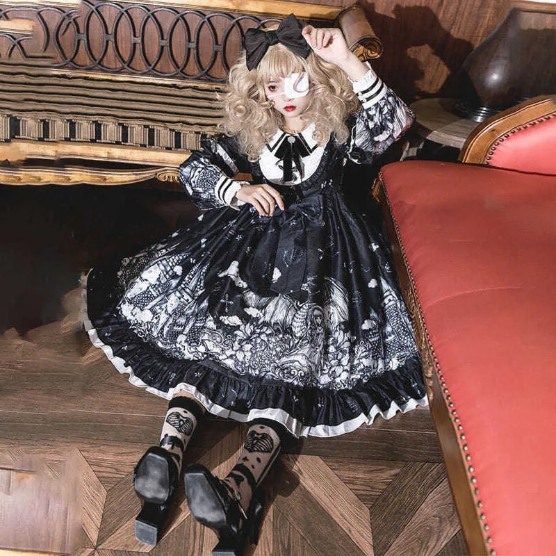 大码300斤暗黑系Lolita蝴蝶结连衣裙女大码洛丽塔软妹长袖cos裙子 [Original Page Link]