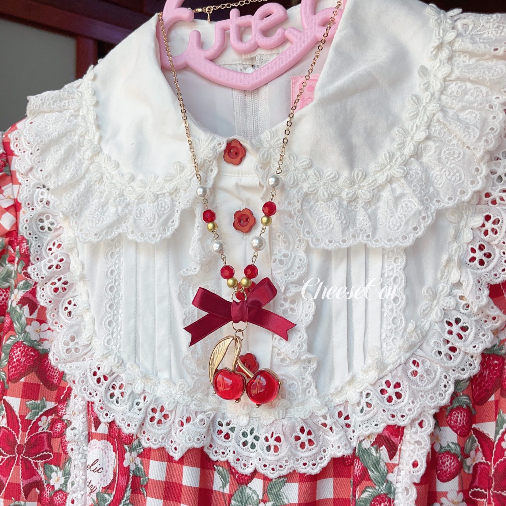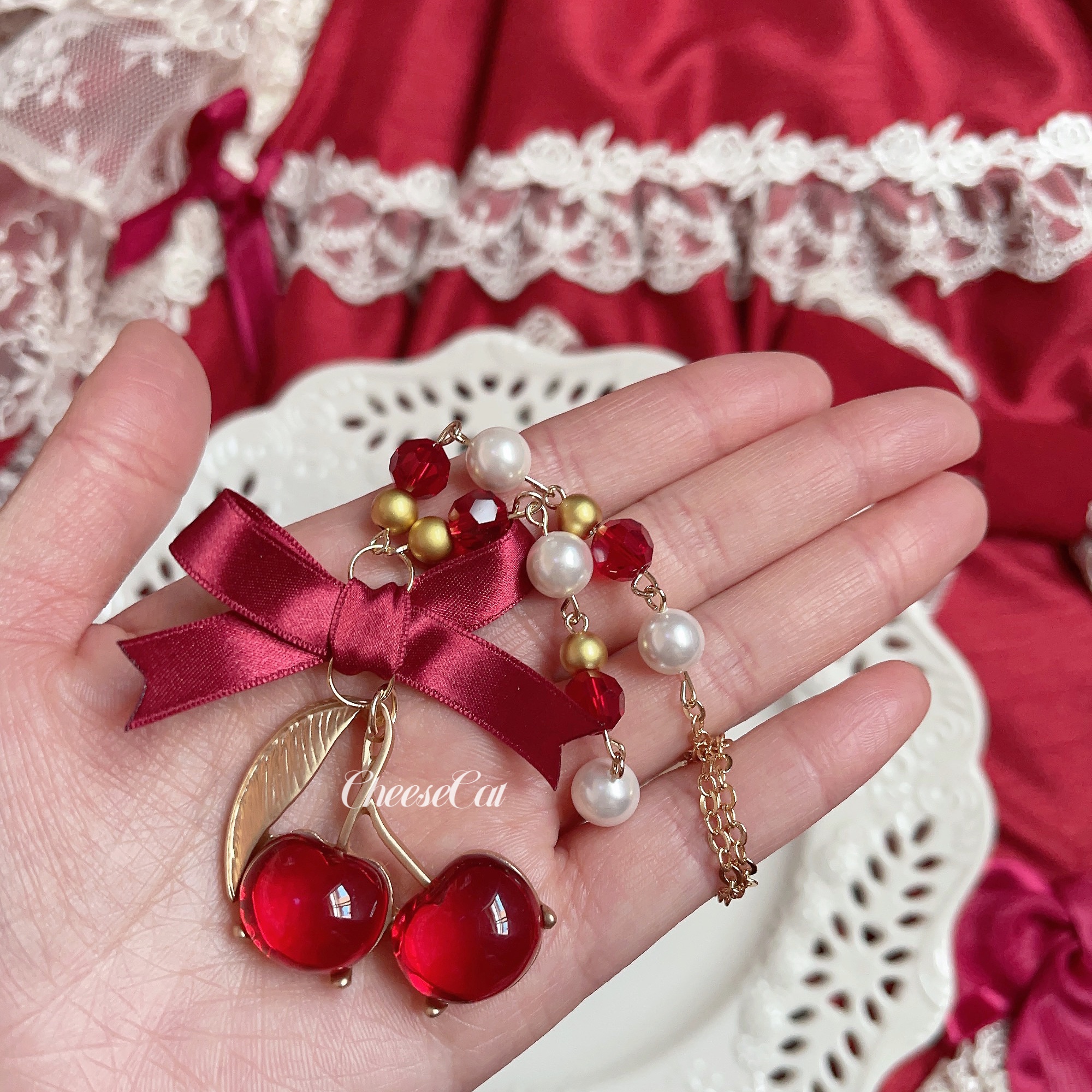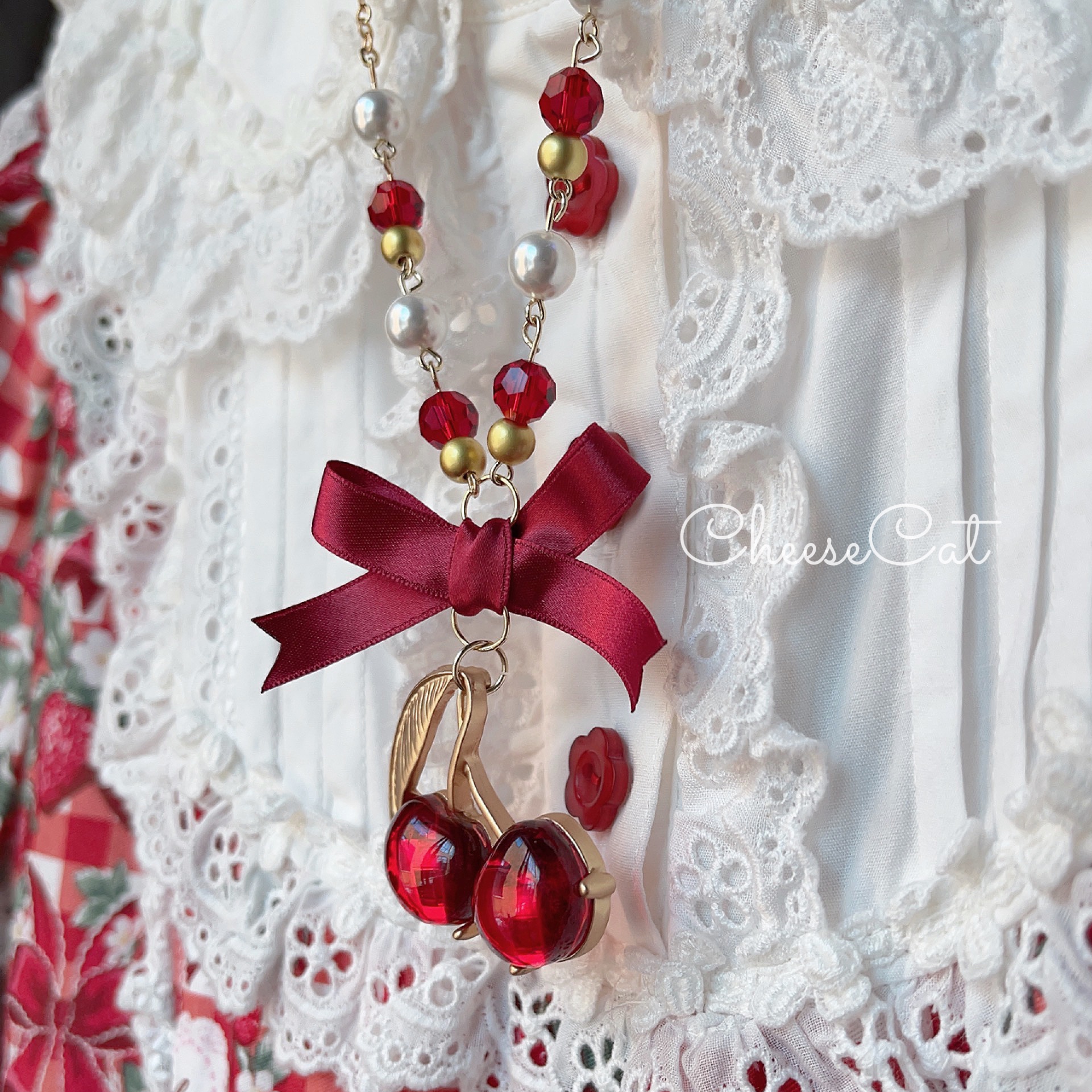 [Cheese Cat Handmade] Cherry Cherry Elegant Pearl Versatile Love Princess Lolita Small Jewelry Necklace