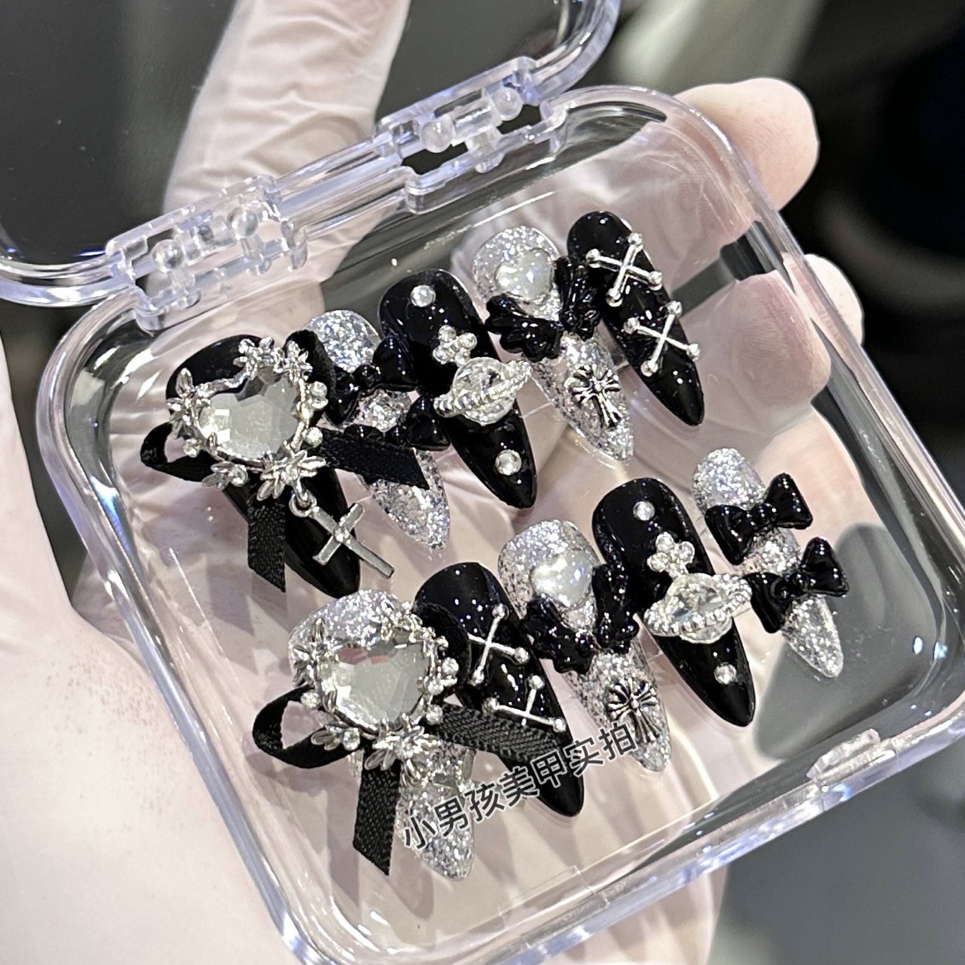 小男孩美甲手工穿戴甲贴片成品千禧辣妹y2k黑色显白二次元罗莉塔 [Original Page Link]