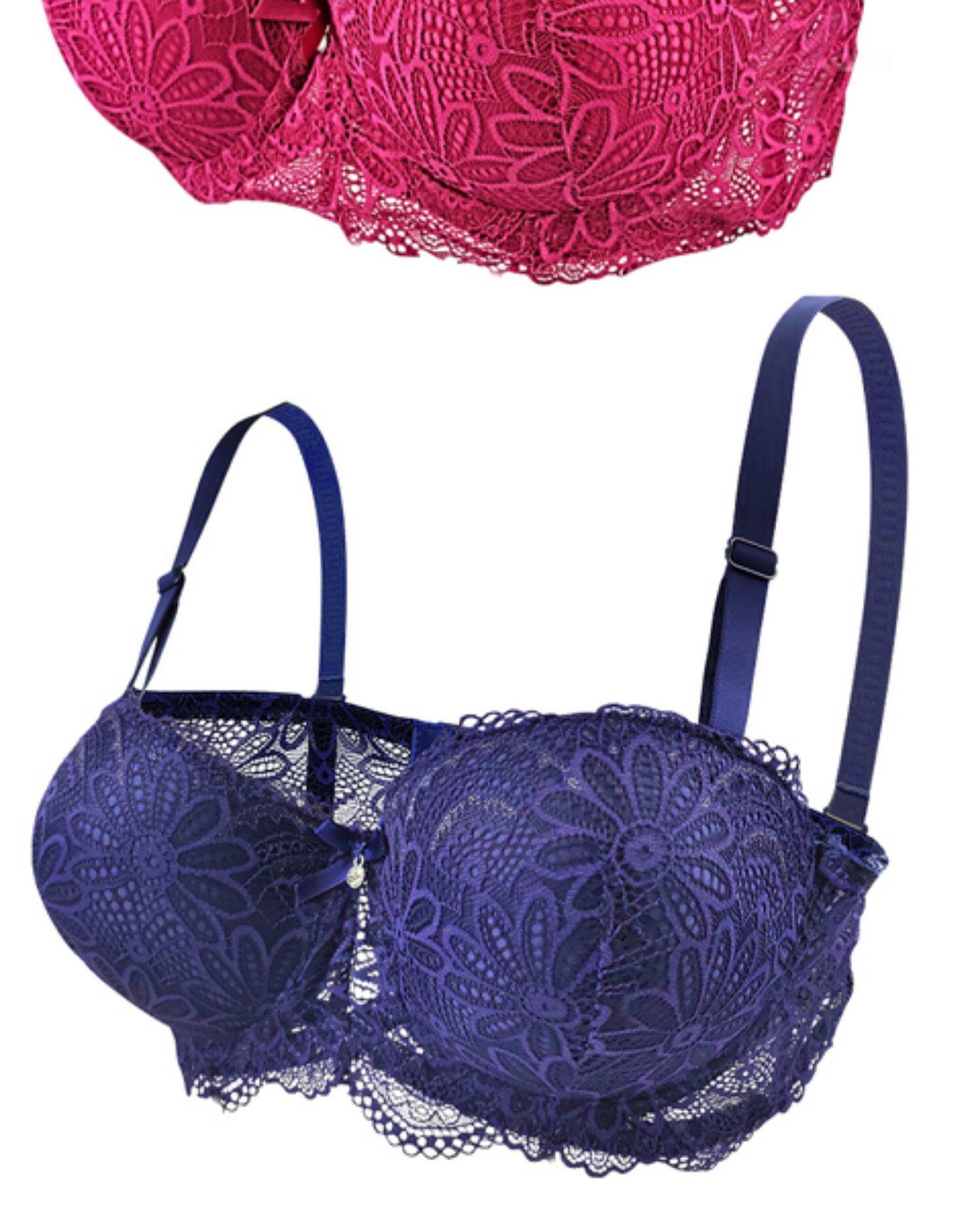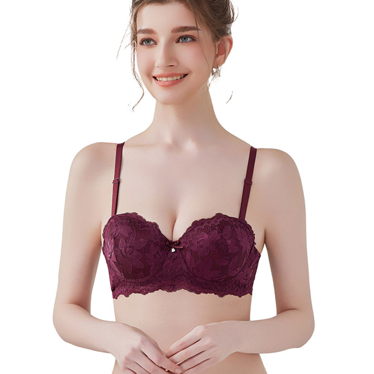 Lace Cute Medium-Padded Cup Bra for Small Busts, Half-Cup, Push-Up, Underwire Bra, Side Boob Support and Shaping