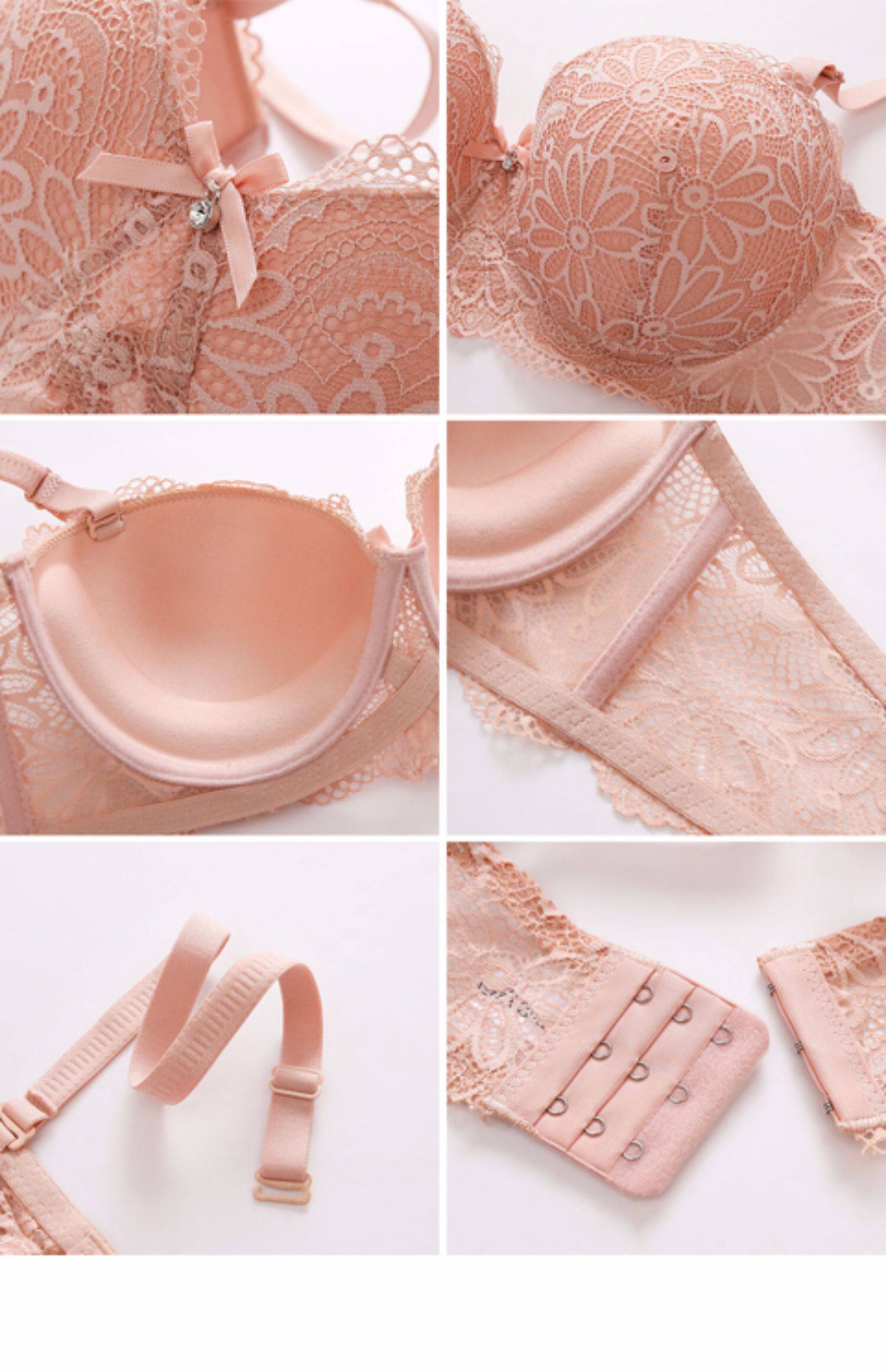 蕾丝小可爱中厚杯小胸半杯聚拢上托有钢圈bra收副乳调整型胸罩内衣 [Original Page Link]