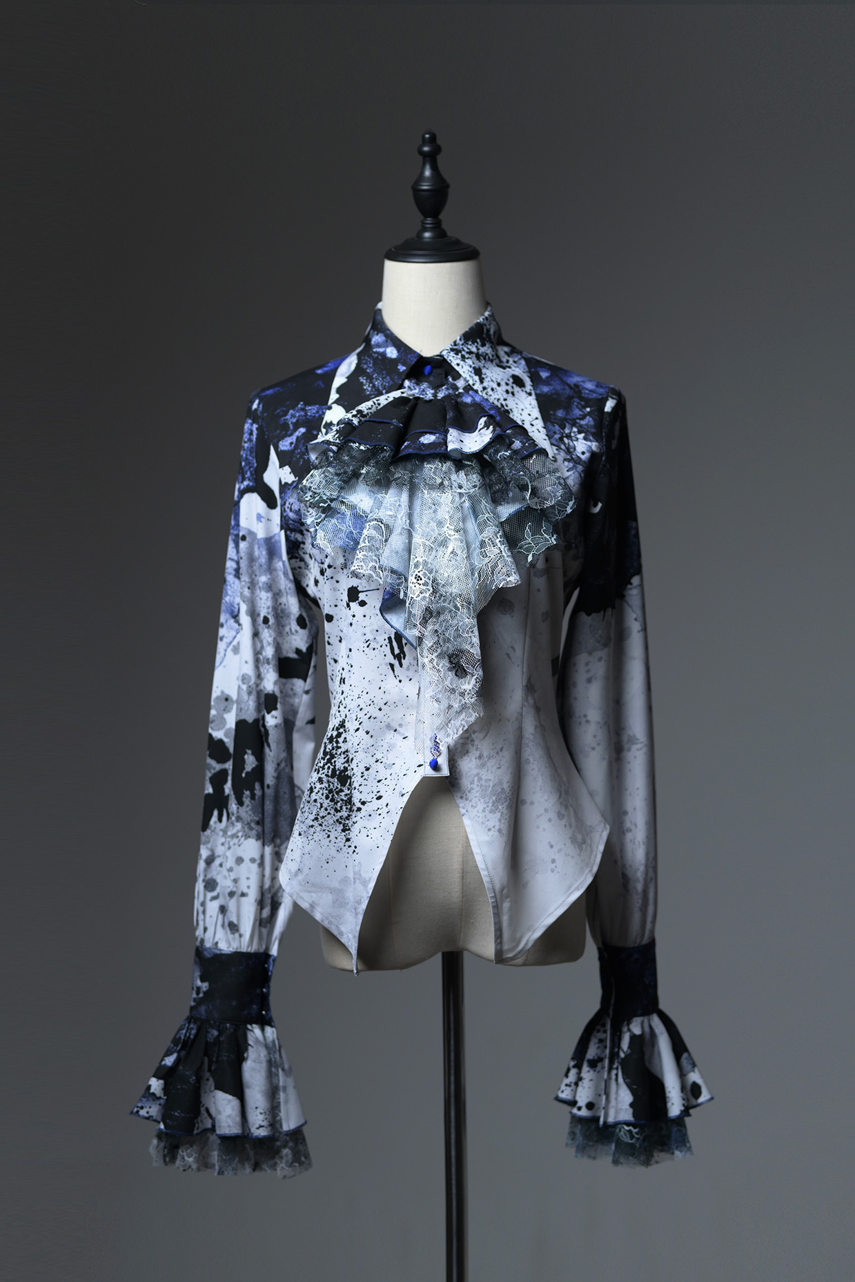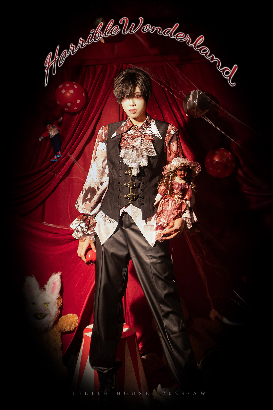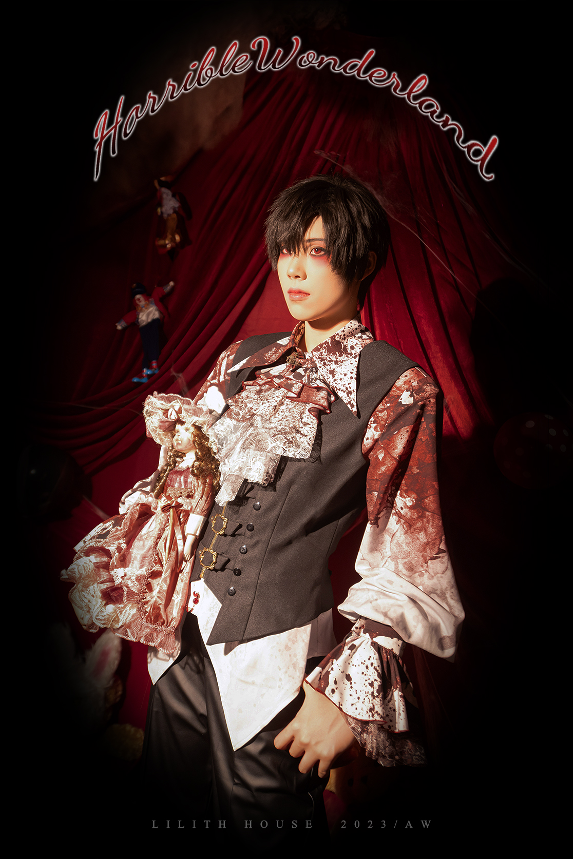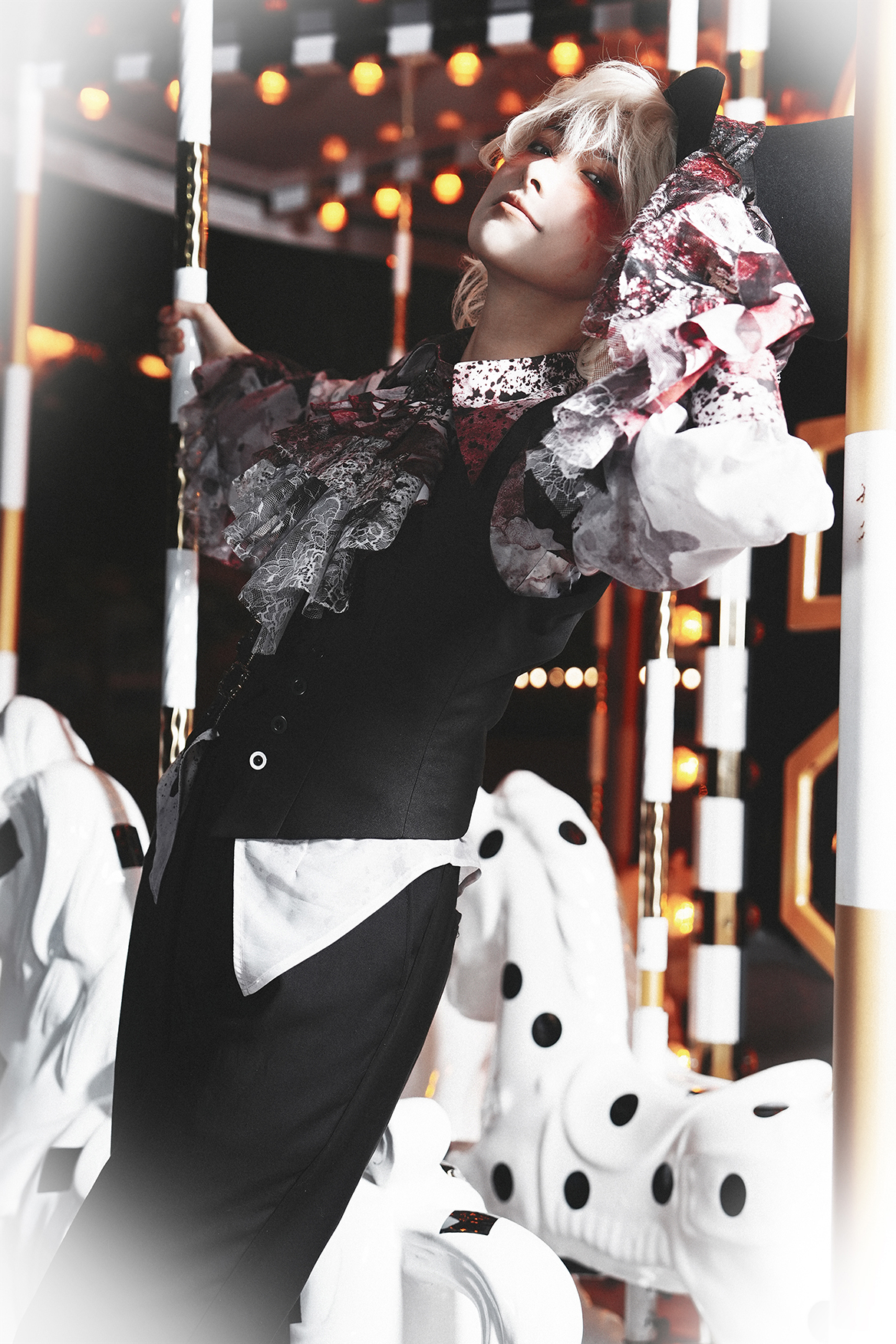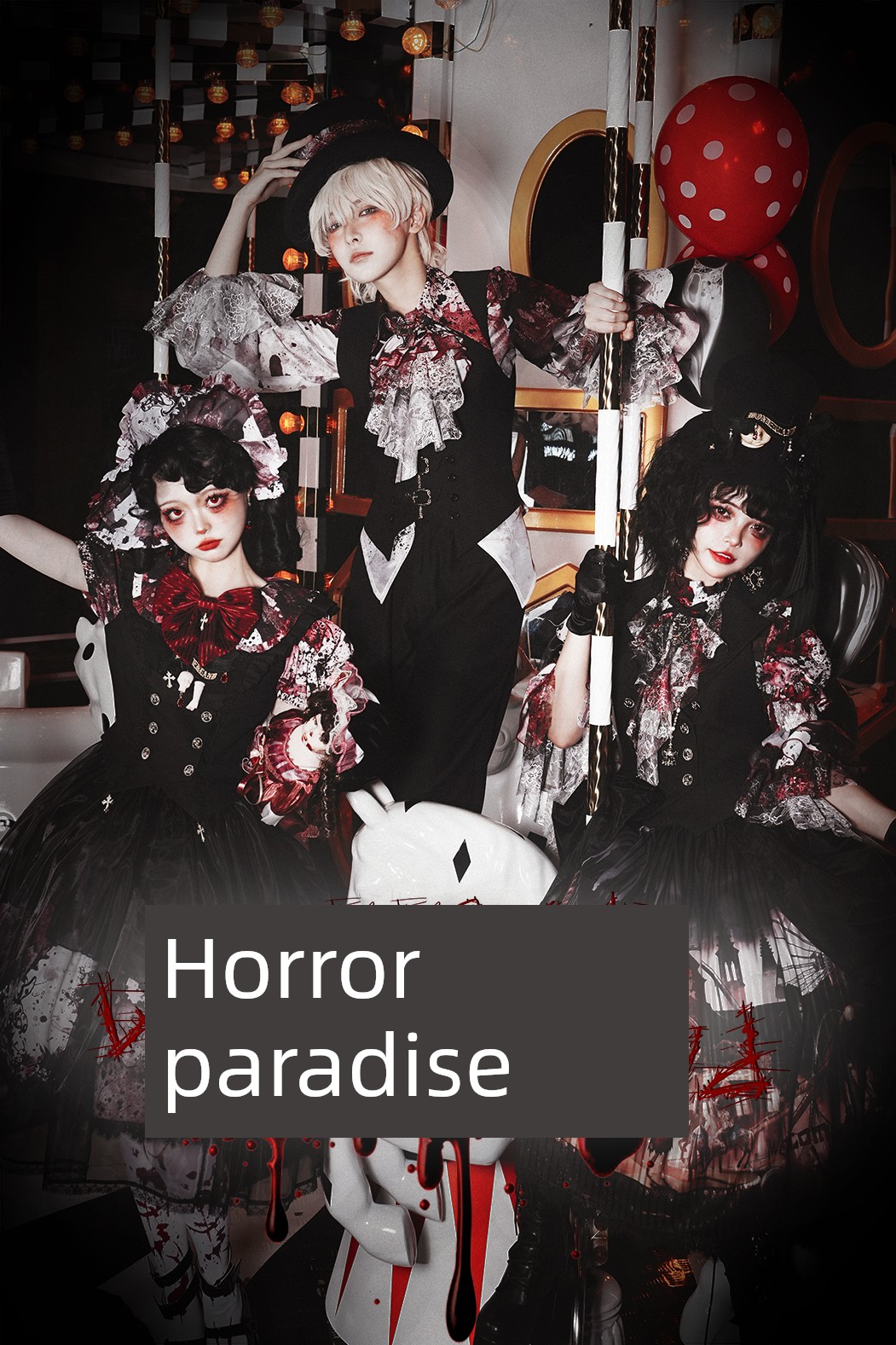 [Waiting for restock] + Horror Amusement Park + Printed Bloodstained Pointed Collar Long Sleeve Shirt