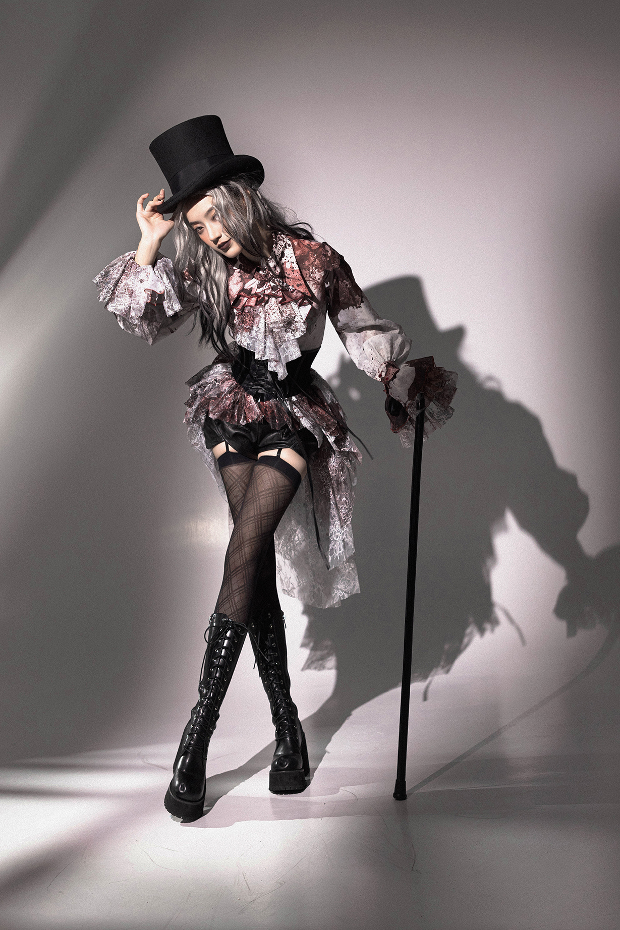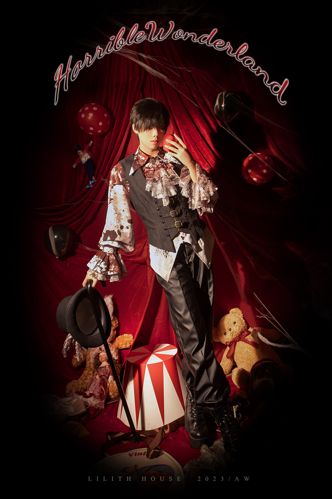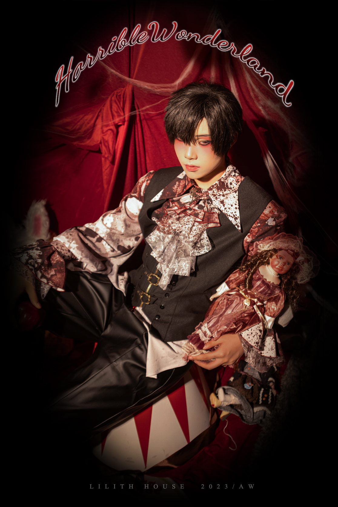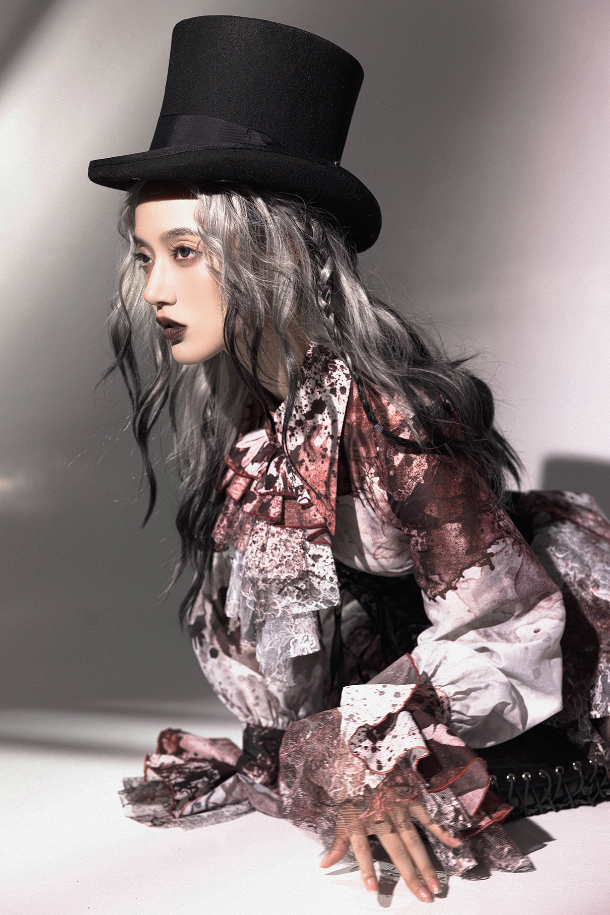 [Waiting for restock] + Horror Amusement Park + Printed Bloodstained Pointed Collar Long Sleeve Shirt