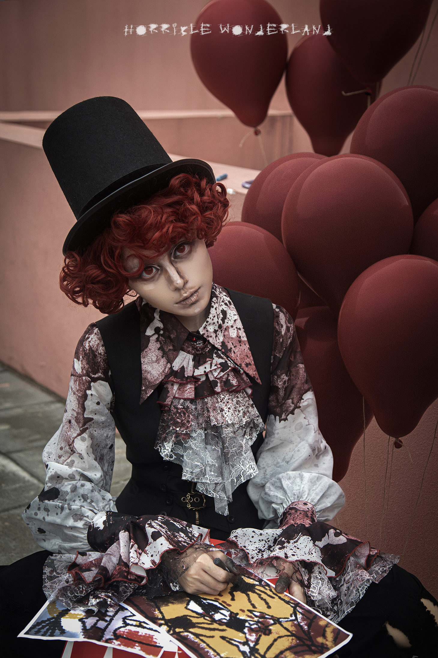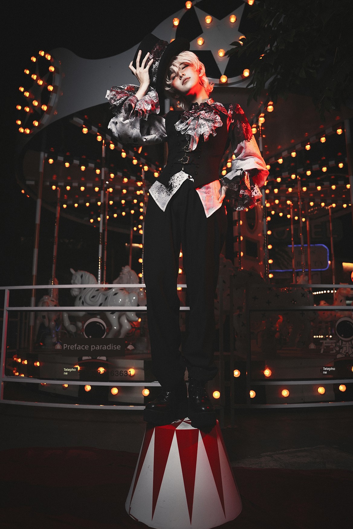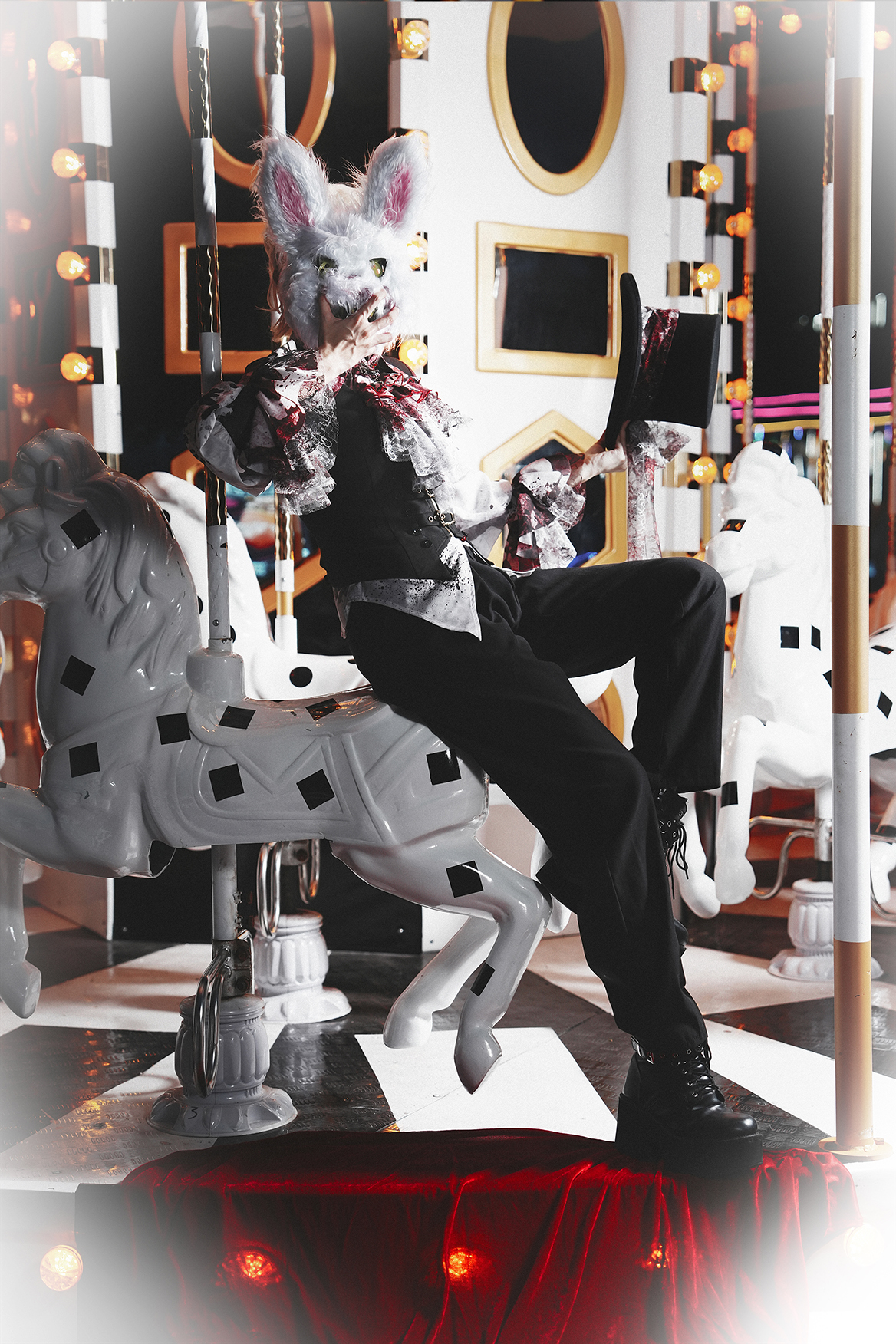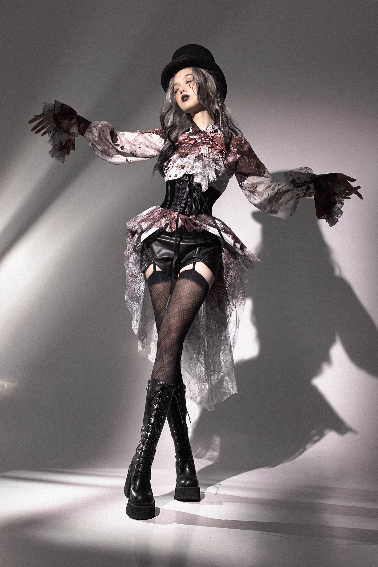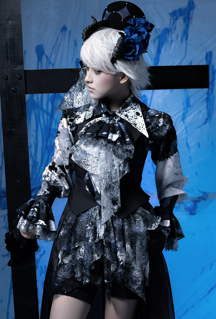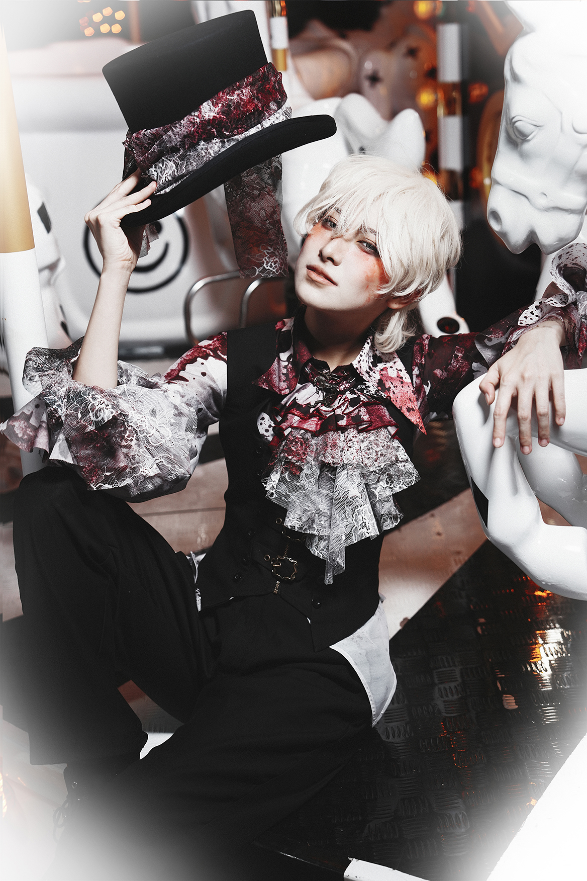 [Waiting for restock] + Horror Amusement Park + Printed Bloodstained Pointed Collar Long Sleeve Shirt