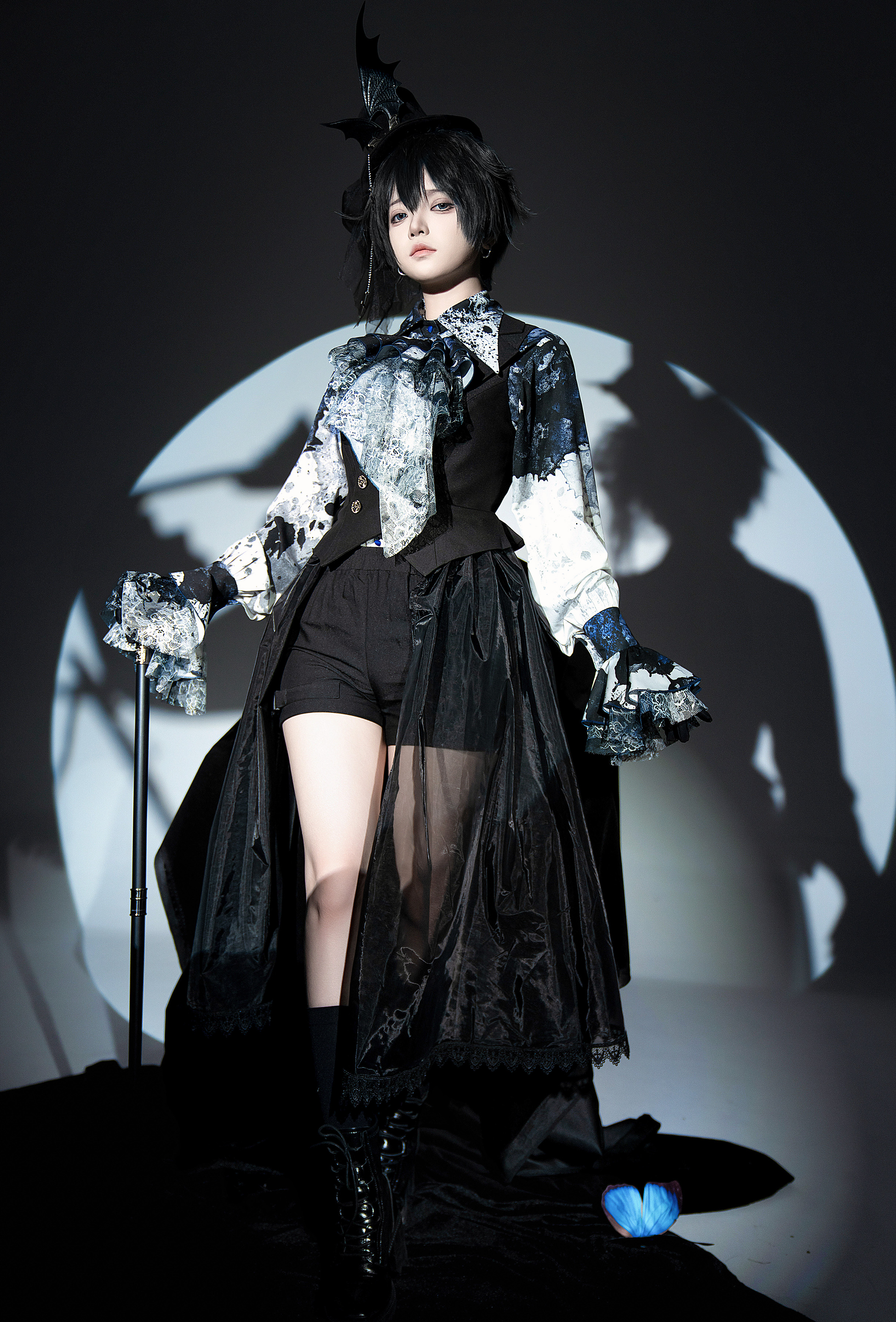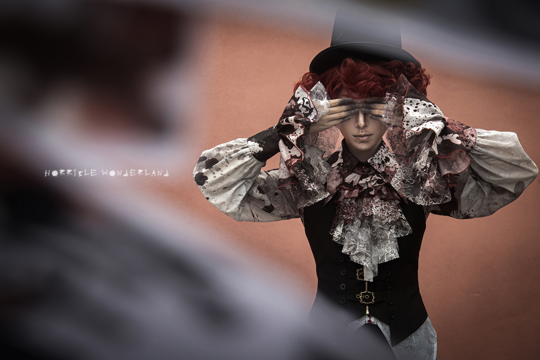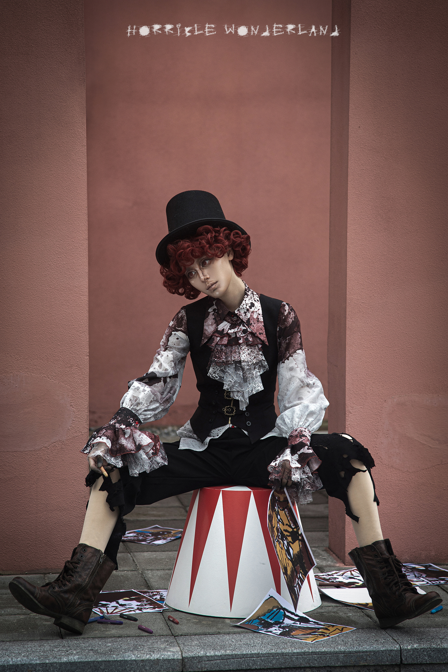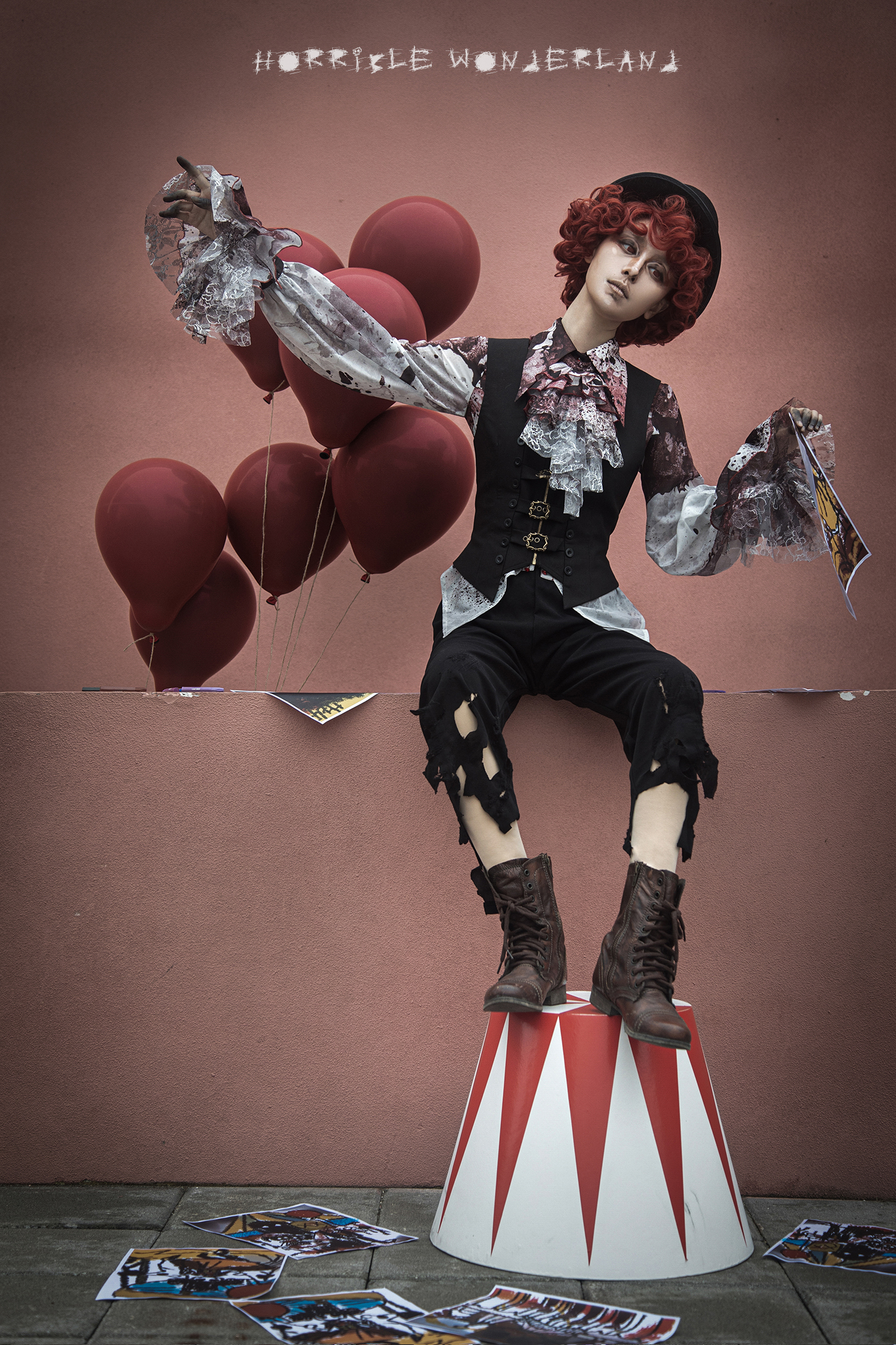 [Waiting for restock] + Horror Amusement Park + Printed Bloodstained Pointed Collar Long Sleeve Shirt