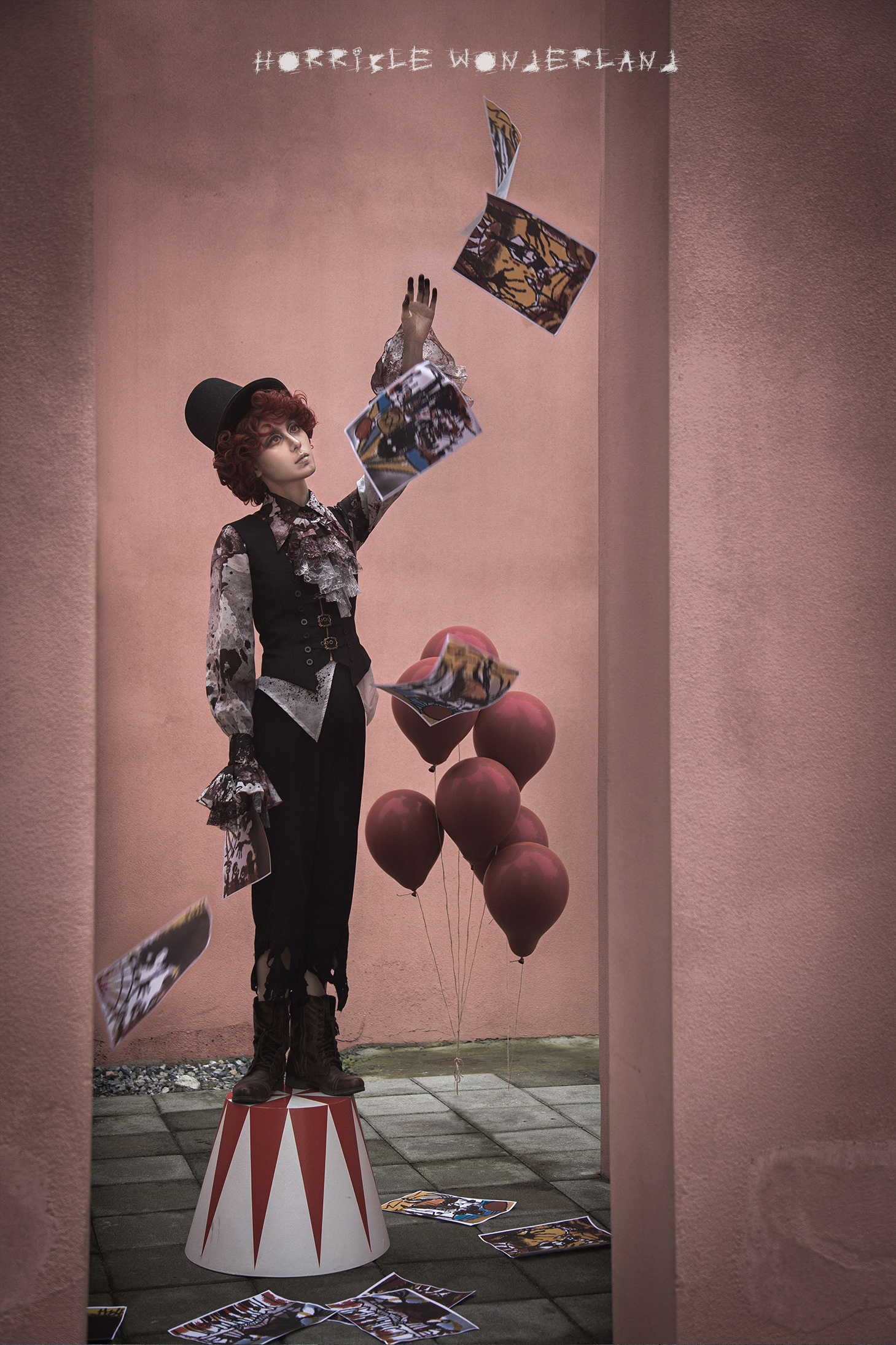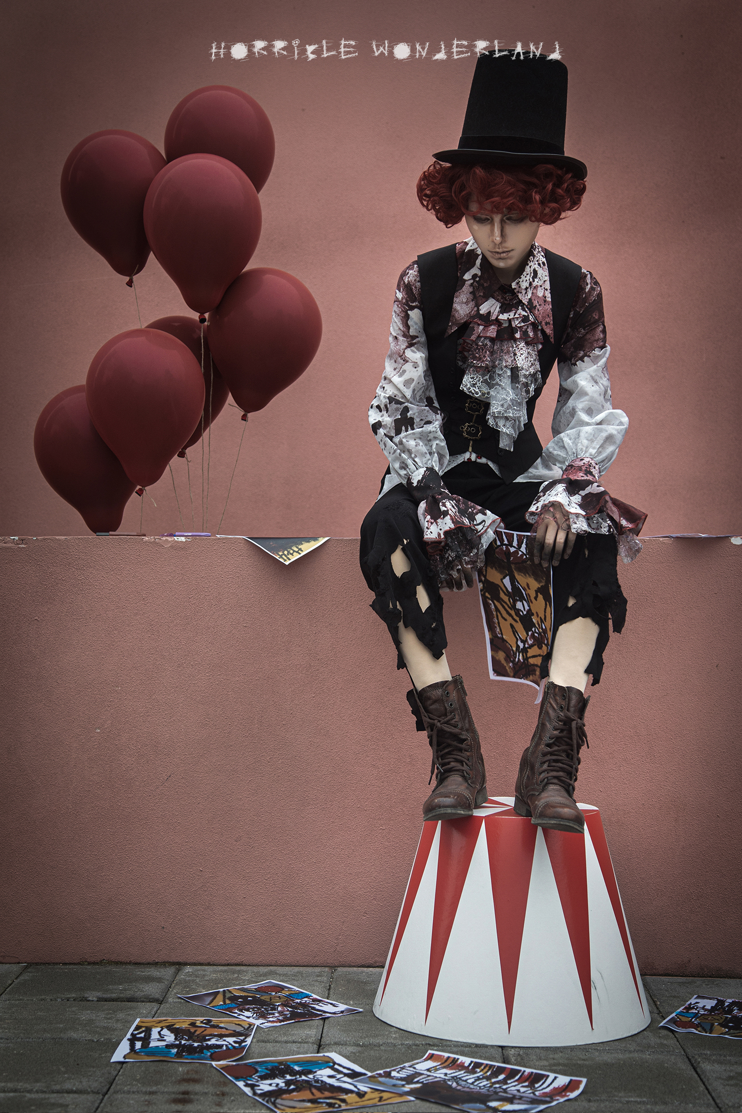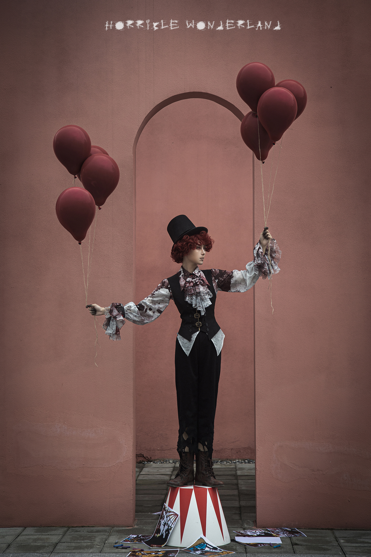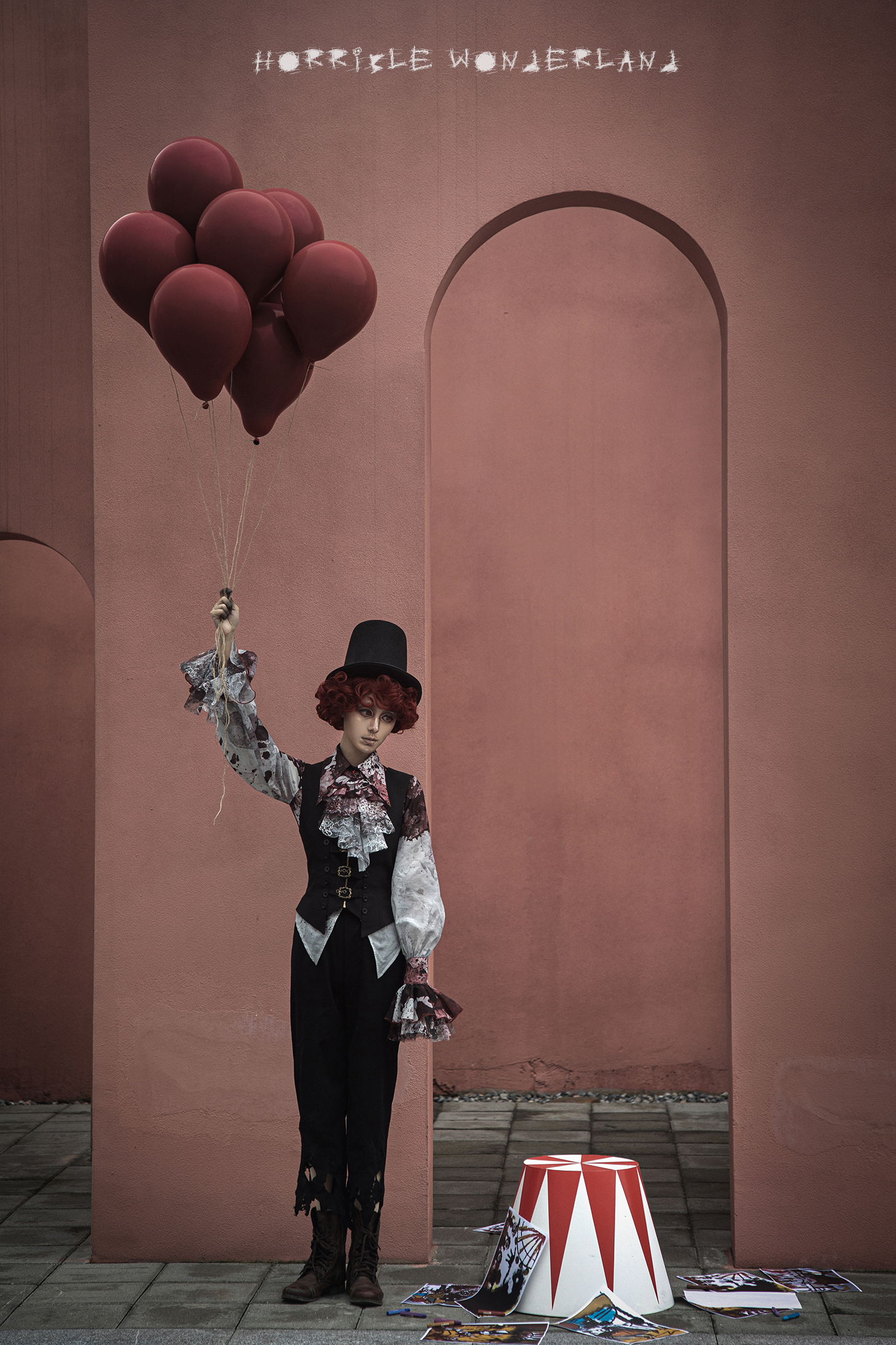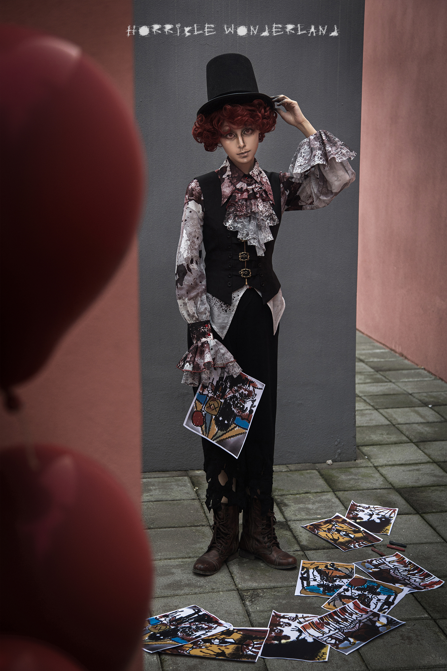 [Waiting for restock] + Horror Amusement Park + Printed Bloodstained Pointed Collar Long Sleeve Shirt