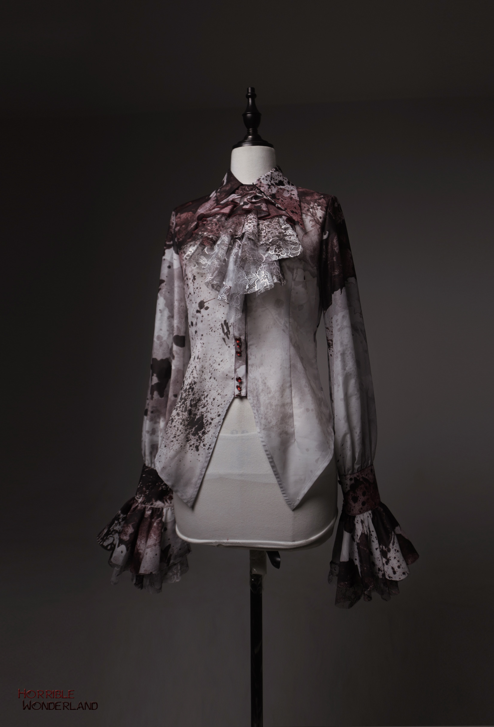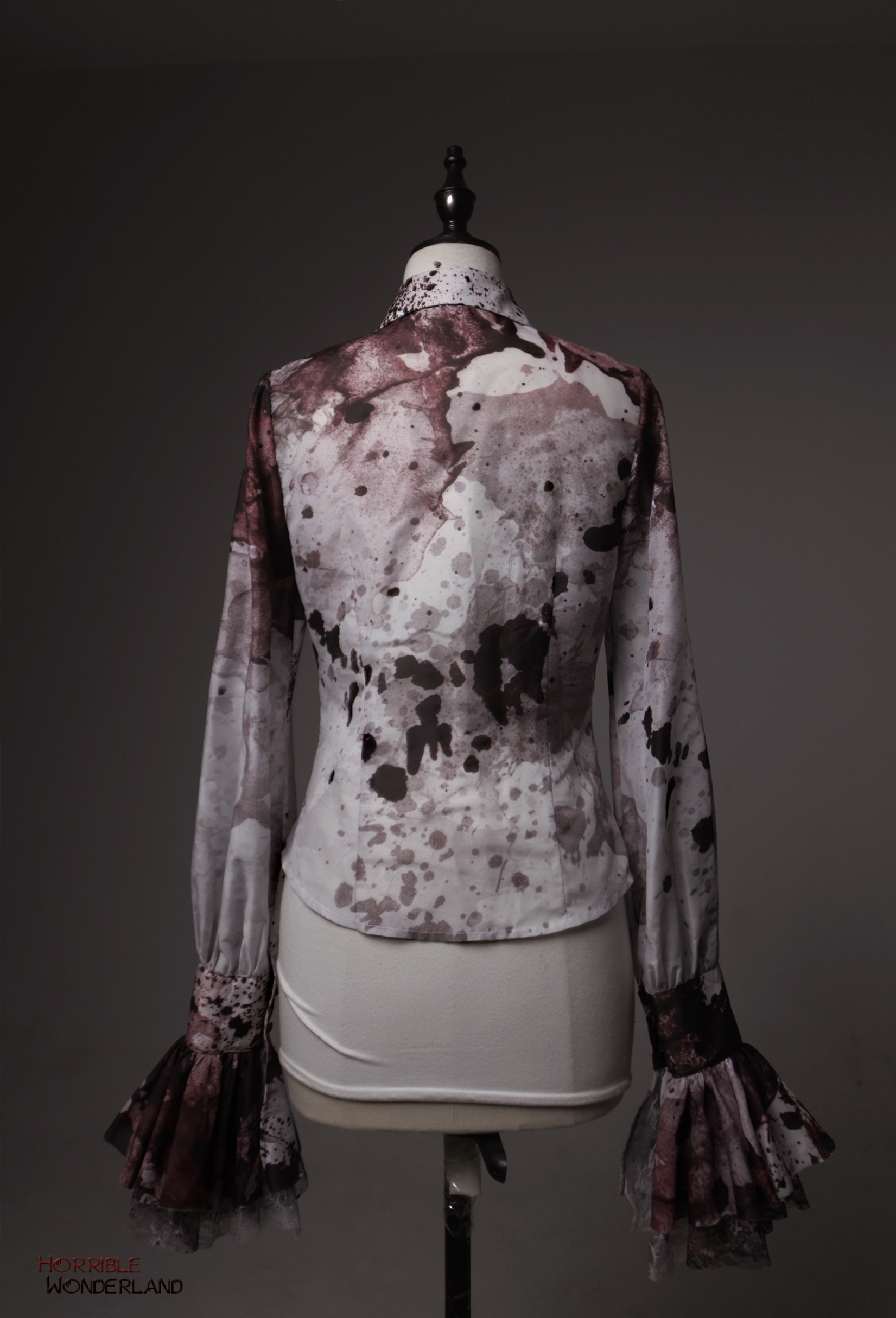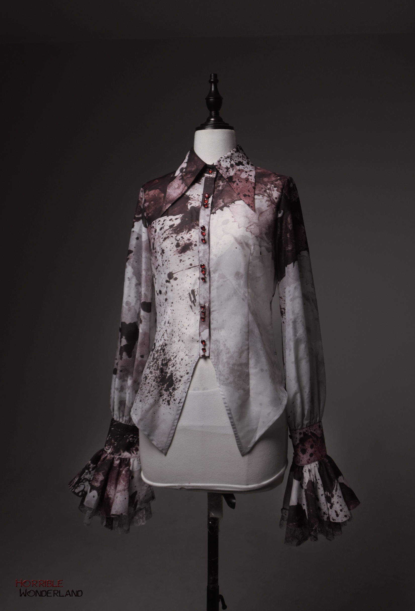 【等待补货】+ 恐怖游乐园 + 印花血渍尖领长袖衬衣 [Original Page Link]