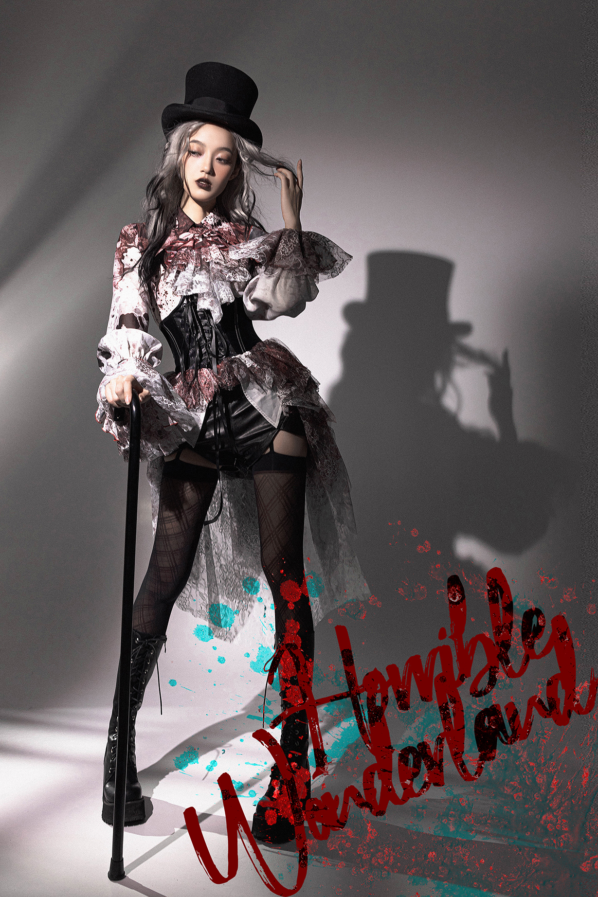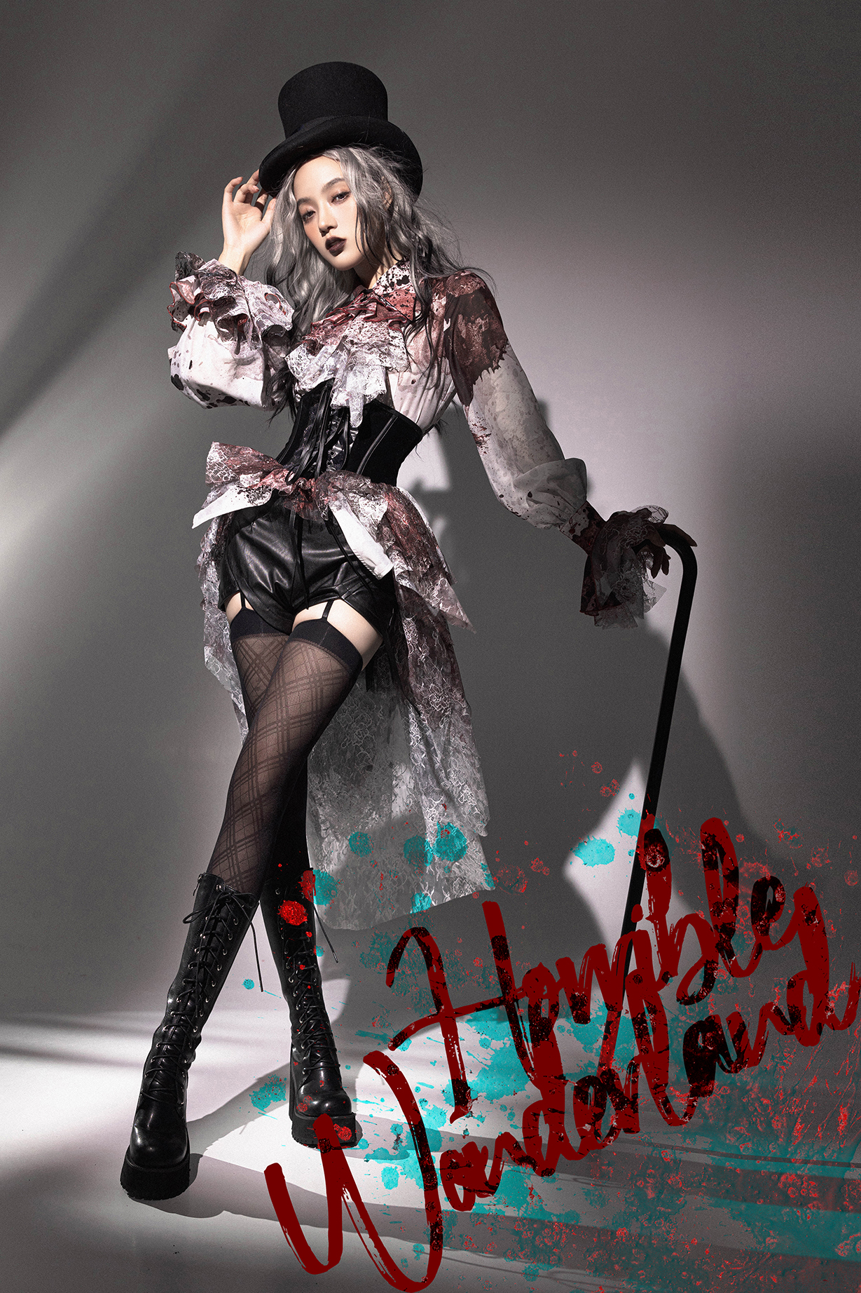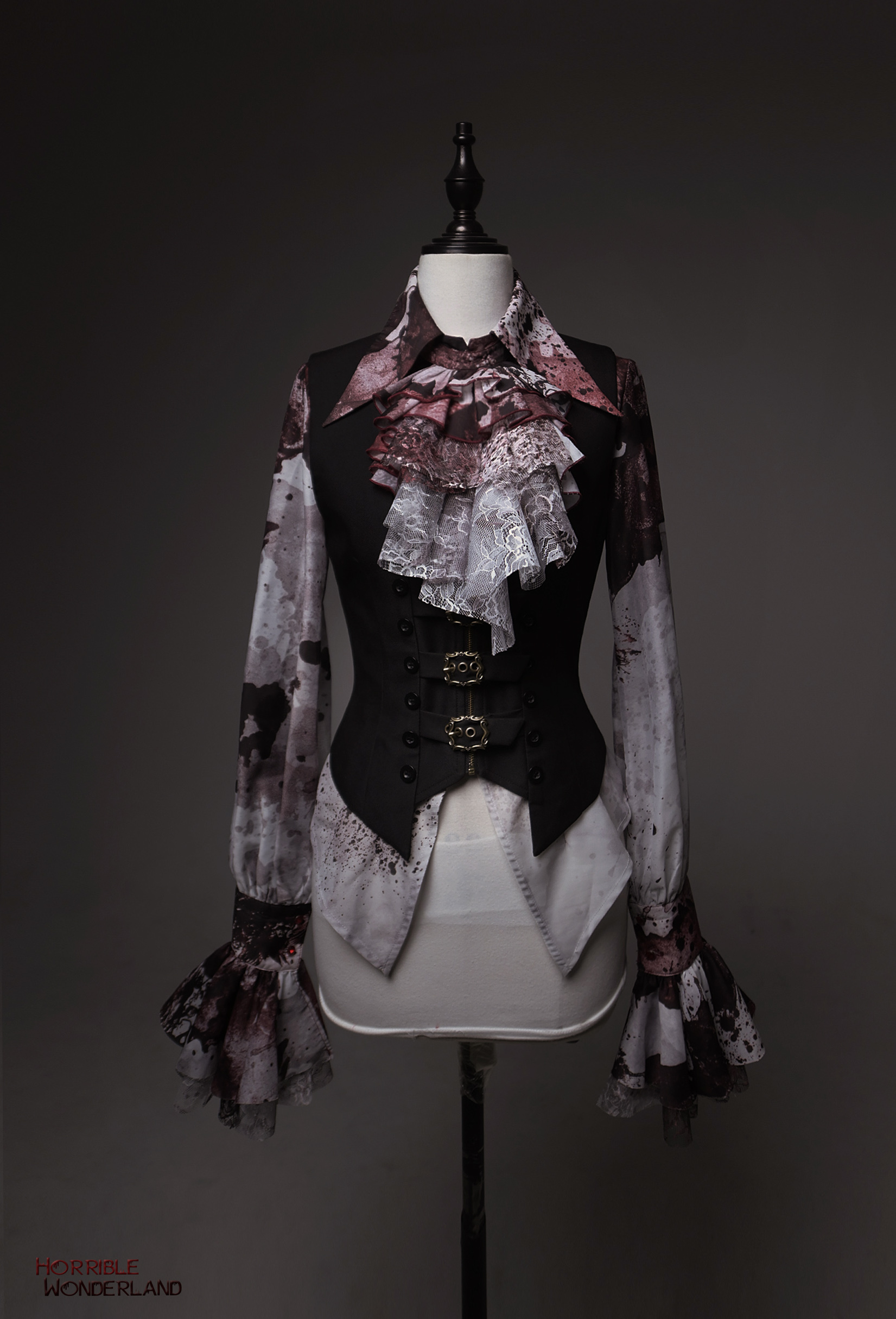 【等待补货】+ 恐怖游乐园 + 印花血渍尖领长袖衬衣 [Original Page Link]