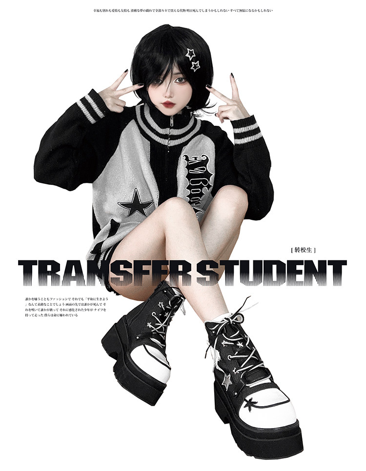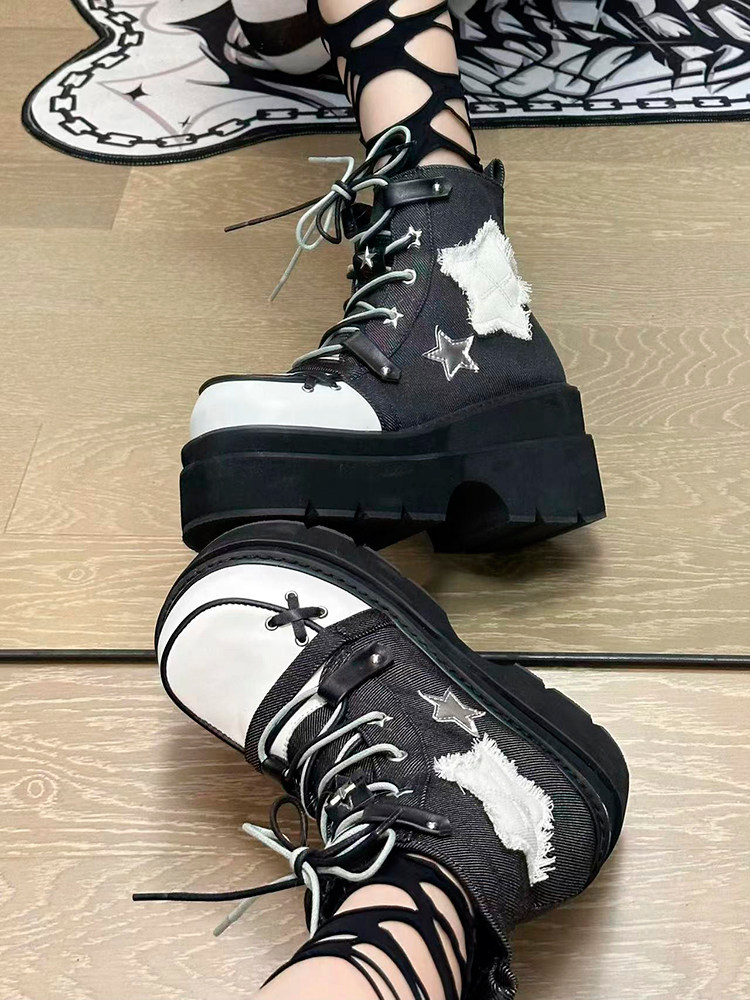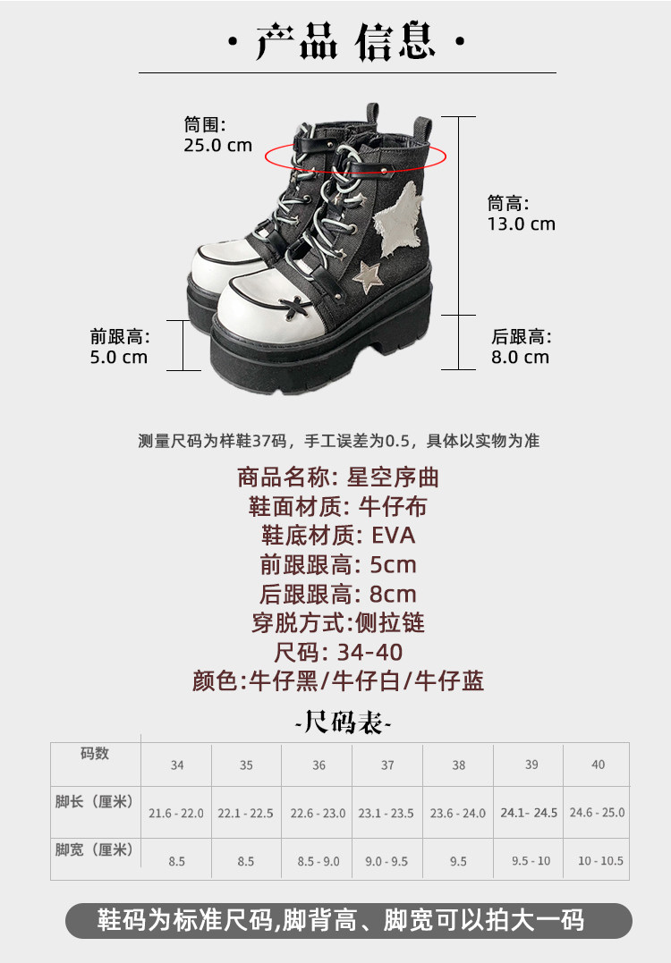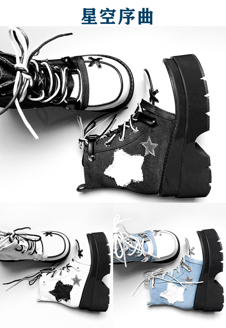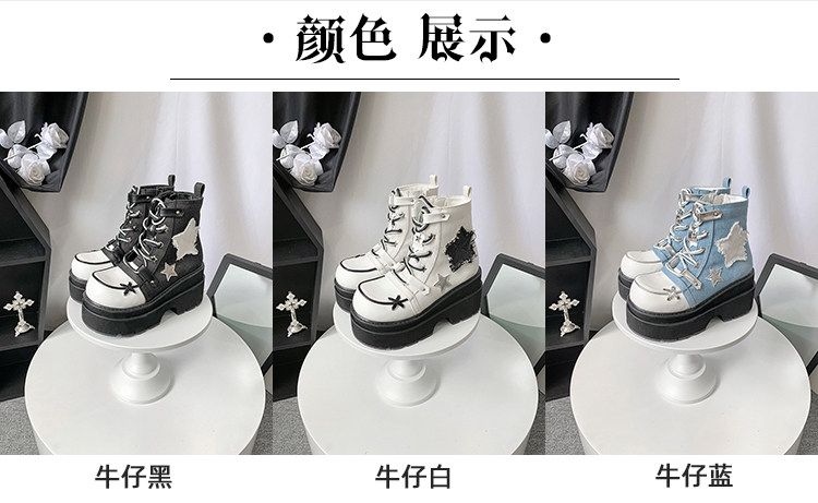 转校生 星空序曲 原创朋克厚底牛仔短靴y2k圆头马丁靴亚文化短靴 [Original Page Link]