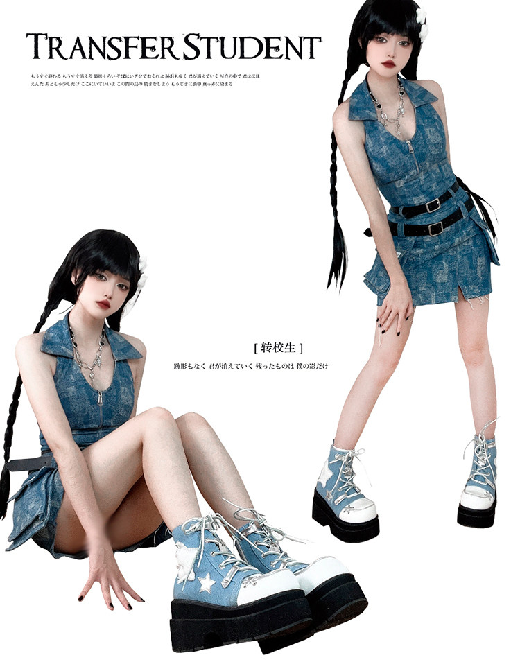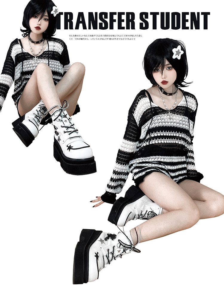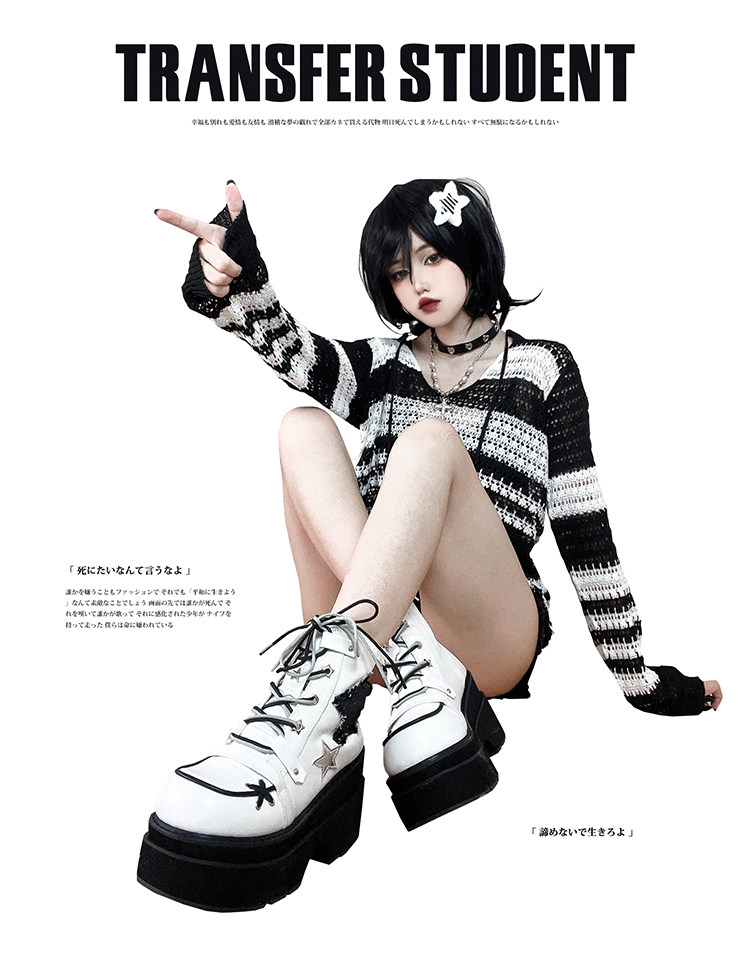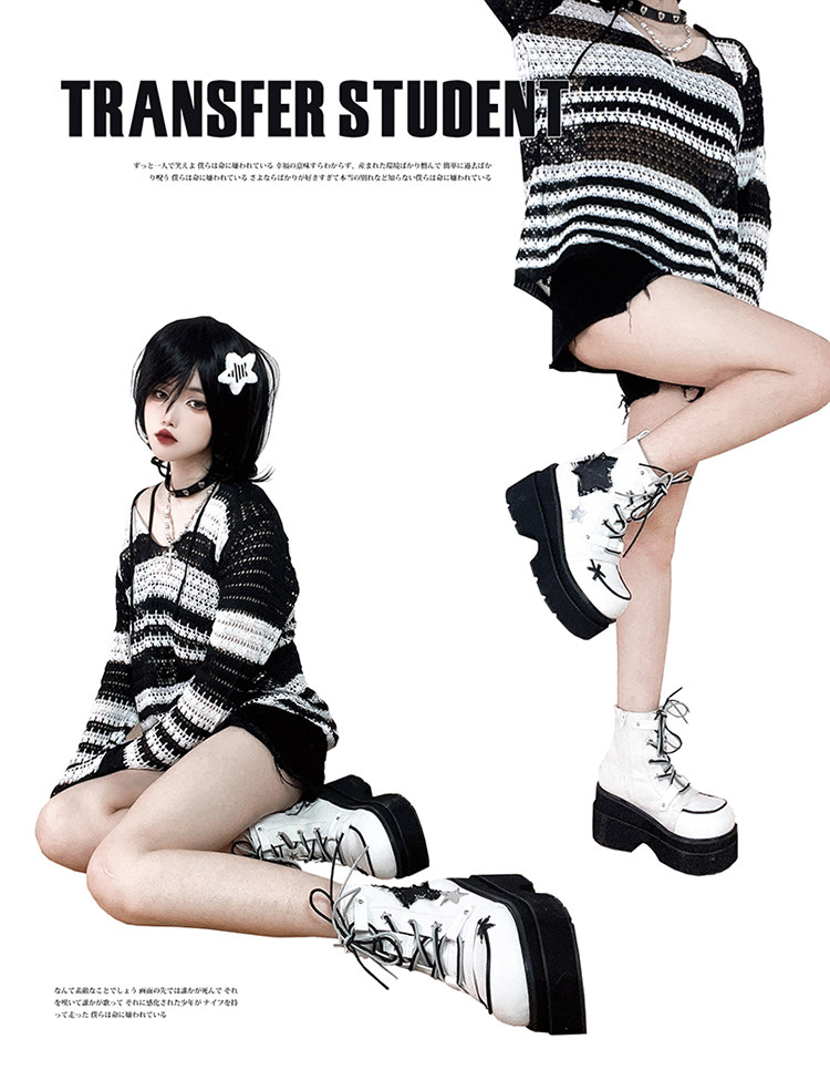 转校生 星空序曲 原创朋克厚底牛仔短靴y2k圆头马丁靴亚文化短靴 [Original Page Link]