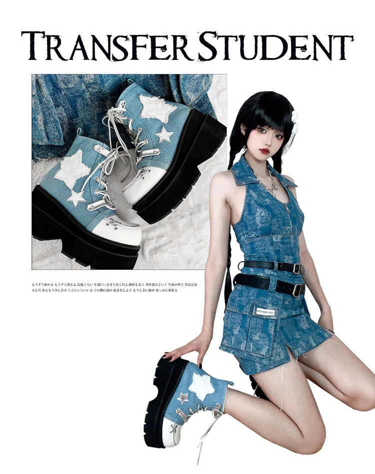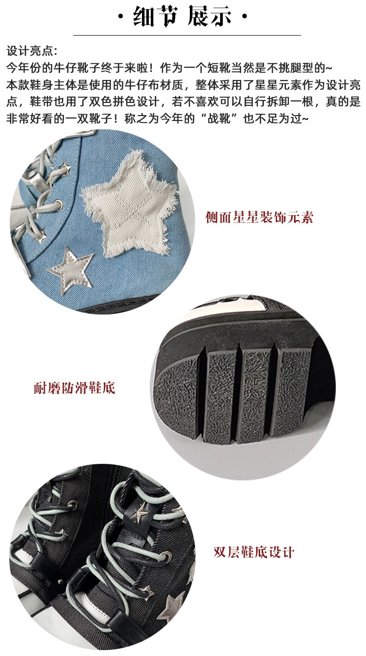 Transfer student starry sky overture original punk thick-soled denim short boots y2k round toe Martin boots subculture short boots