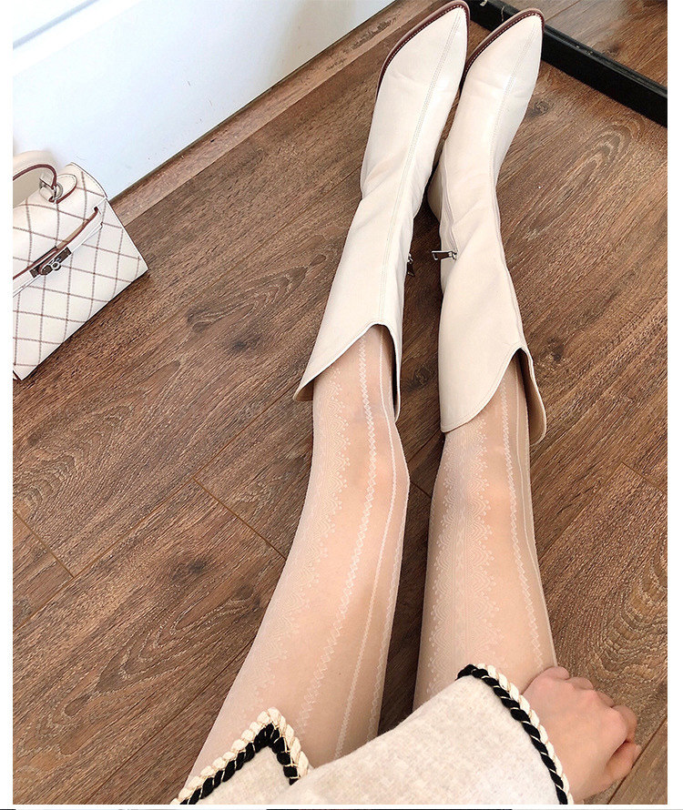 Nice: Lace striped stockings, milky white, Japanese sweet style, JK style, thin, anti-snag, pure and sexy Lolita pantyhose.