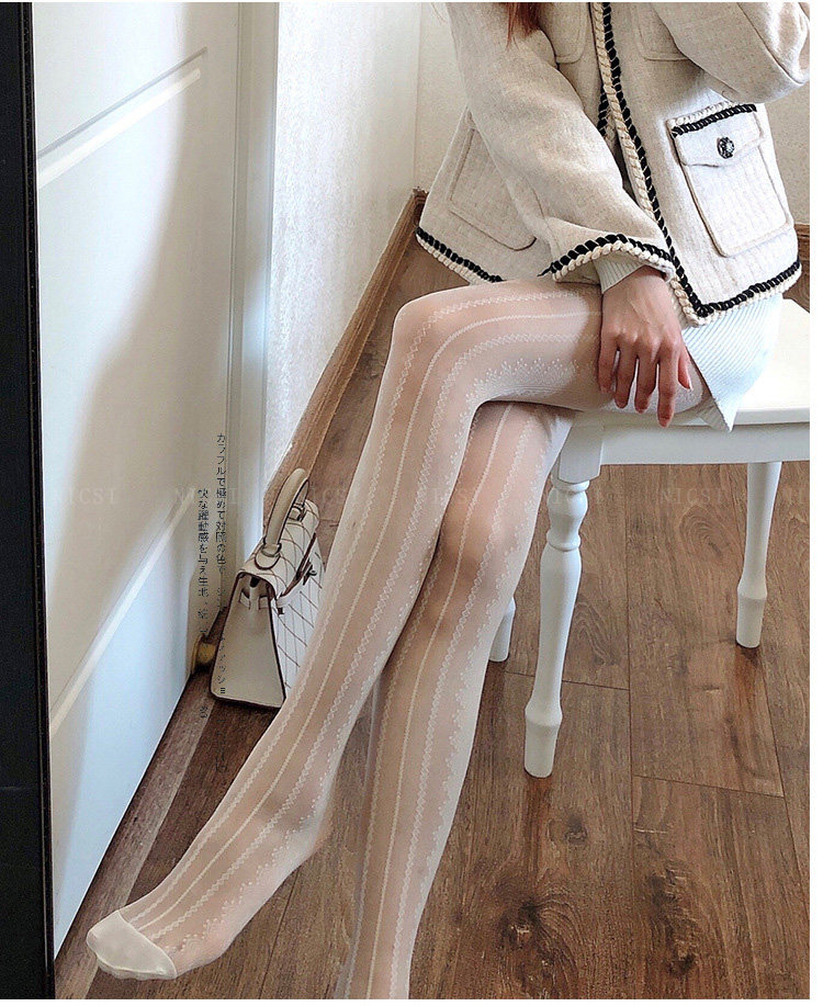 奈丝:蕾丝竖条纹丝袜奶白色日系甜美jk女薄防勾纯欲lolita裤袜 [Original Page Link]