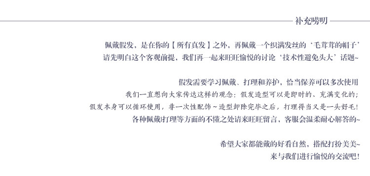 关于佩戴、打理、造型等任何不懂的问题请旺旺留言,我们会悉心回复