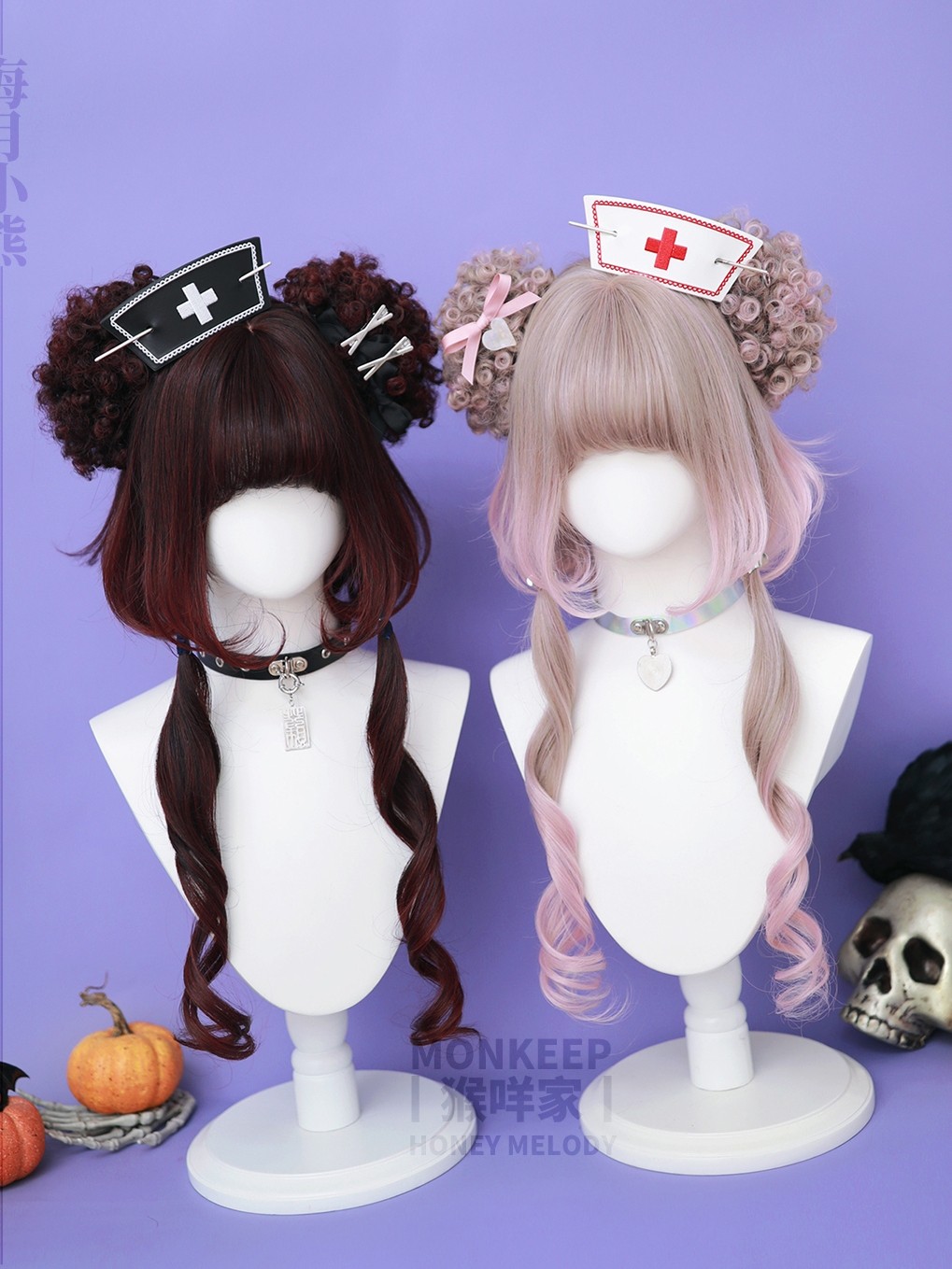 现货MONKEEP猴咩家 海月小熊层次梨花水母头卷毛团子虎夹原创假发 [Original Page Link]