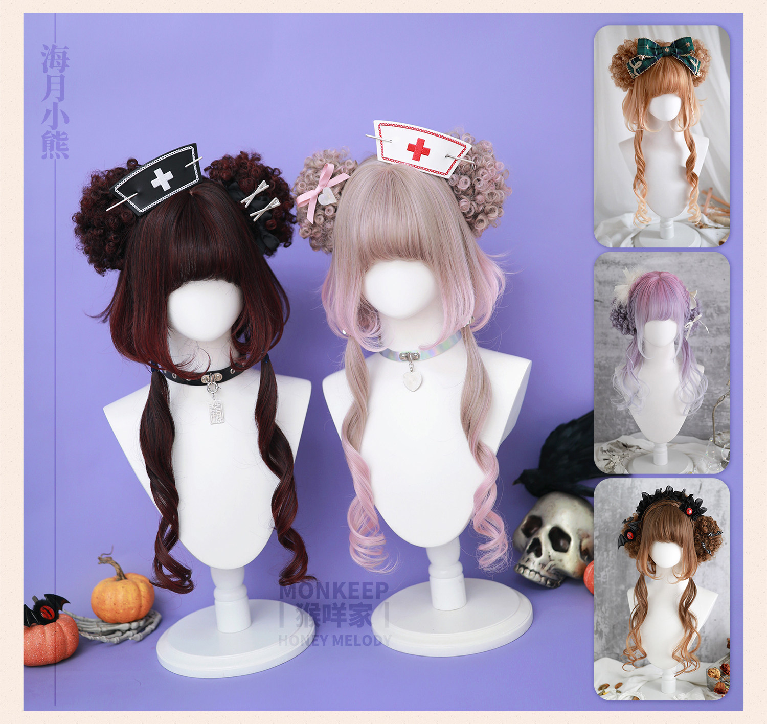 In stock MONKEEP Monkey Family Haiyue Little Bear Layered Pear Blossom Jellyfish Head Curly Hair Dumpling Tiger Clip Original Wig