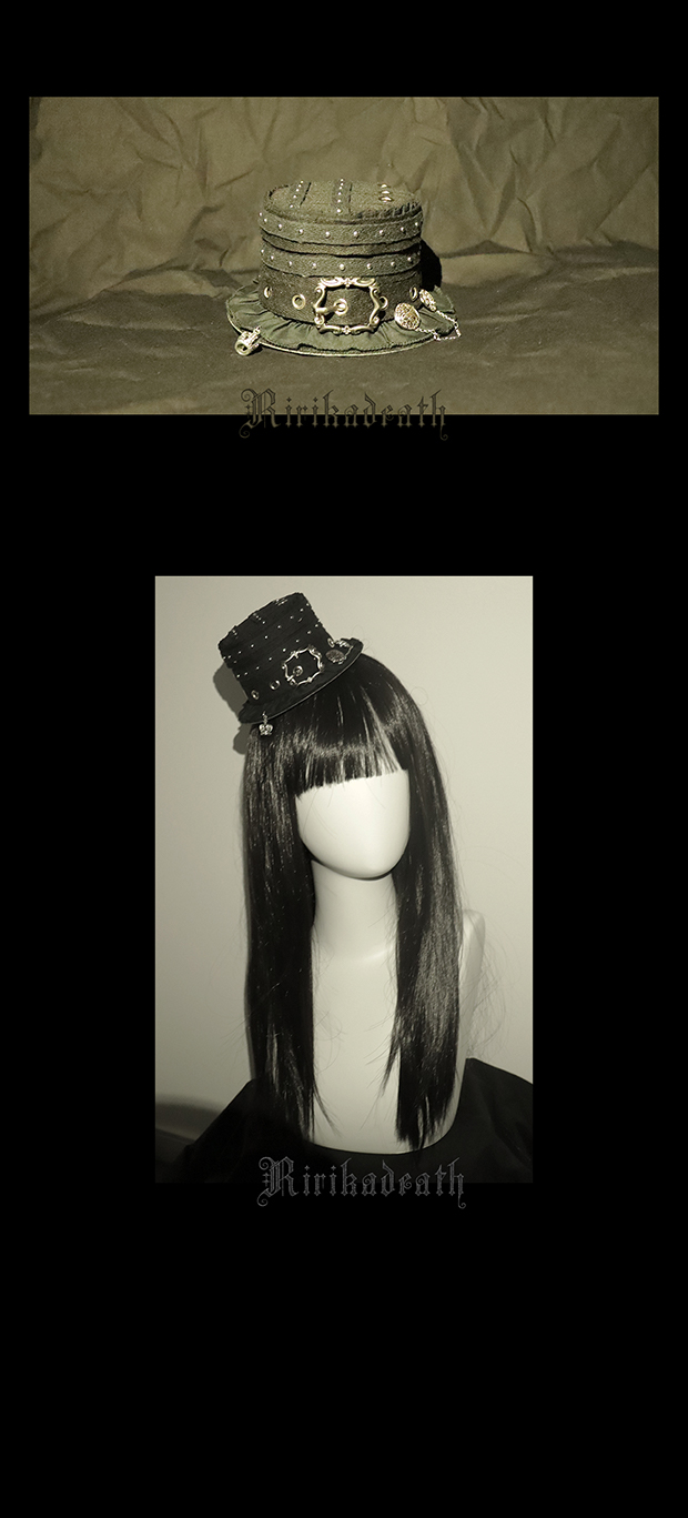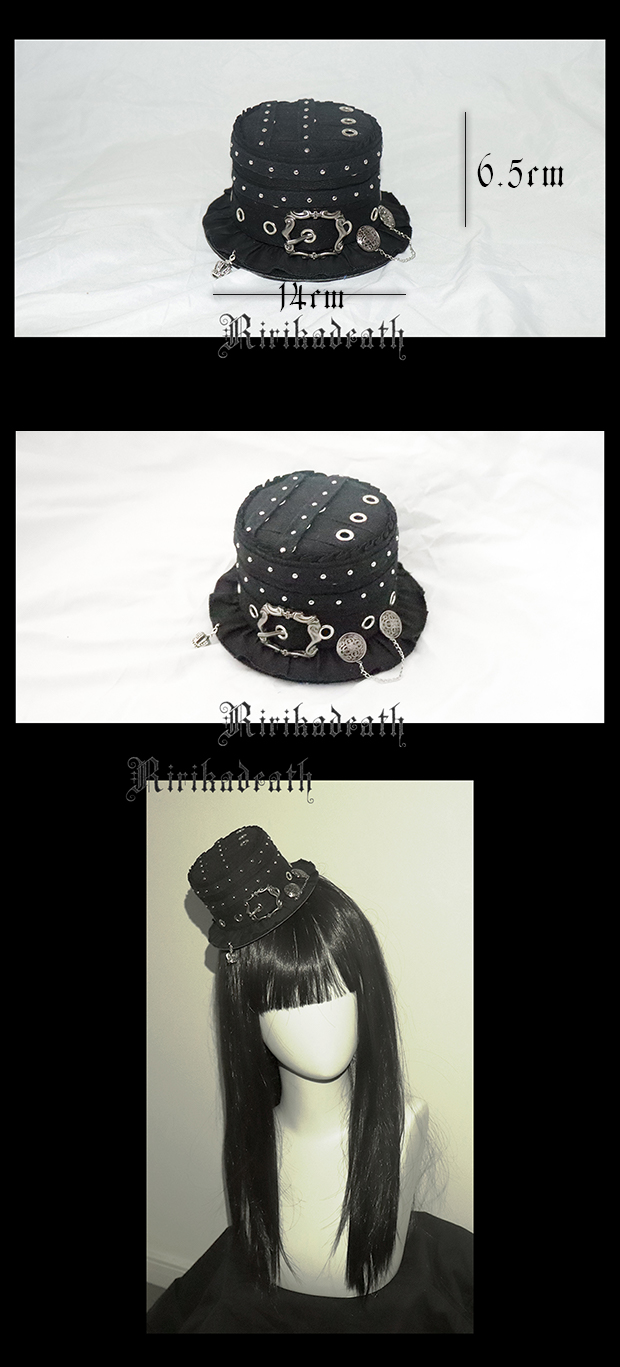 *ririkadeath*原创蕾丝帽子发夹43黑色扣眼纽扣链条朋克lolita [Original Page Link]
