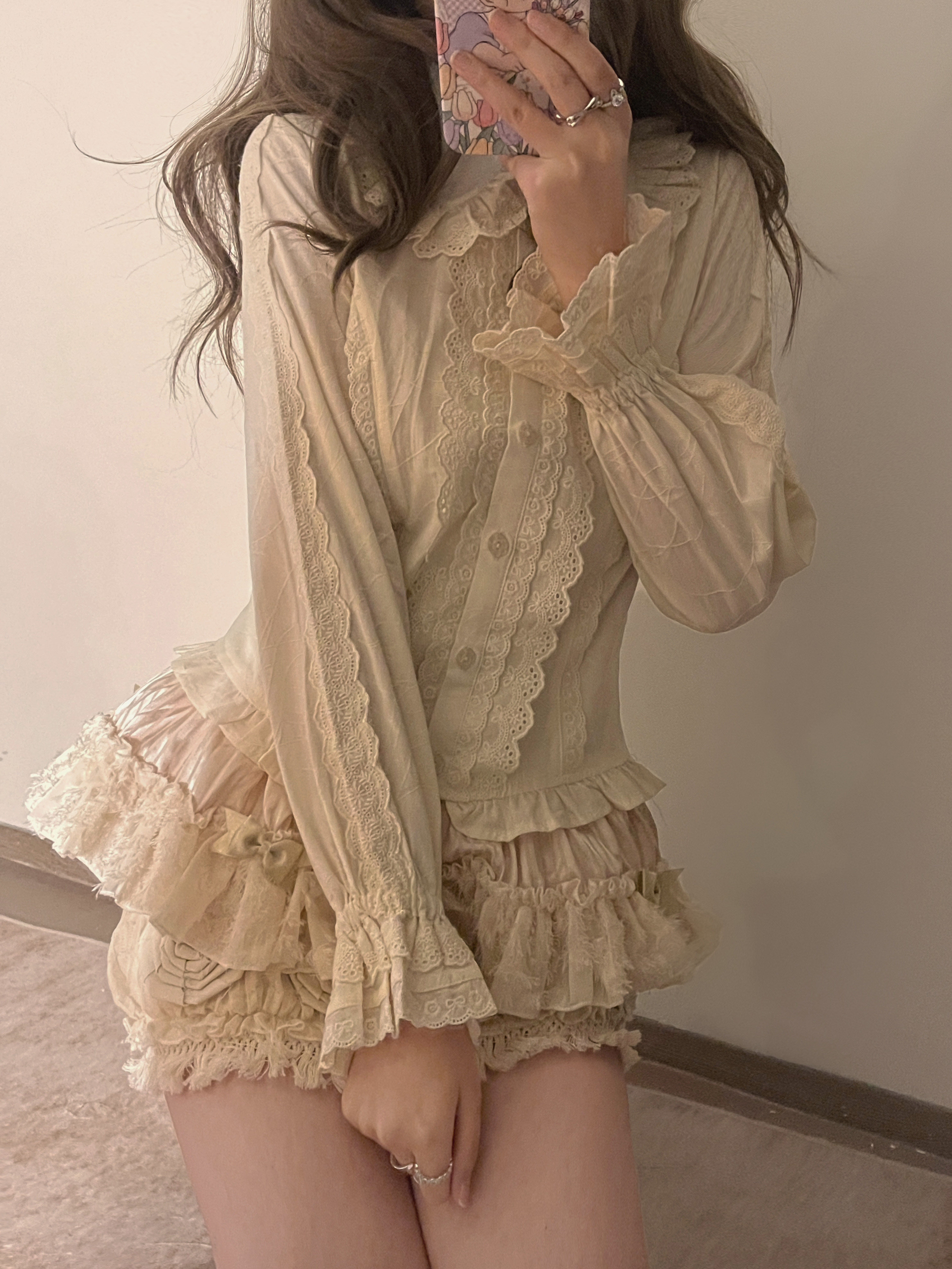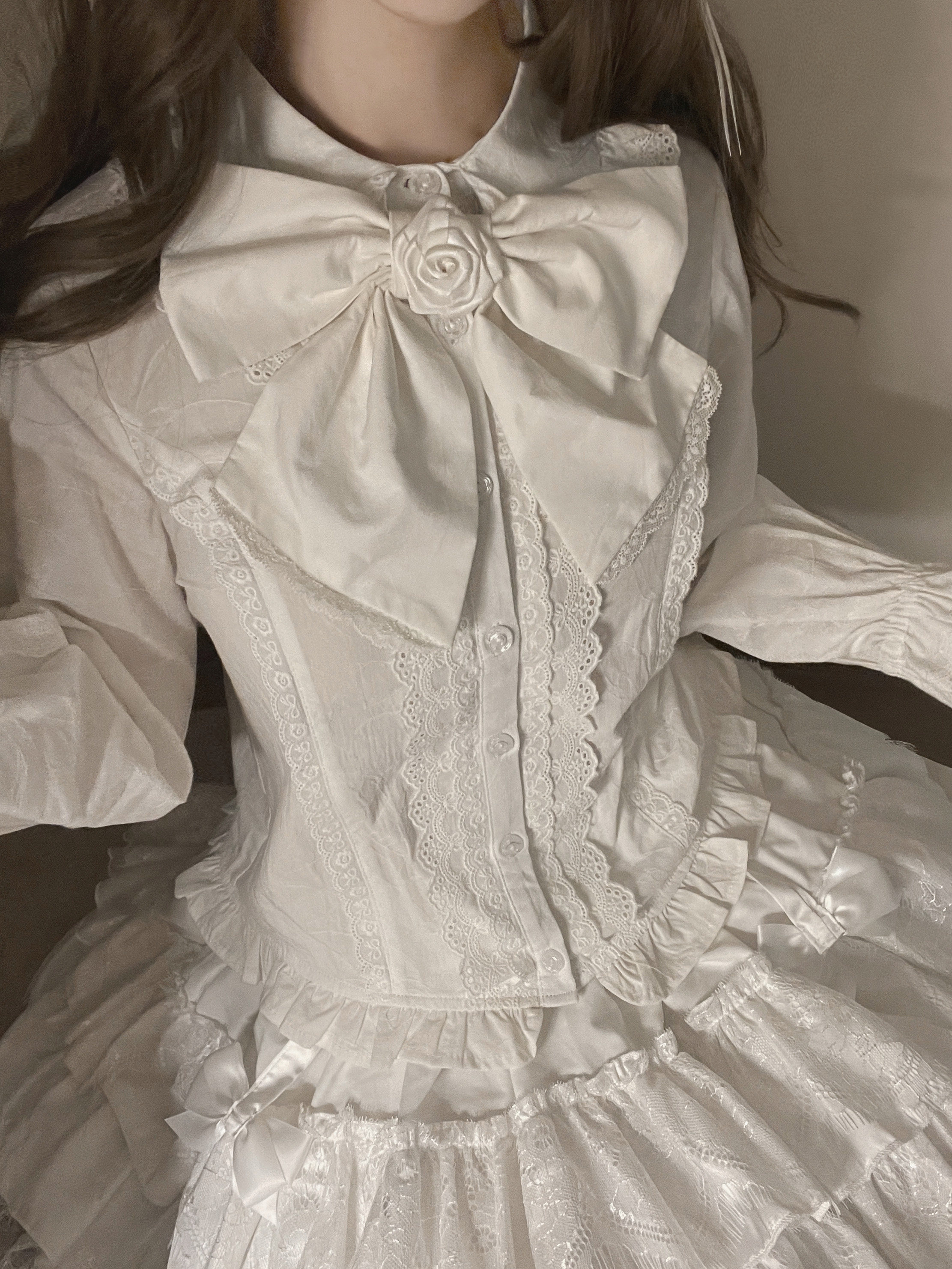 [莉莉]Lolita内搭泡泡袖娃娃领中古蕾丝可爱软妹长袖罗莉塔衬衫 [Original Page Link]