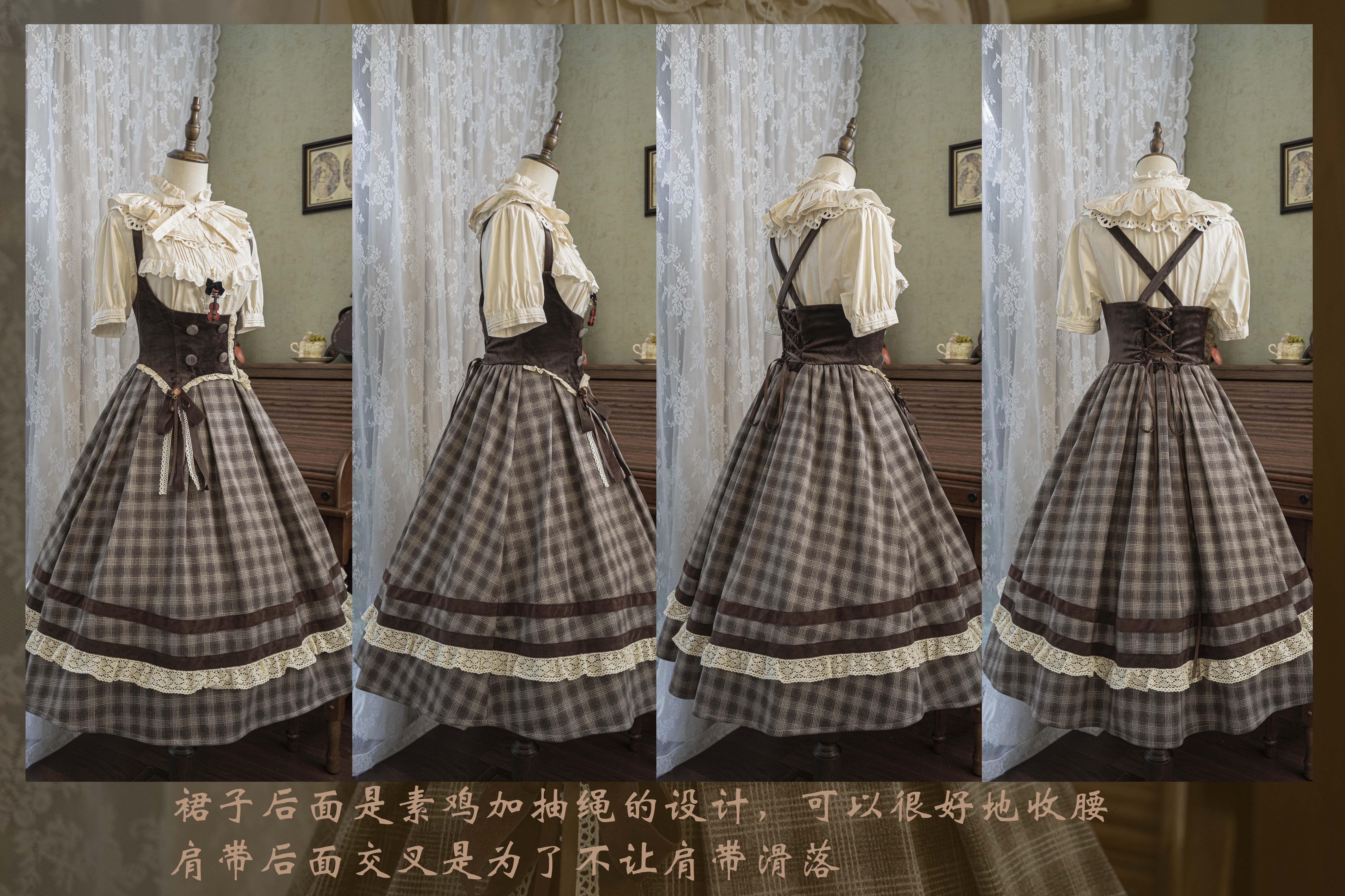 Chestnut Autumn White Tea Story: Autumn/Winter Woolen Lolita Dress, Plaid Suspender Dress