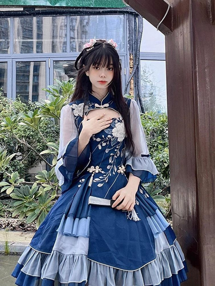 Extra Large Size 150kg Plus Size Chinese Style Lolita Dress with Chinese Elements Women's Lolita Princess Dress Autumn 2