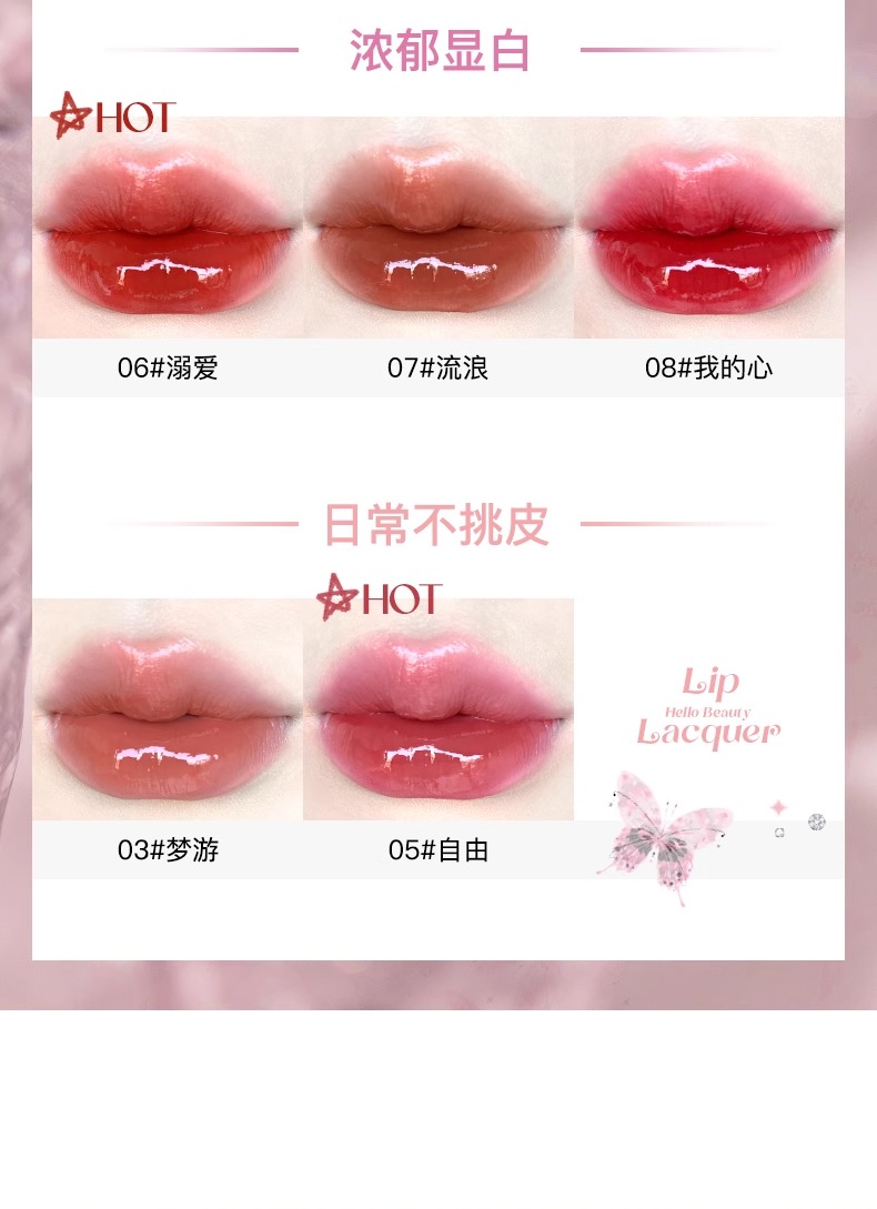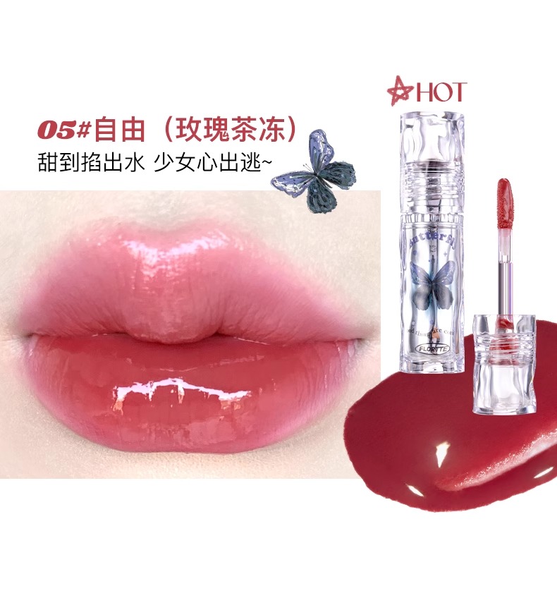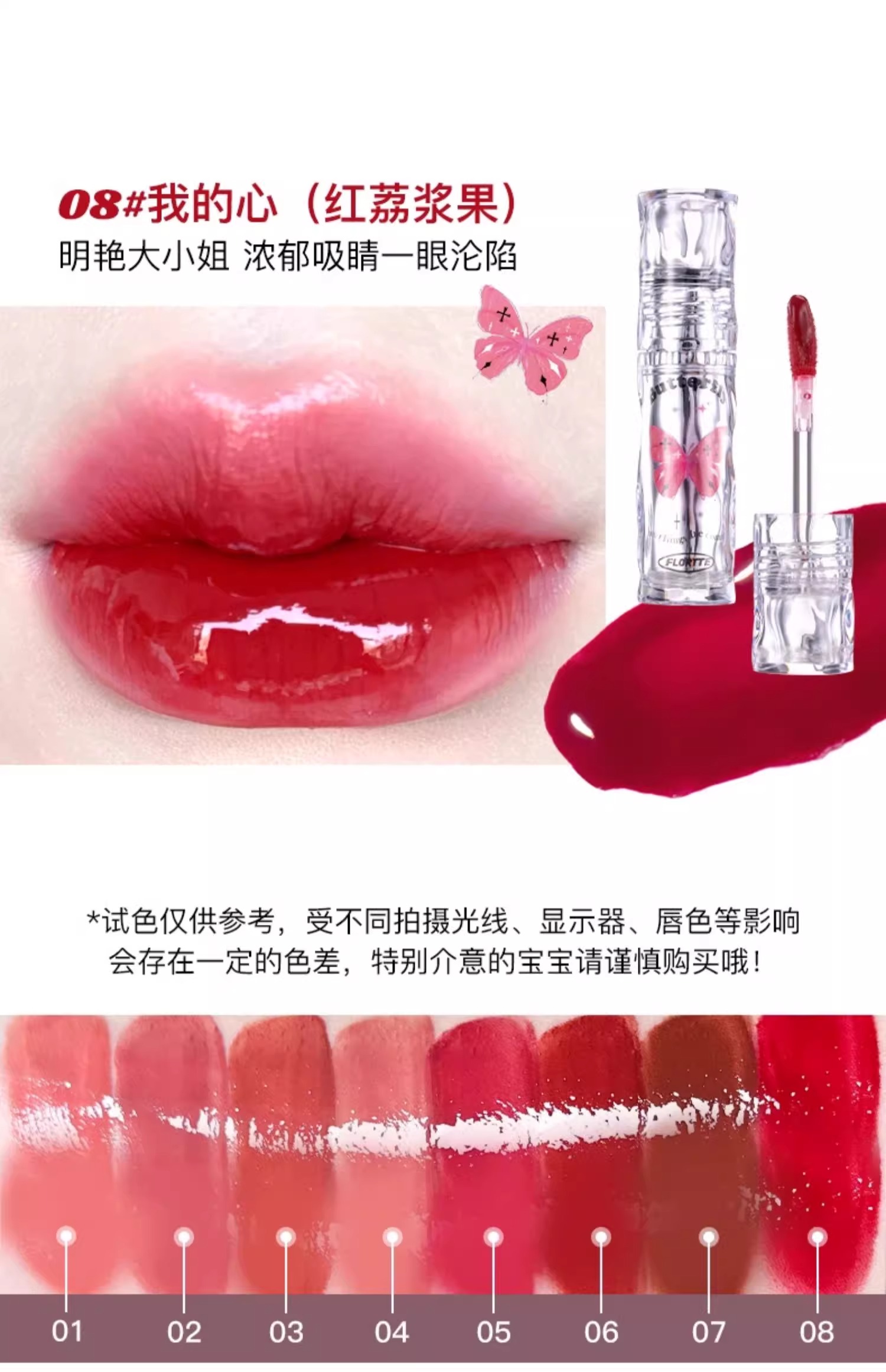Flortte Floria Lip Gloss Lipstick, Mirror-like Gloss, Smudge-proof Floria Lip Tint, Female Student Lipstick