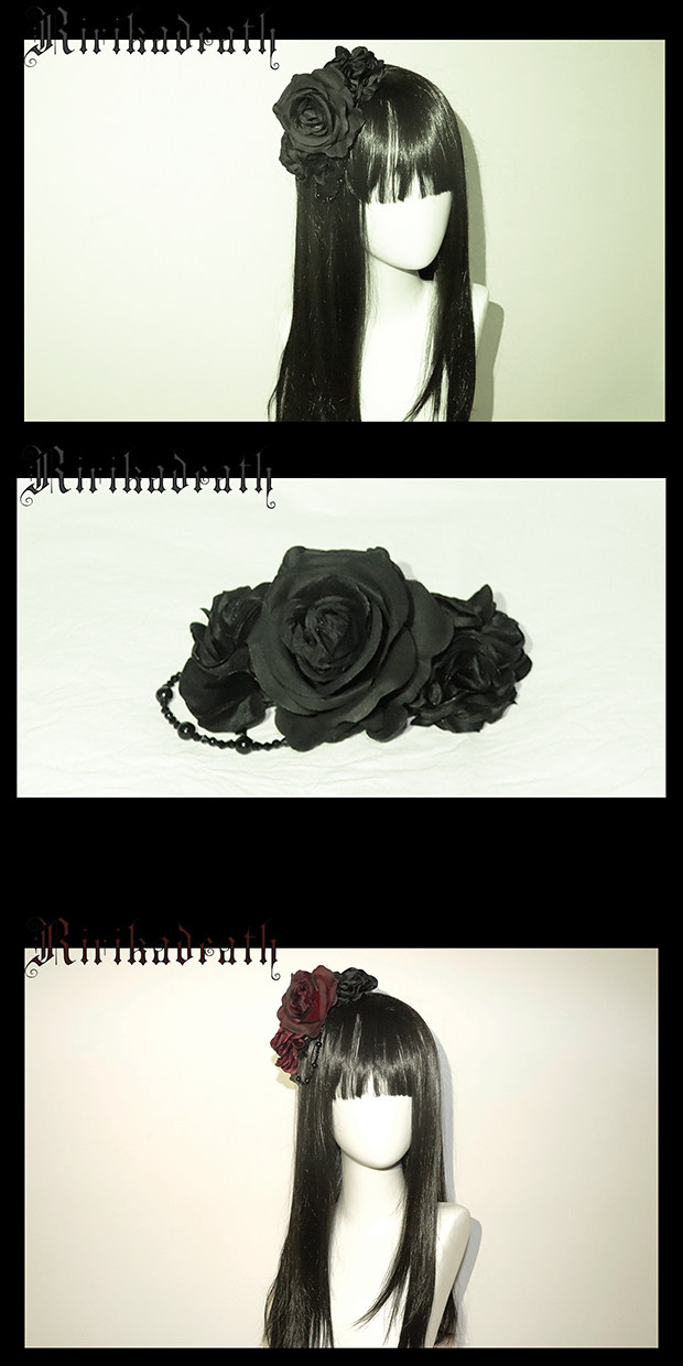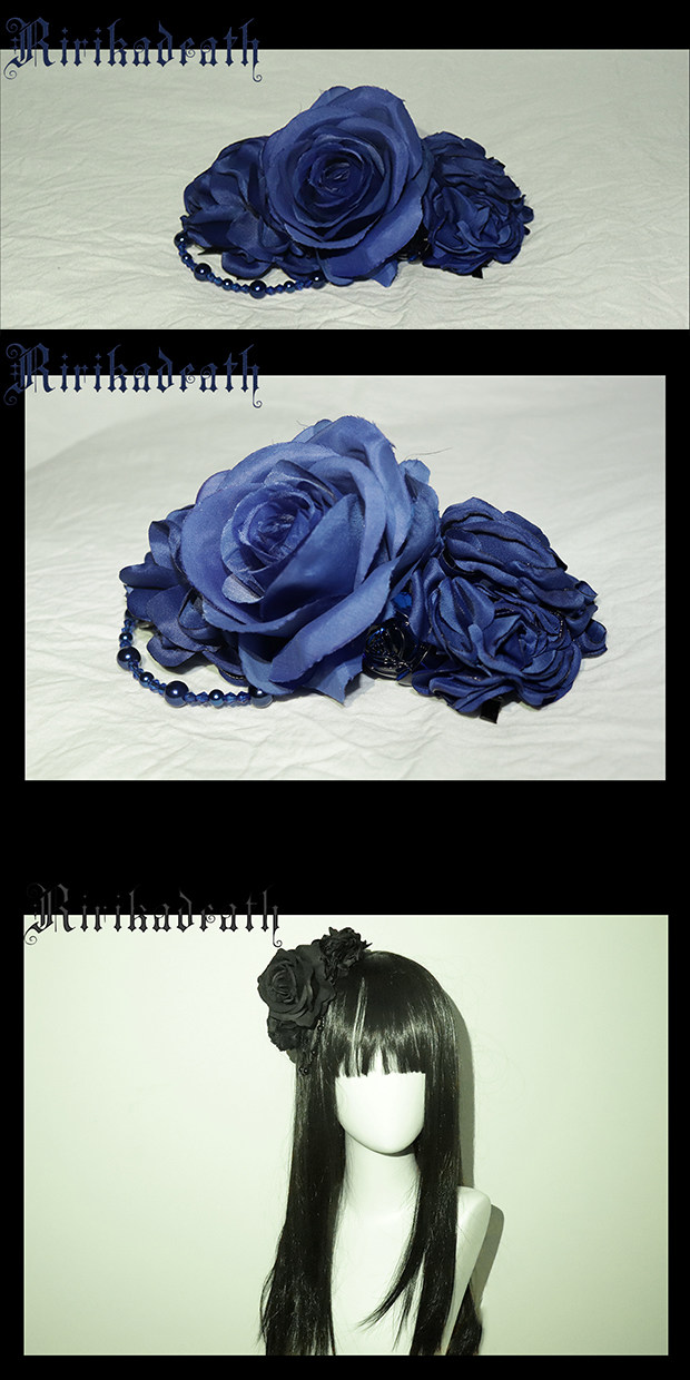 *ririkadeath*原创吊坠发夹10花朵串珠花丸黑色宝蓝色lolita发夹 [Original Page Link]