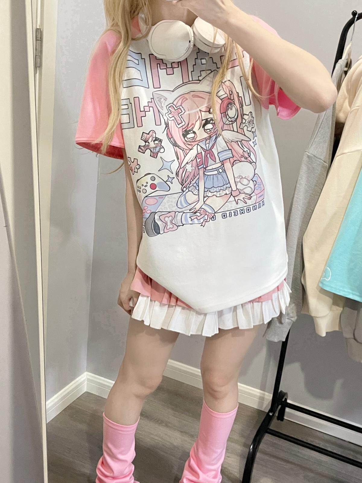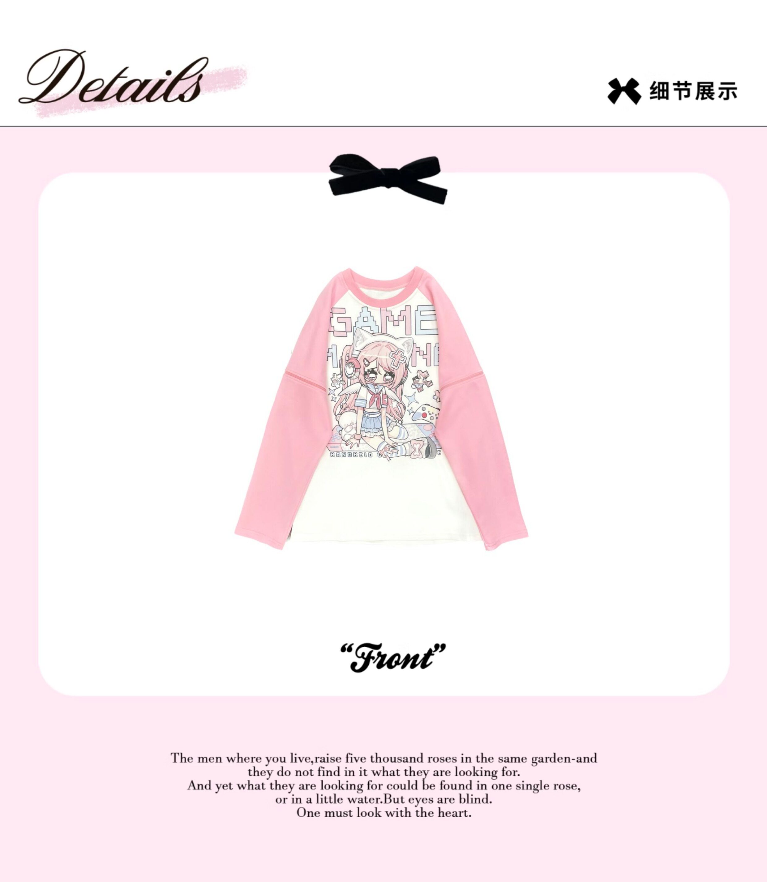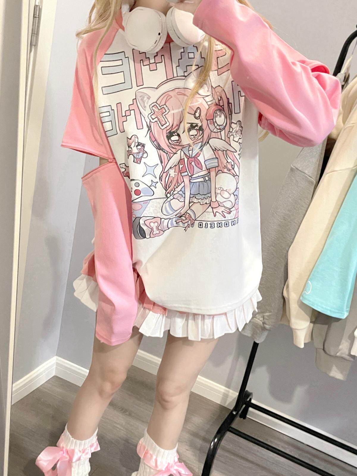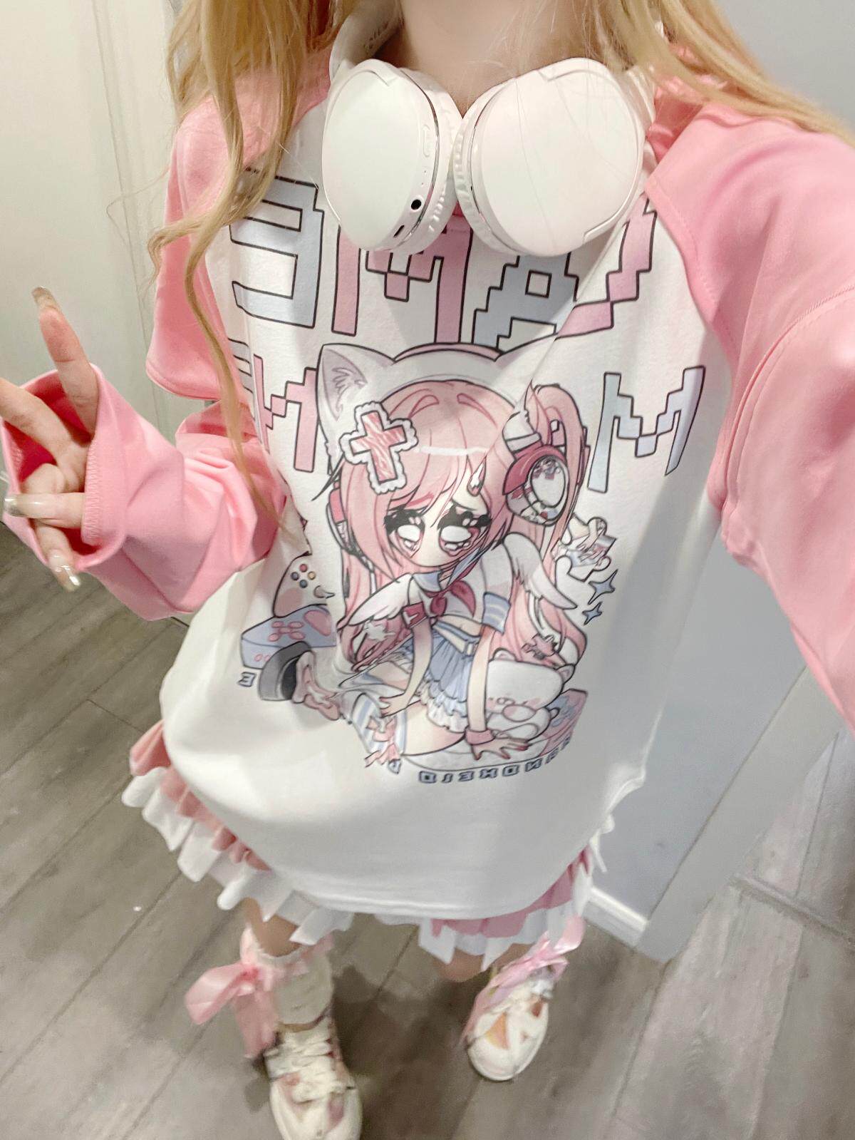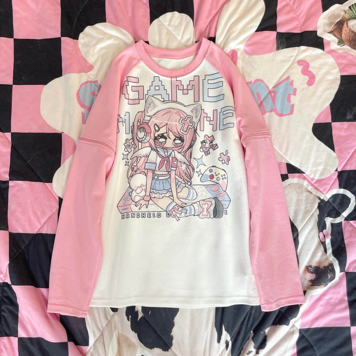 Ruibbit原创设计游戏少女宅萌长袖T恤粉色亚文化休闲宽松二次元 [Original Page Link]
