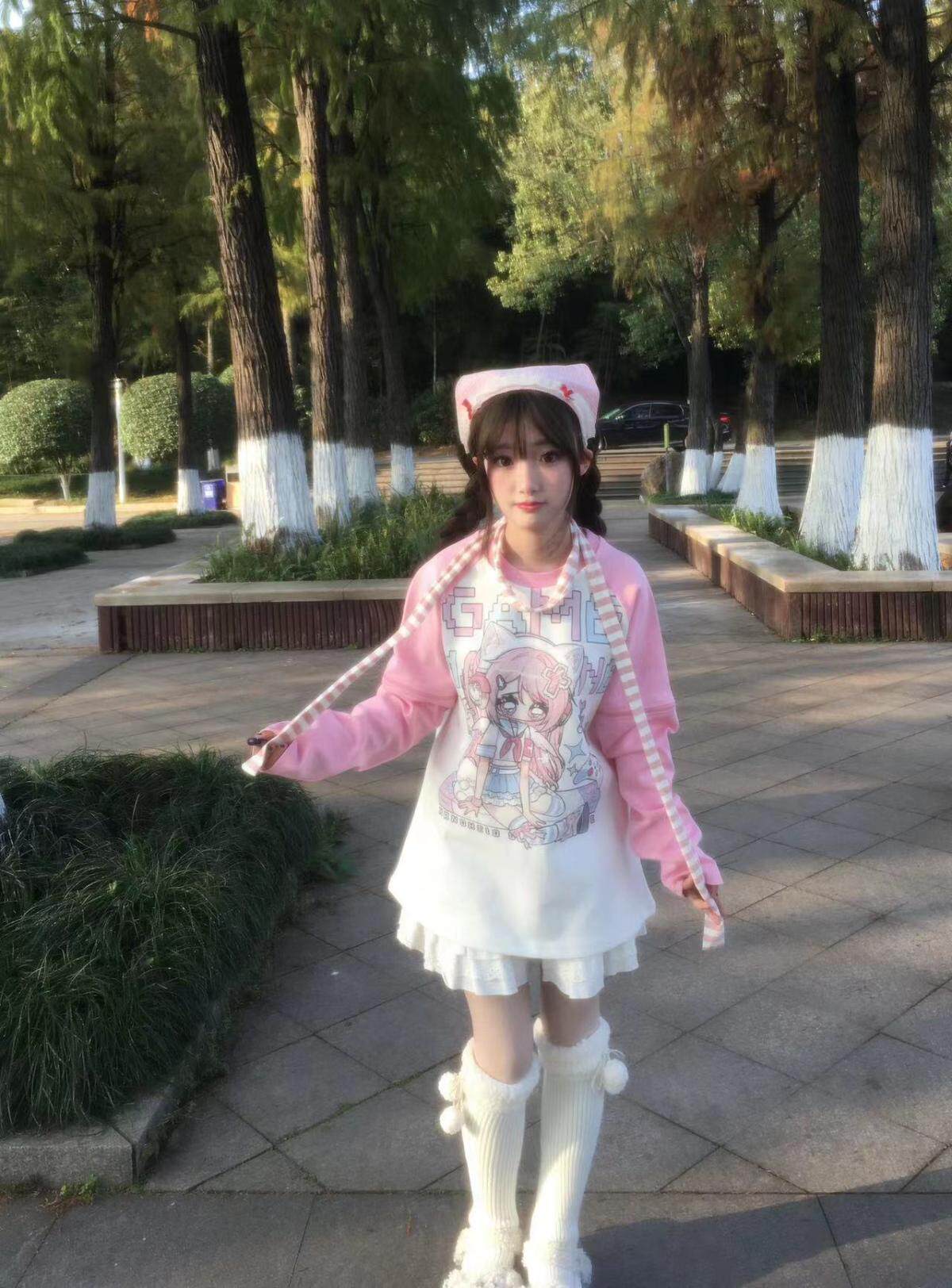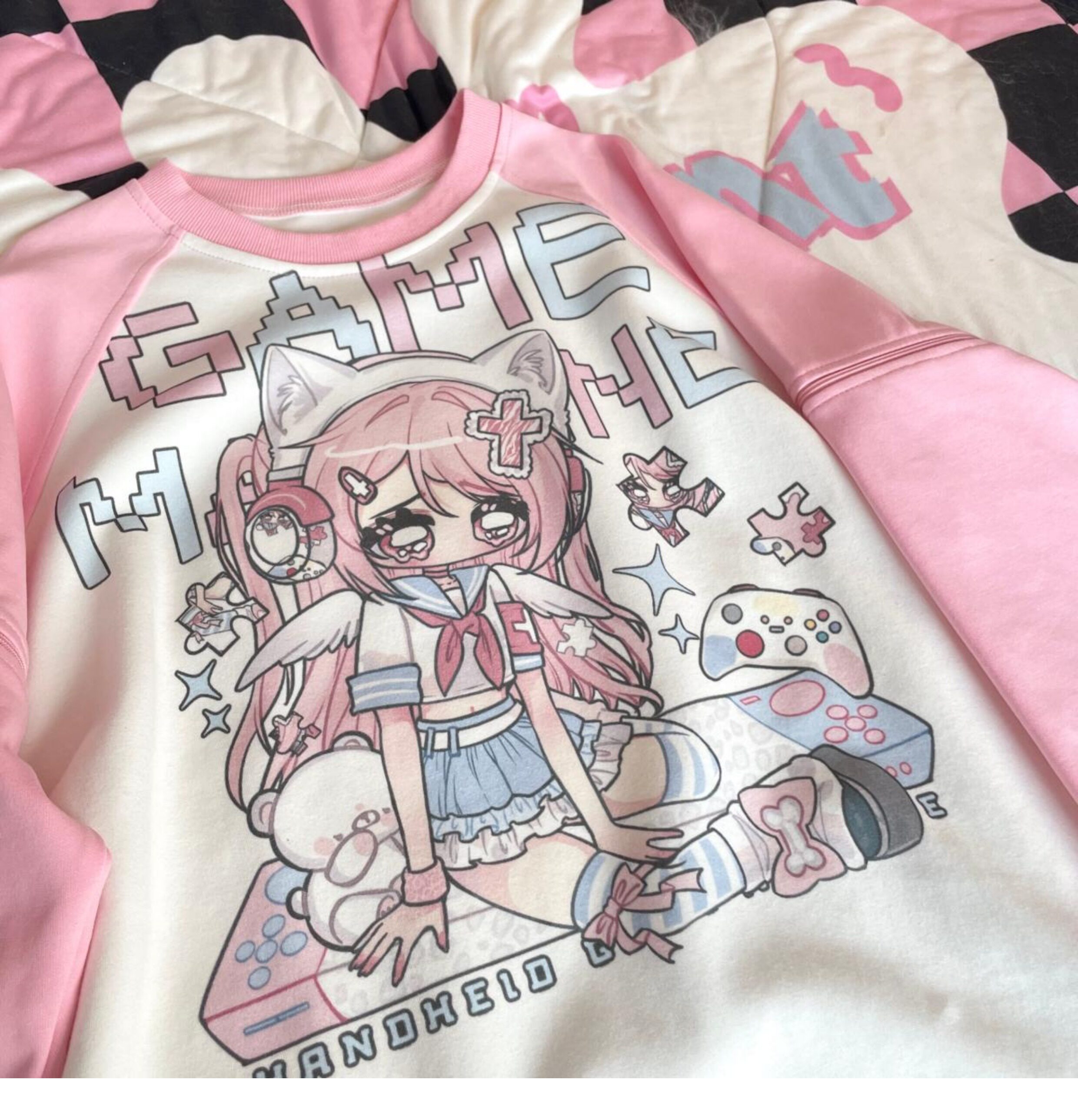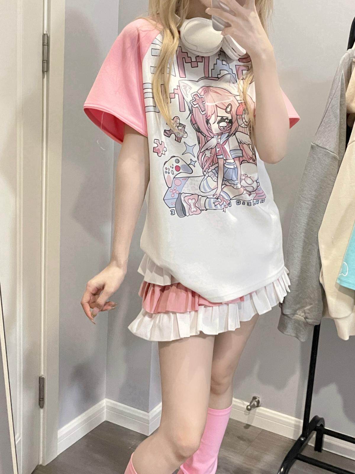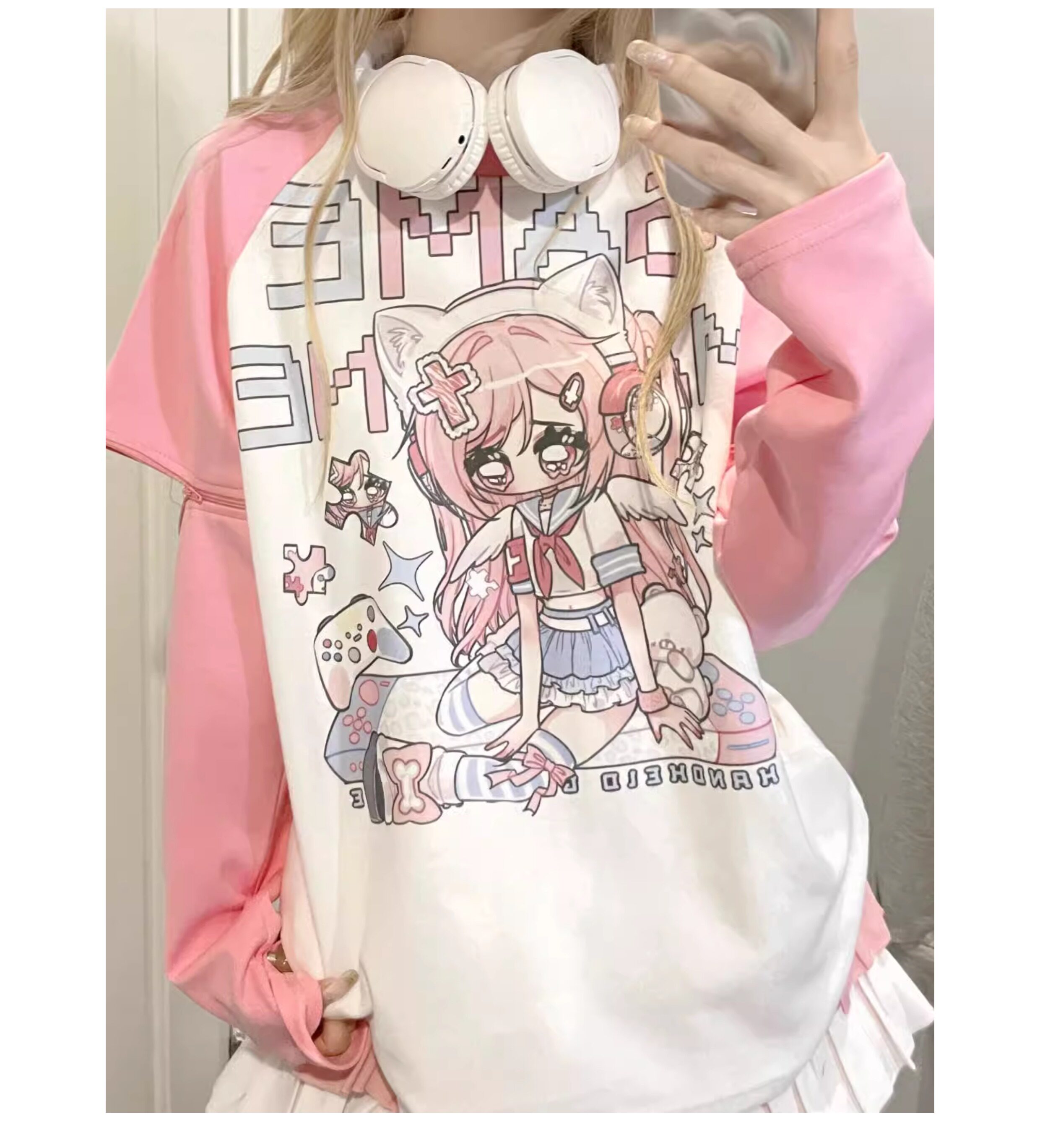 Ruibbit原创设计游戏少女宅萌长袖T恤粉色亚文化休闲宽松二次元 [Original Page Link]