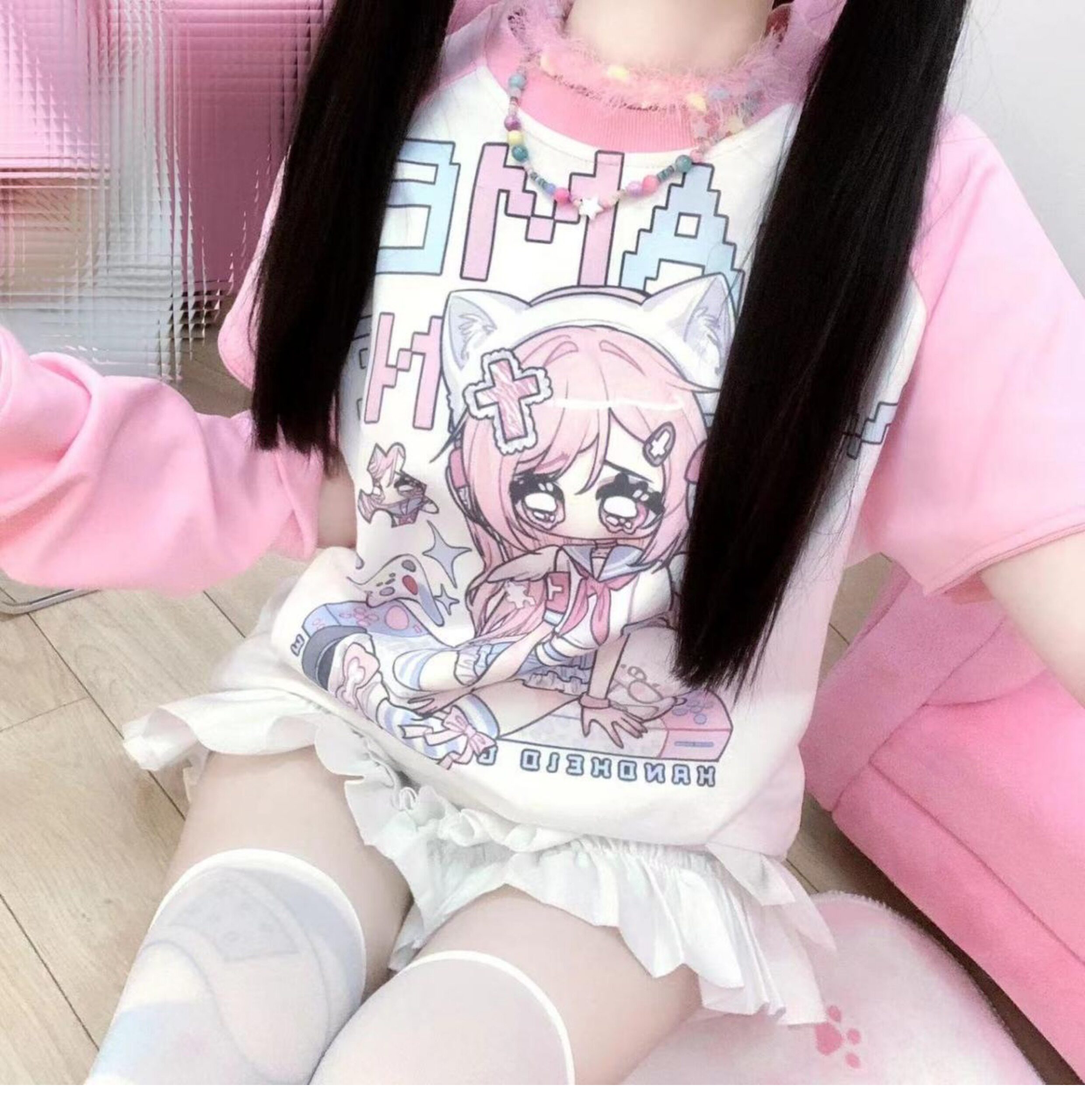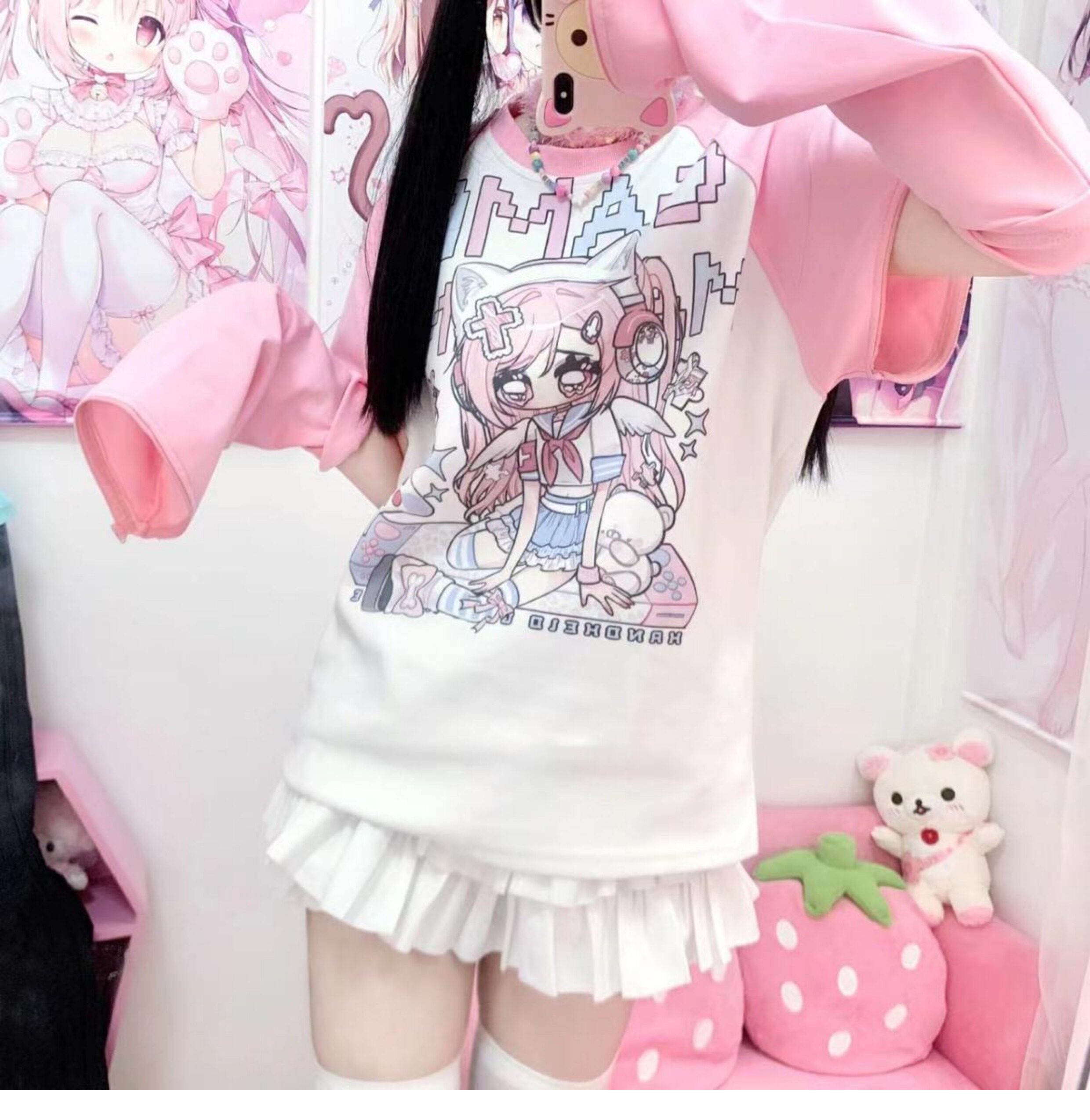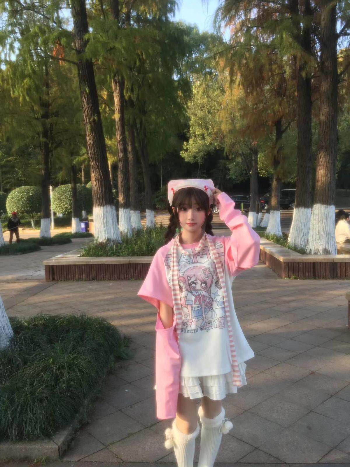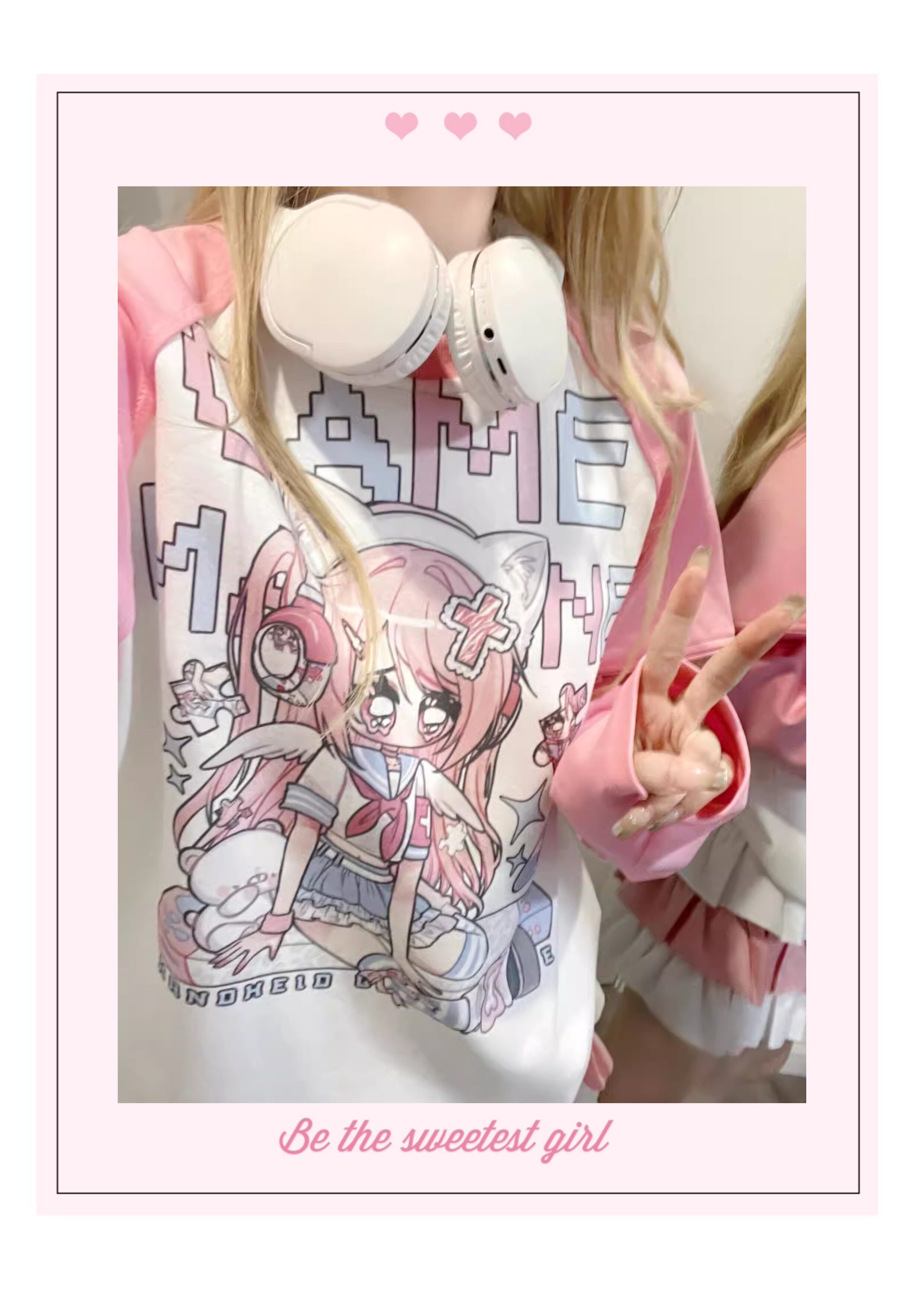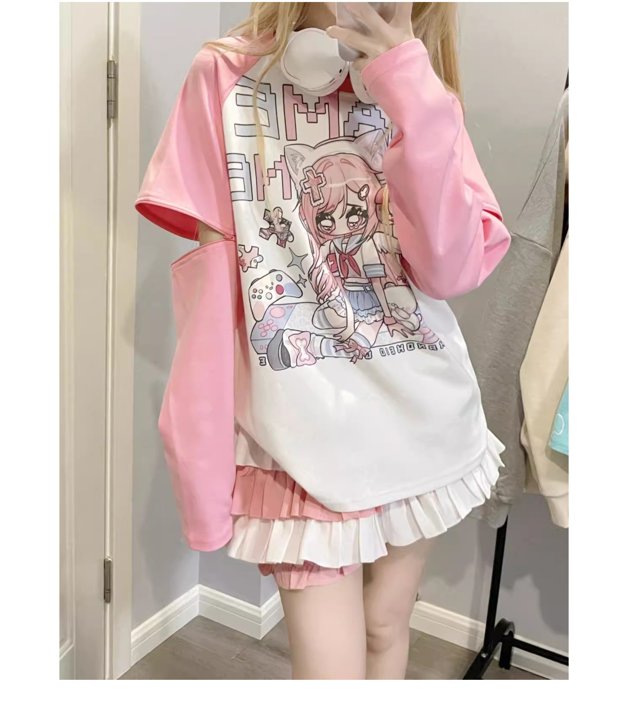 Ruibbit原创设计游戏少女宅萌长袖T恤粉色亚文化休闲宽松二次元 [Original Page Link]