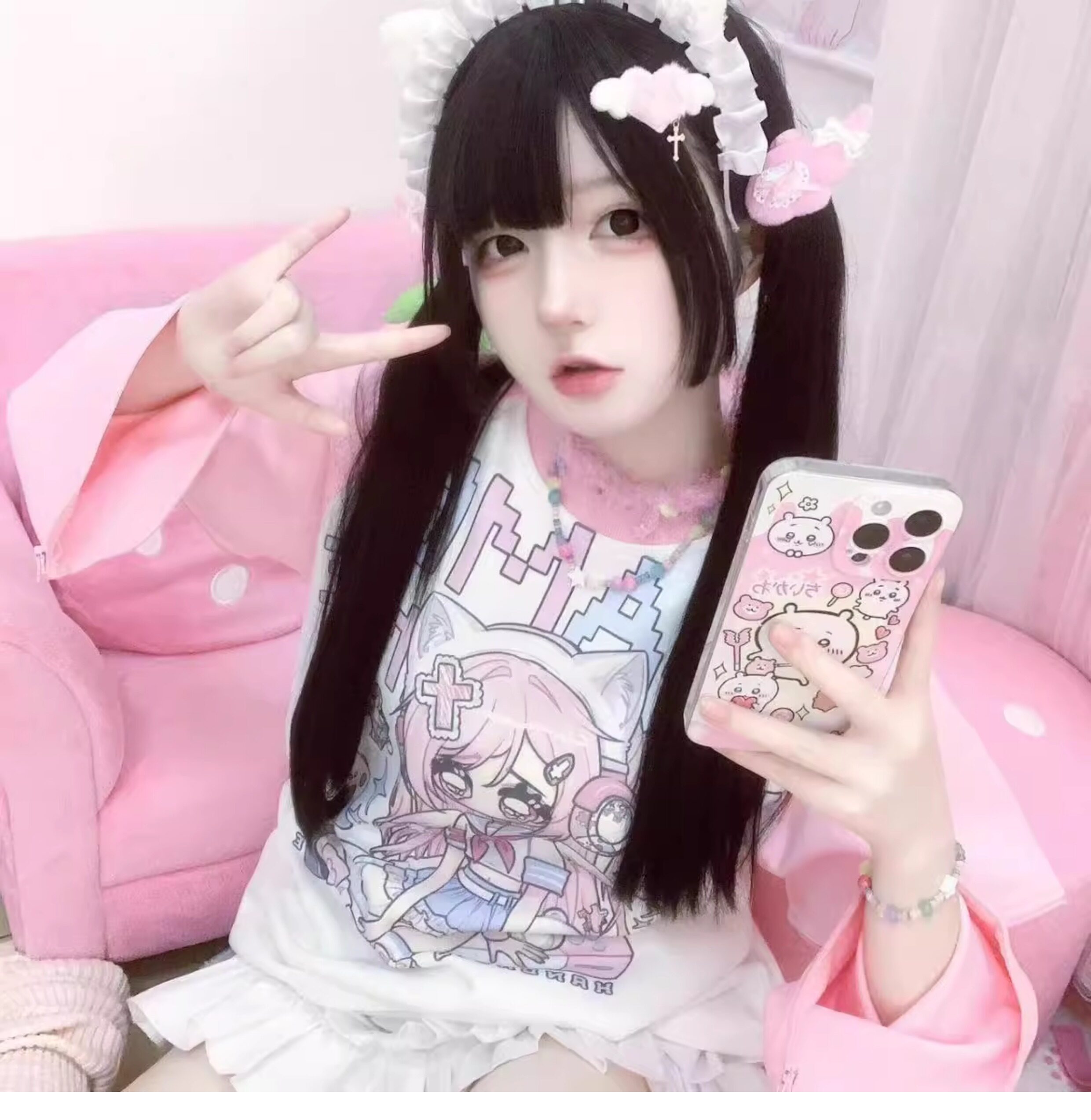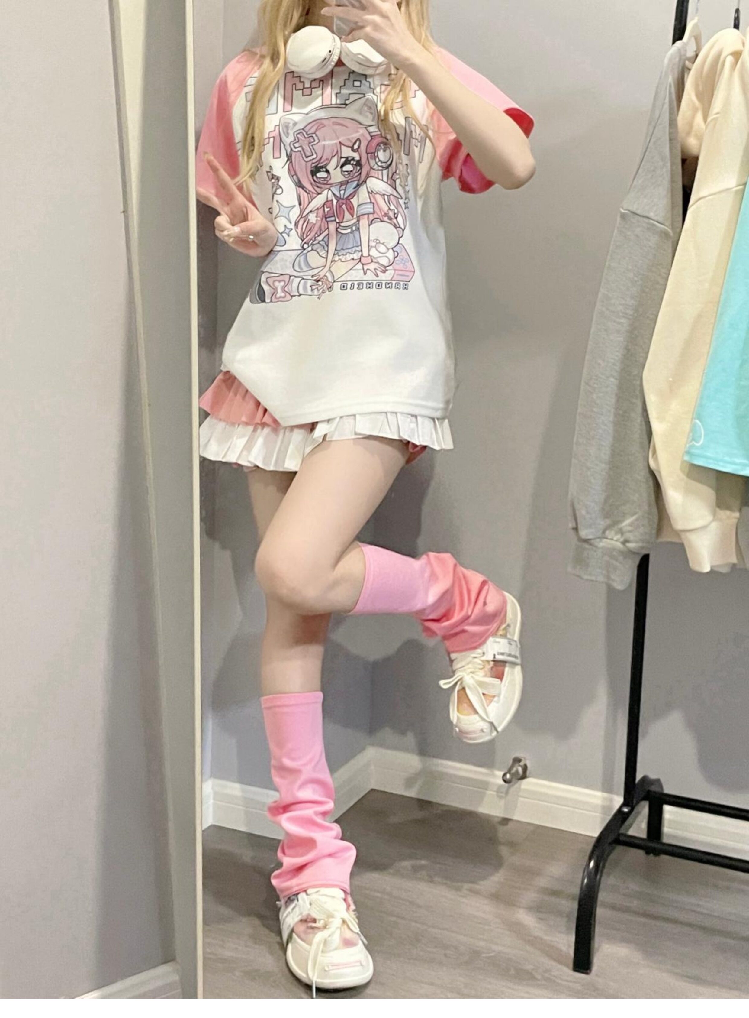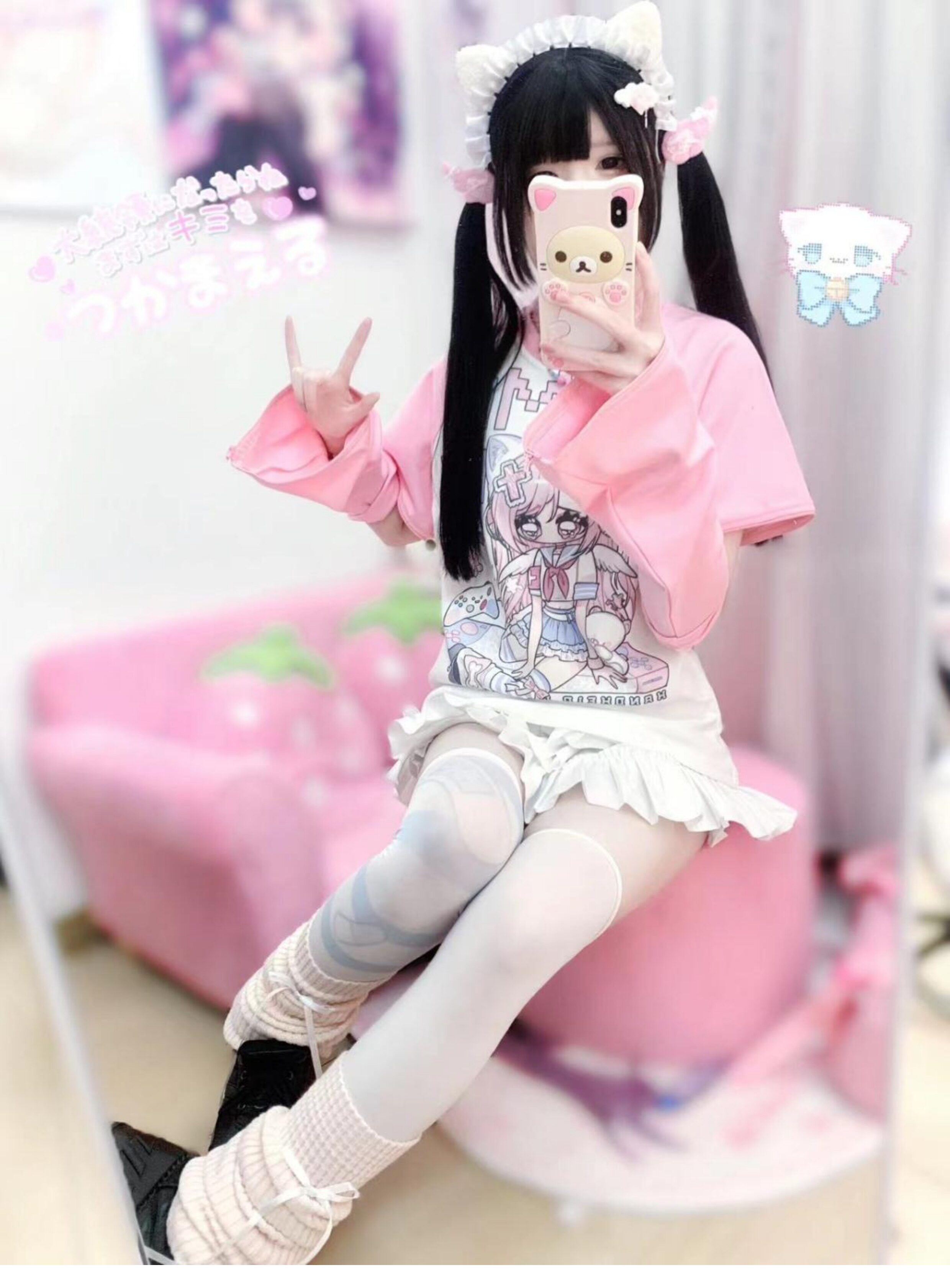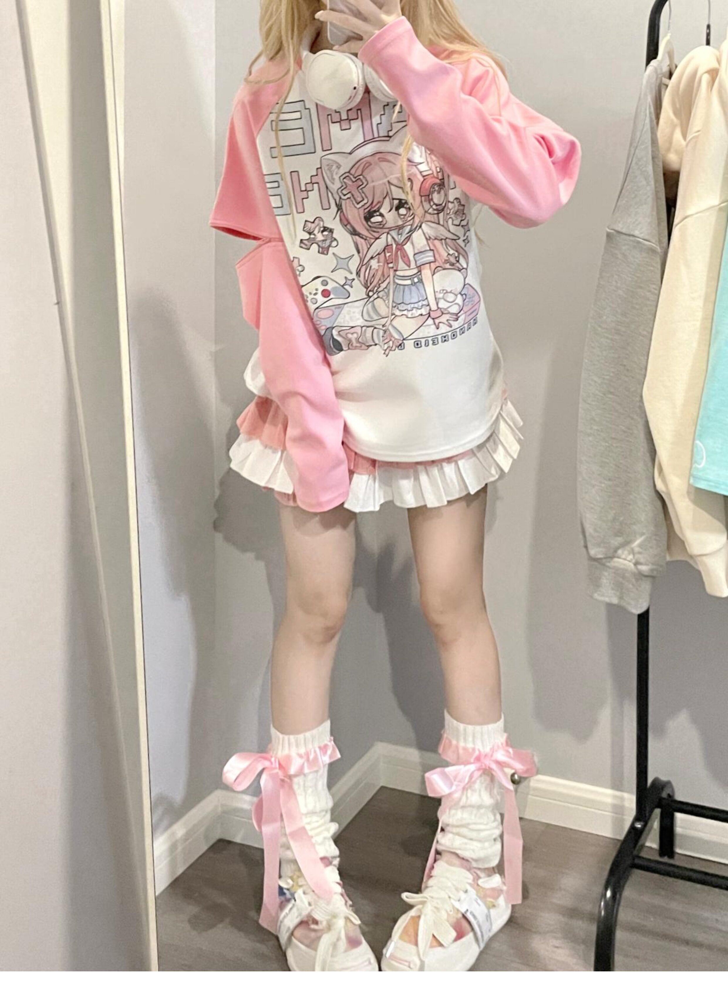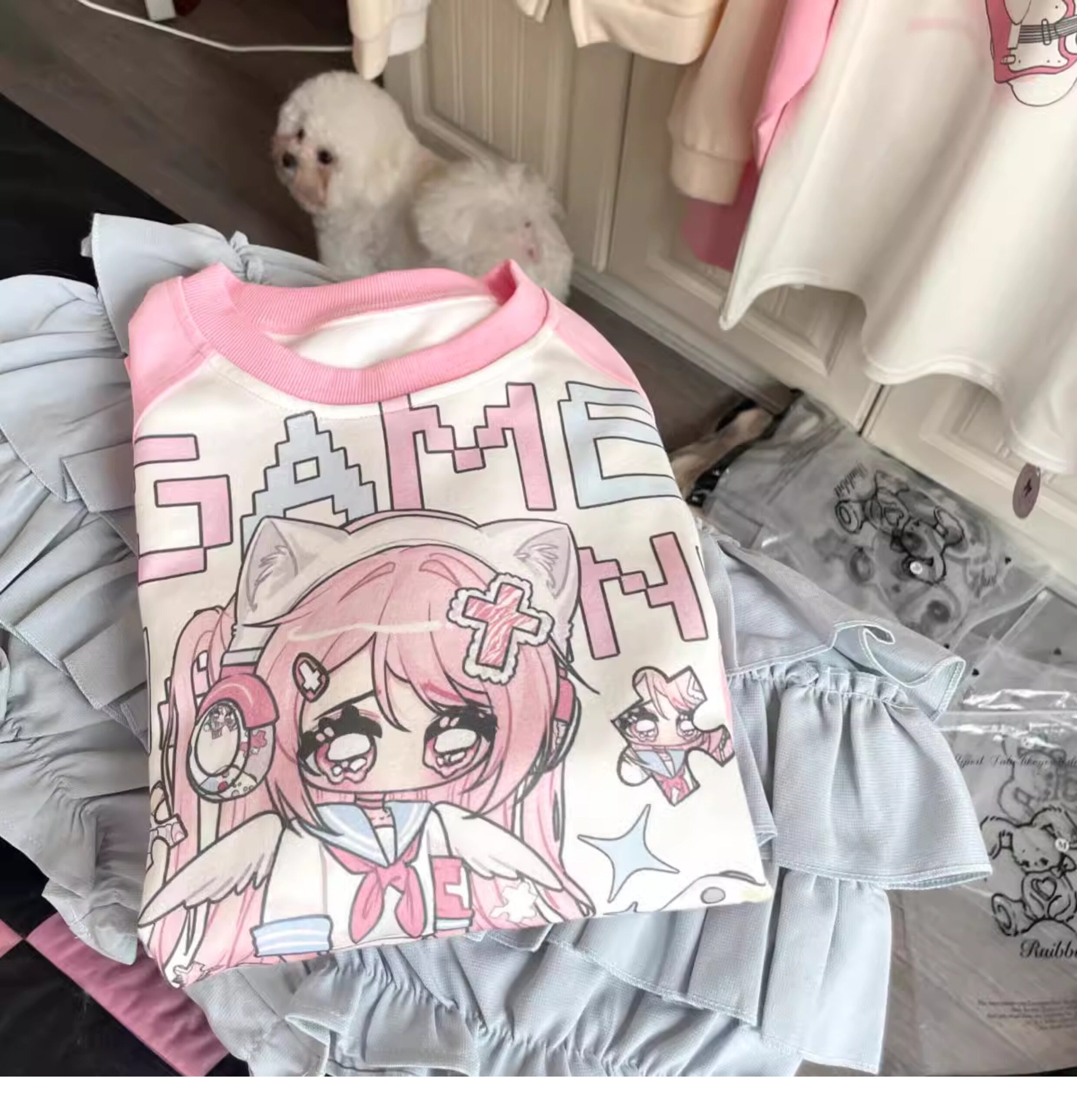Ruibbit原创设计游戏少女宅萌长袖T恤粉色亚文化休闲宽松二次元 [Original Page Link]