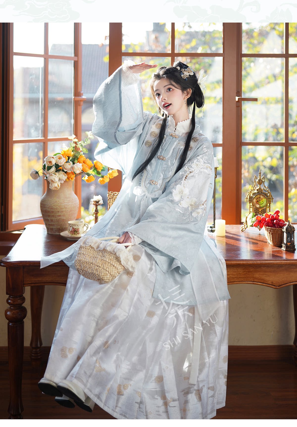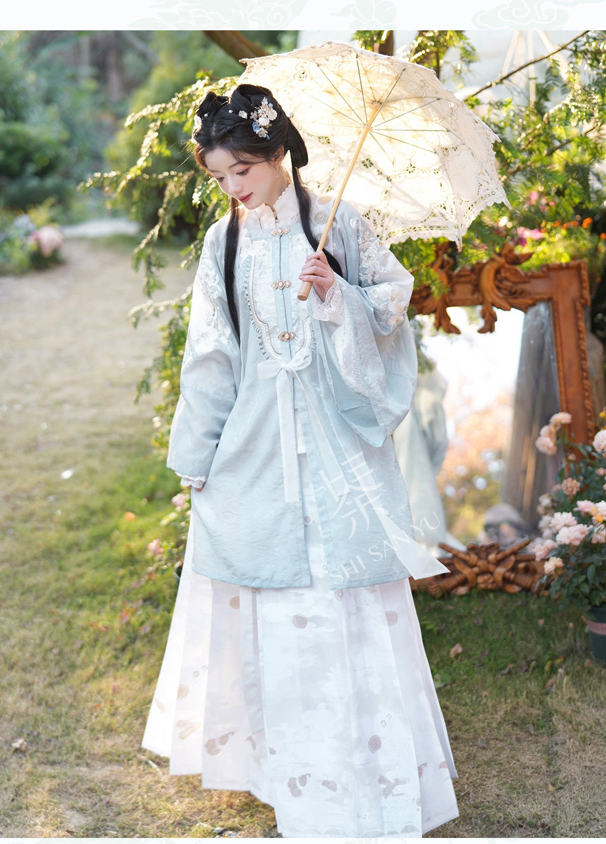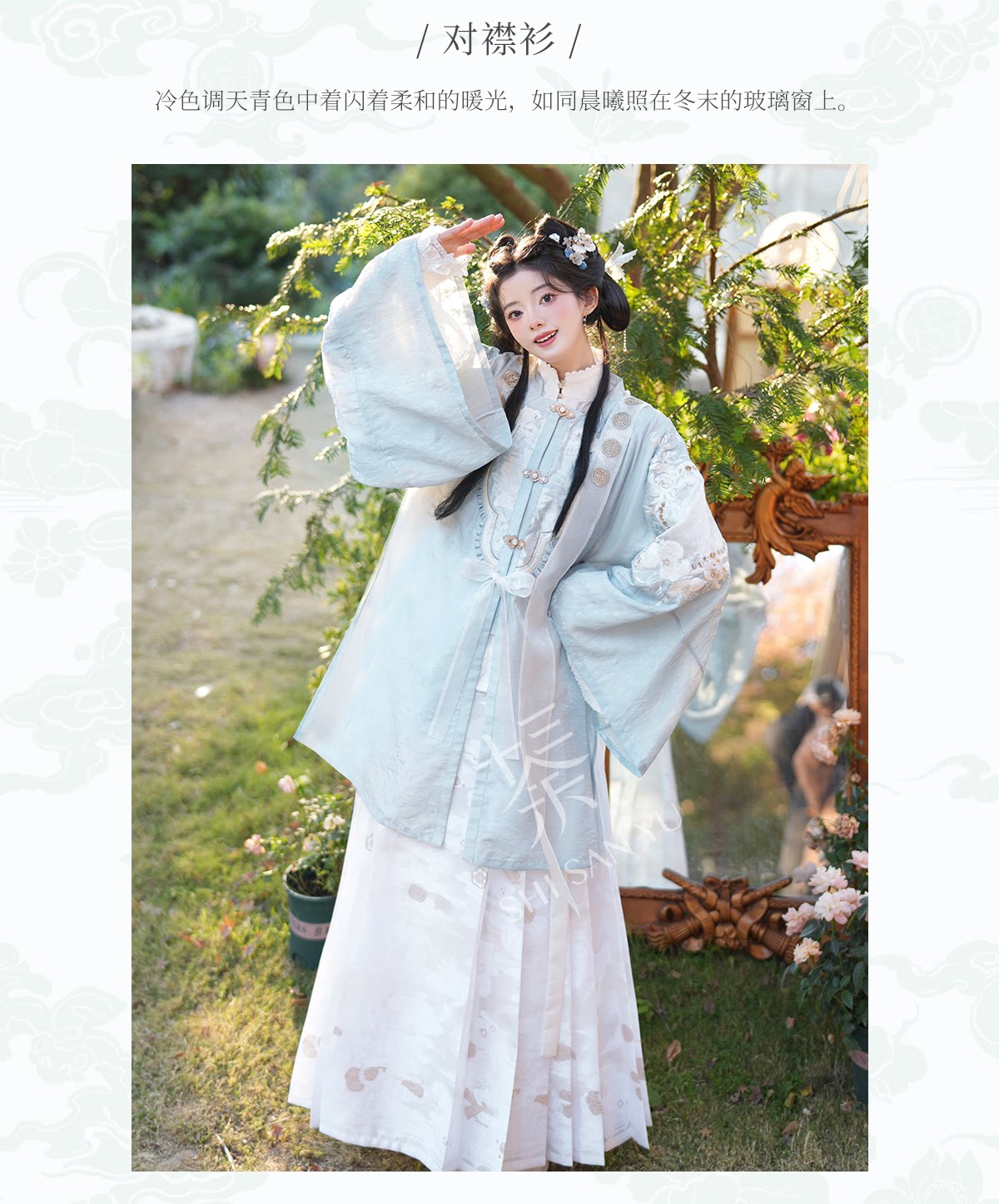 十三余 余小豆蔻儿[薄玉裁霜]春日绣花方领对襟衫马面裙明制汉服女装 [Original Page Link]