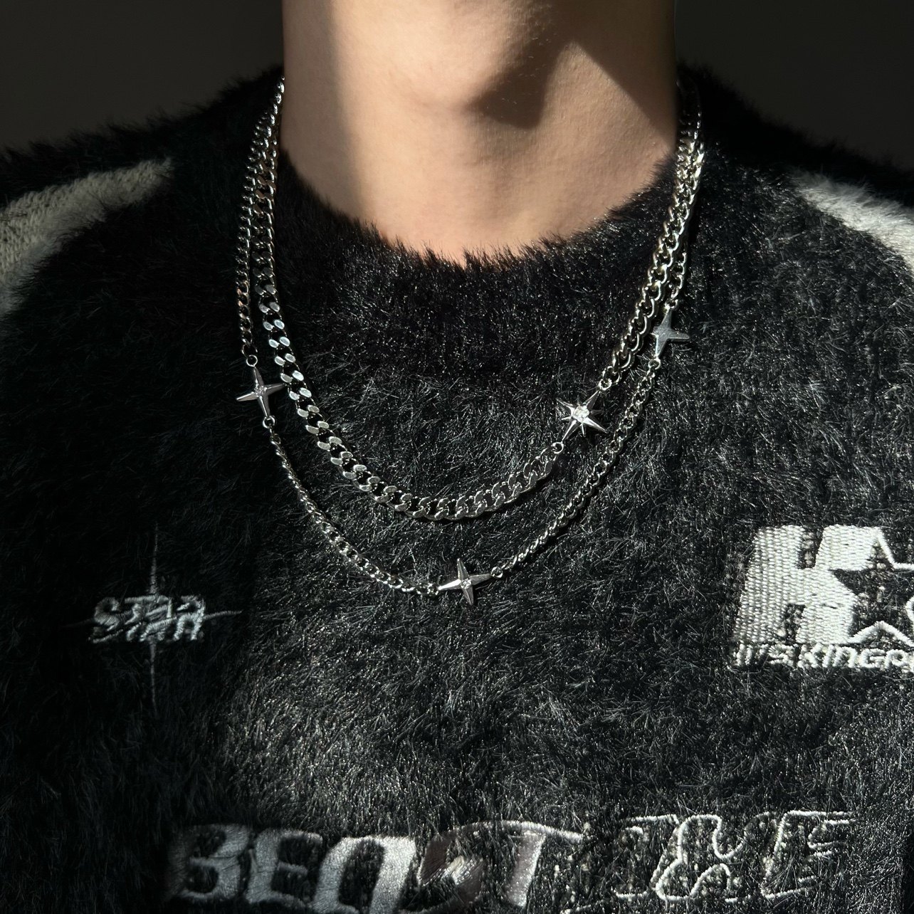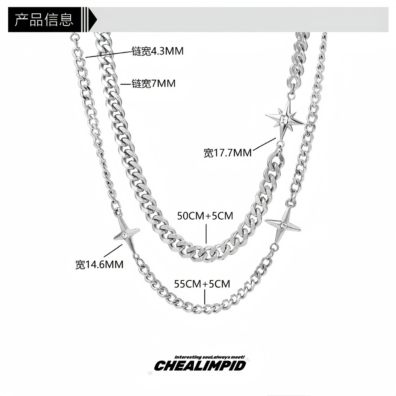 星芒叠戴双层钛钢项链潮流嘻哈原创设计男女可分开佩戴 [Original Page Link]